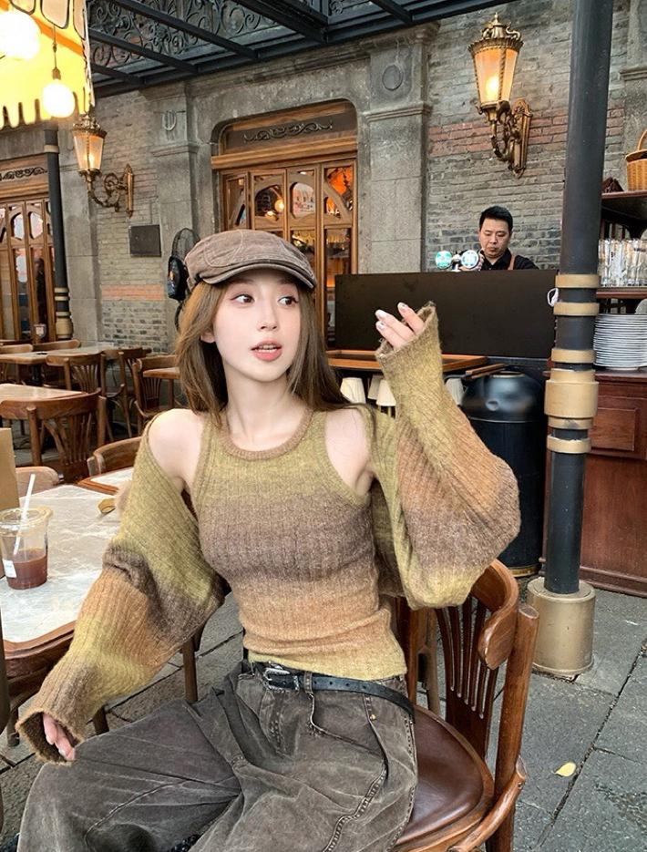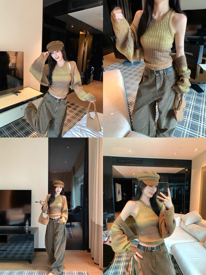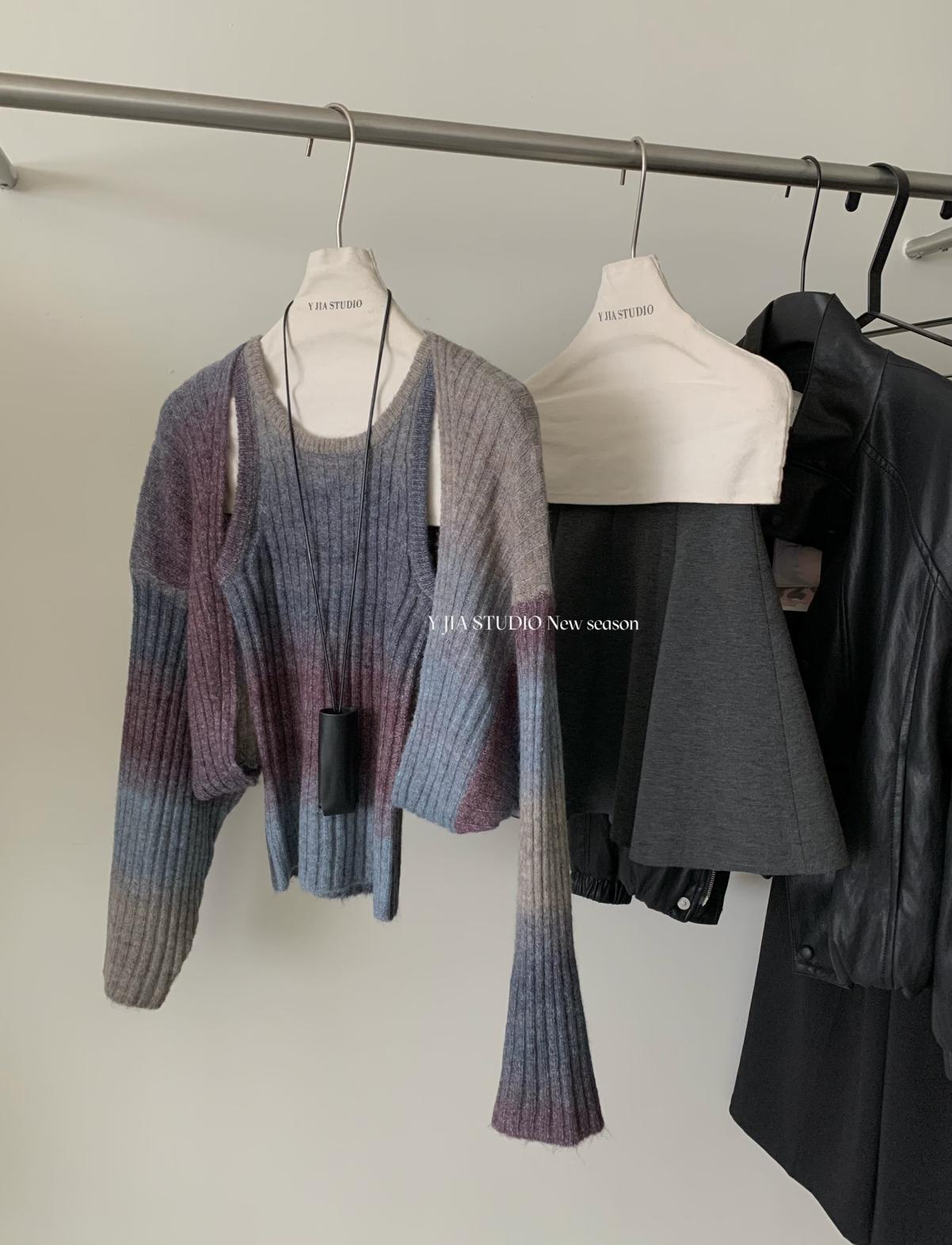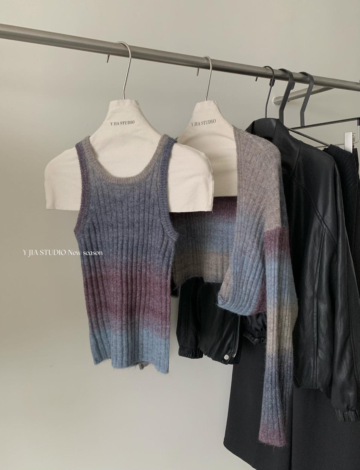 3. 【C7223】漸變美學簡約百搭顯瘦針織開衫+顯瘦百搭背心套裝