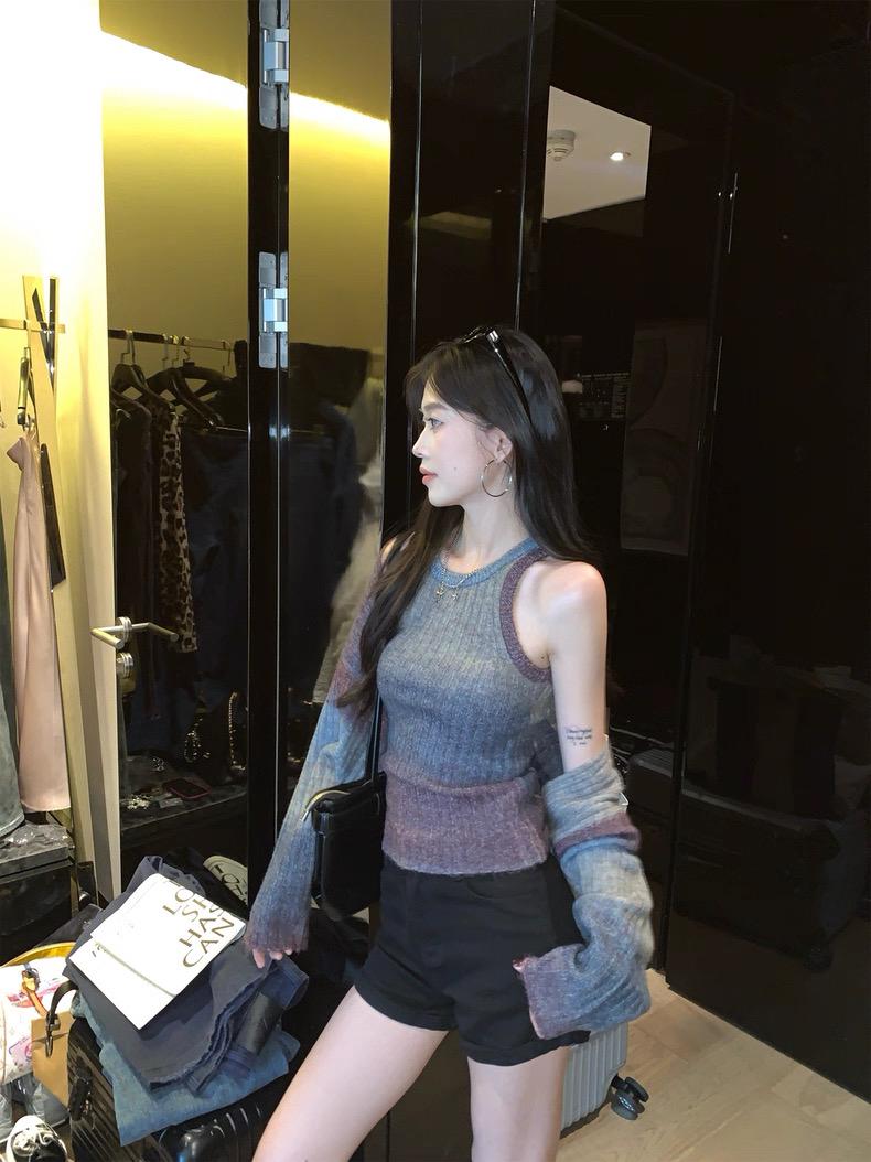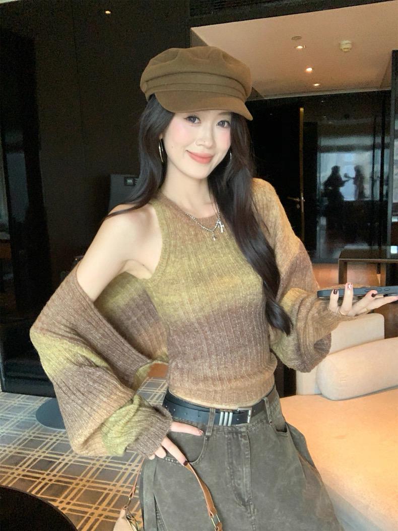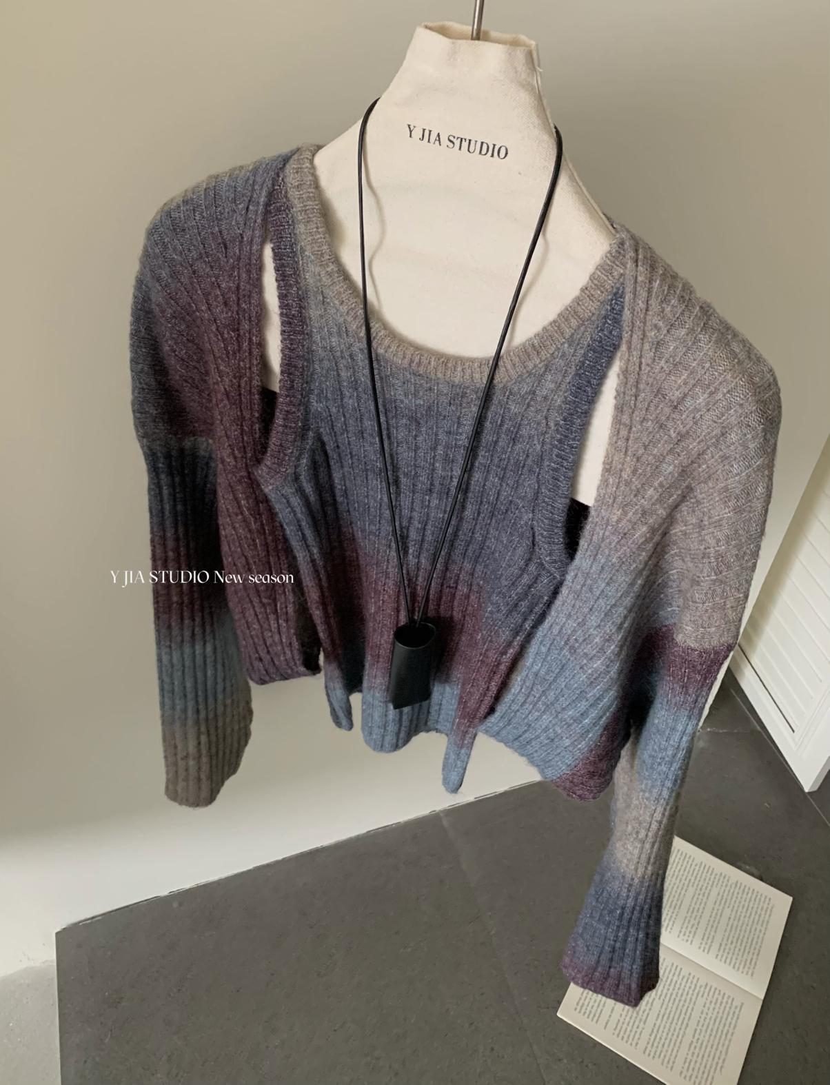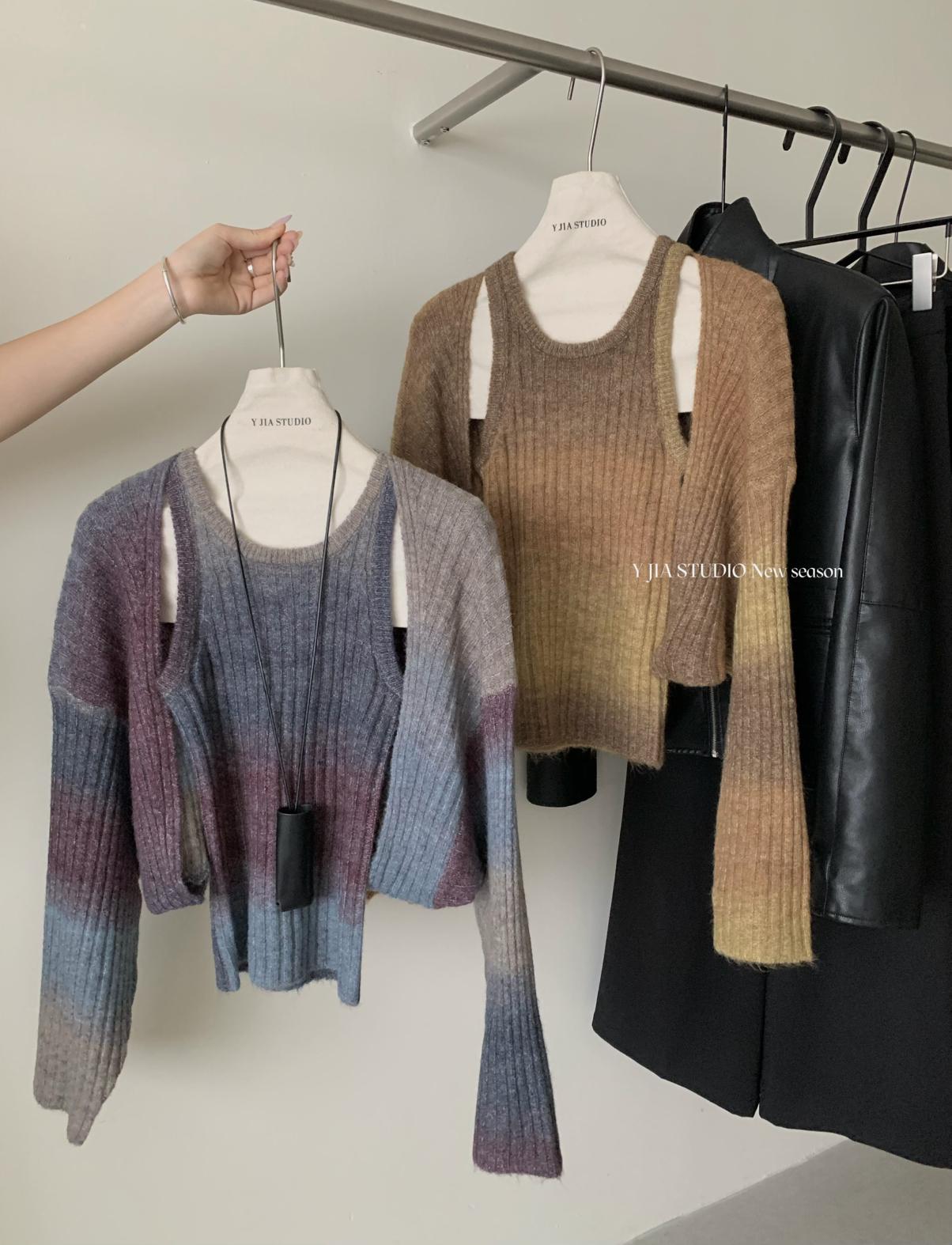 【C7223】漸變美學簡約百搭顯瘦針織開衫+顯瘦百搭背心套裝