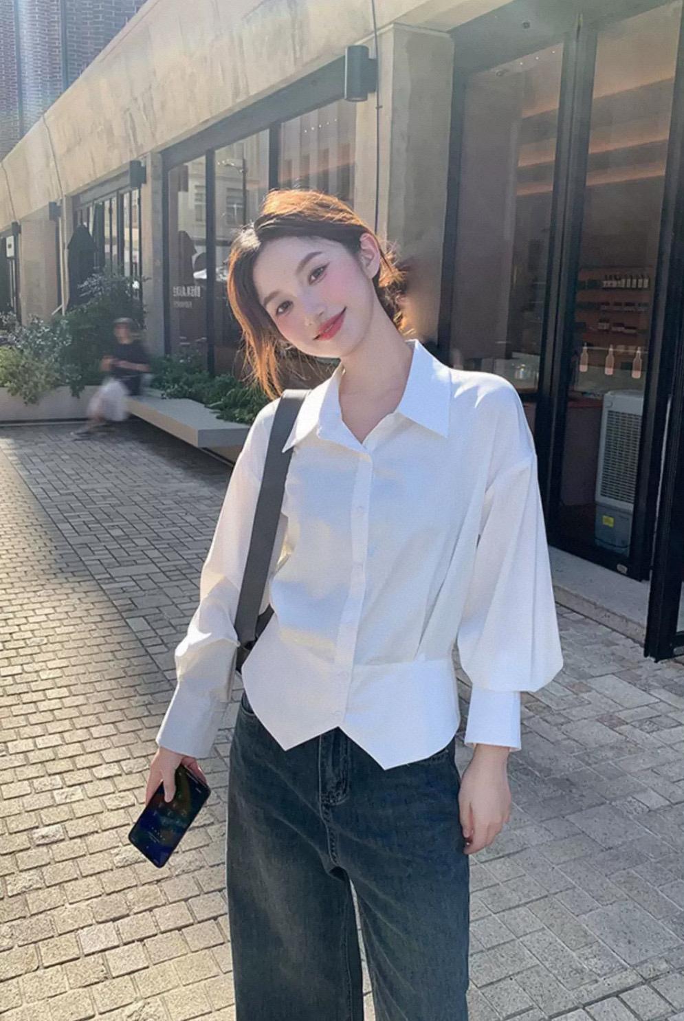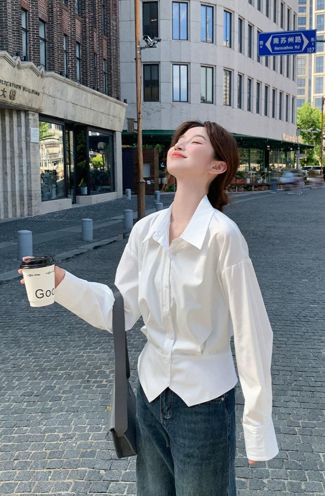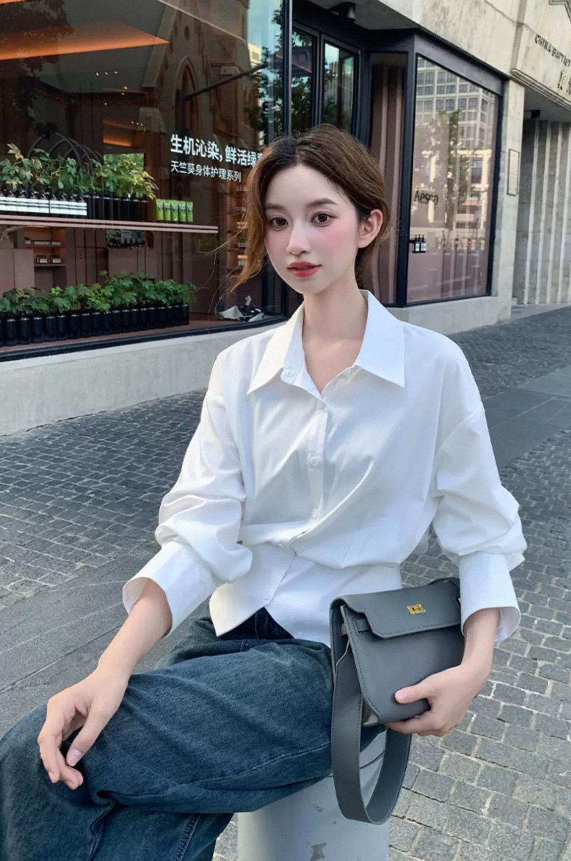 【C7232】收腰襯衫通勤穿搭襯衣開叉設計感襯衫