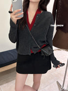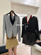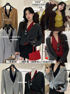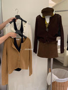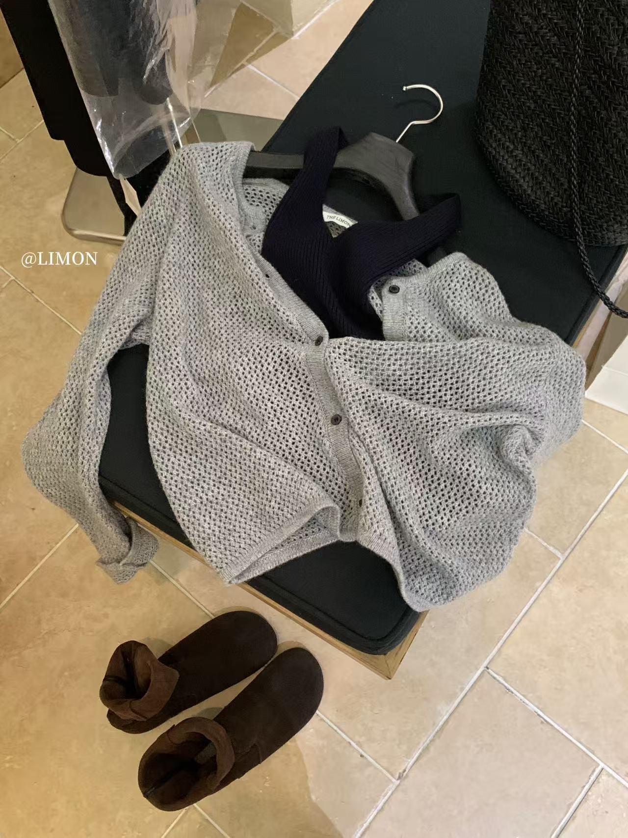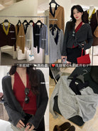 【C7250】氣質顯瘦掛脖背心+寬鬆針織開衫套裝(含32%羊毛)