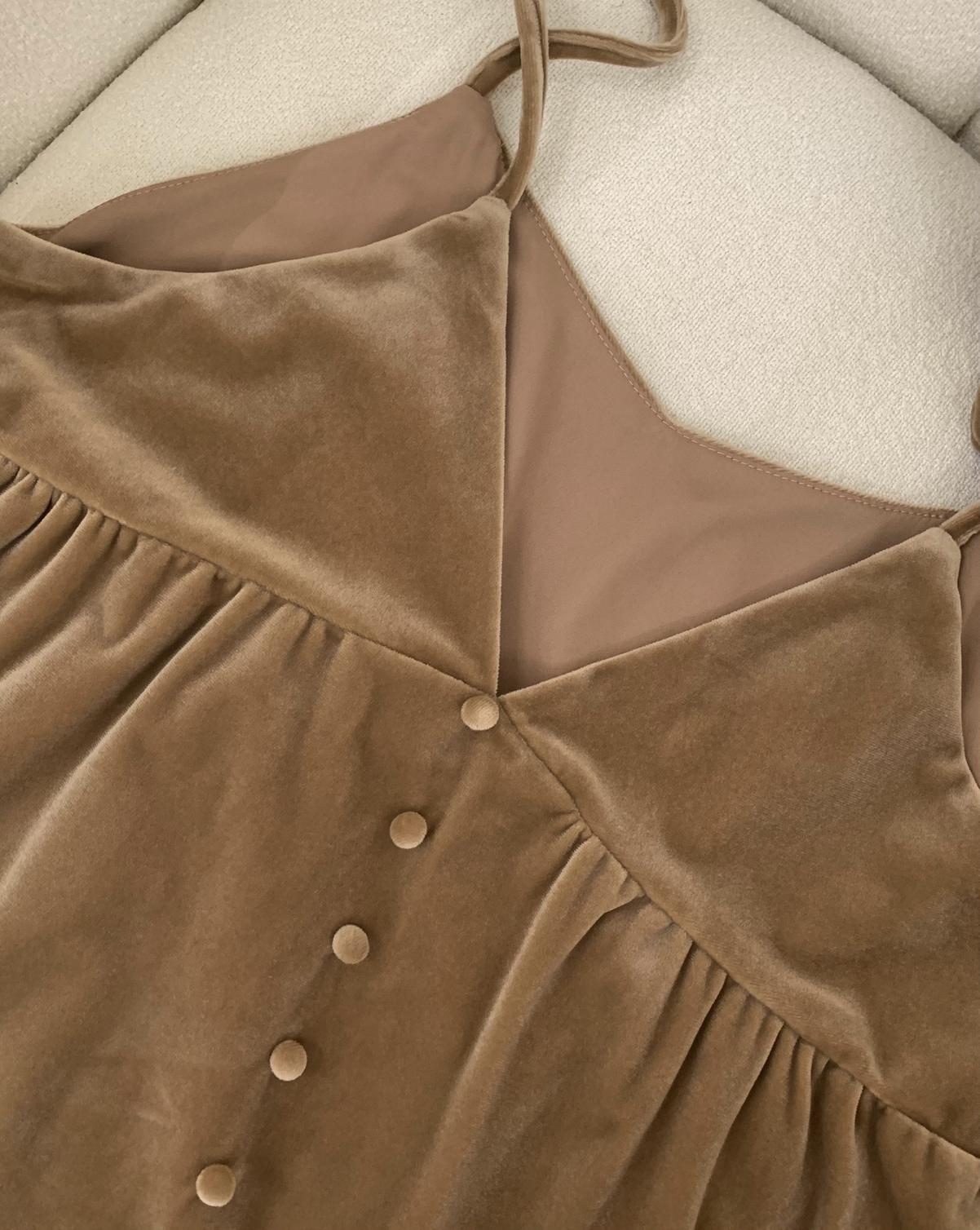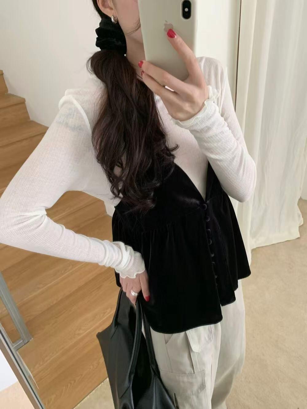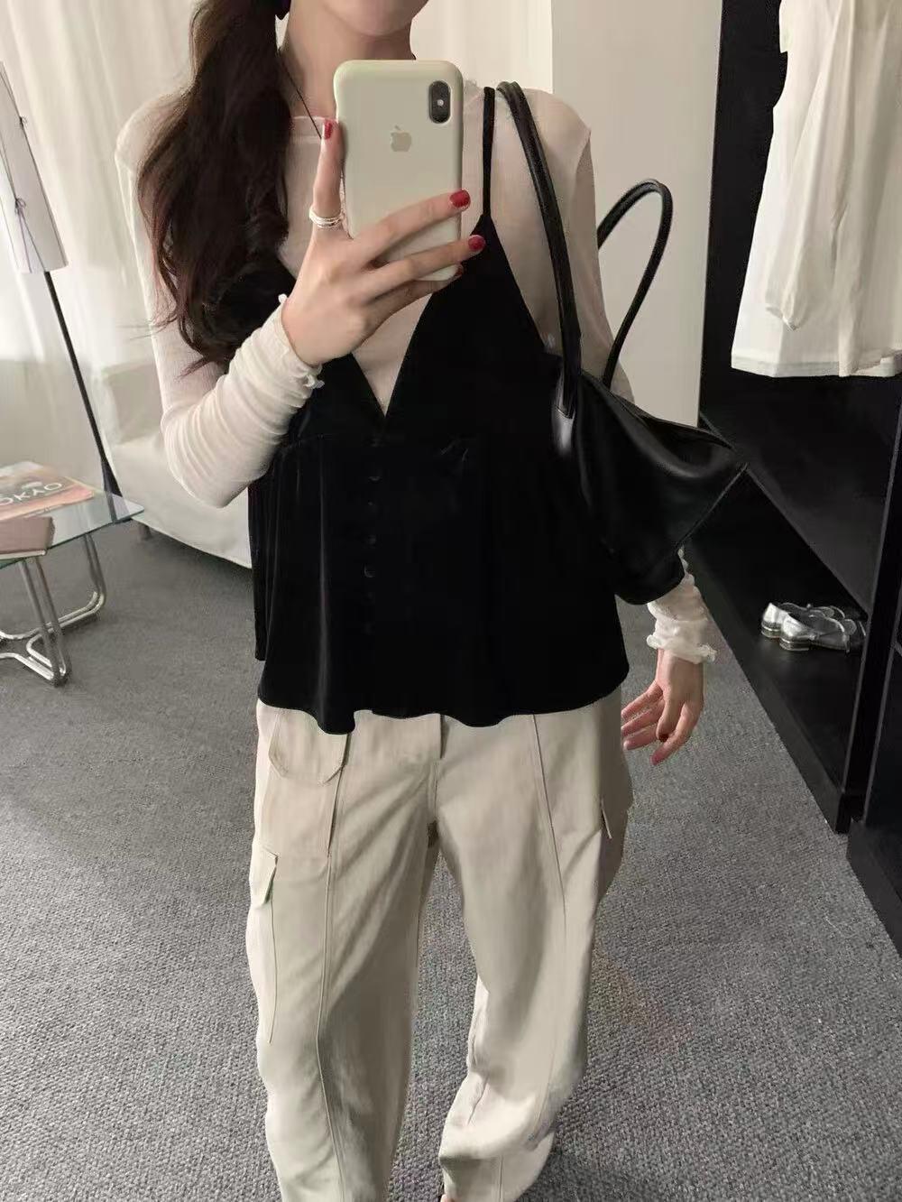 【C7273】韓風絲絨V領吊帶背心(配發圈)