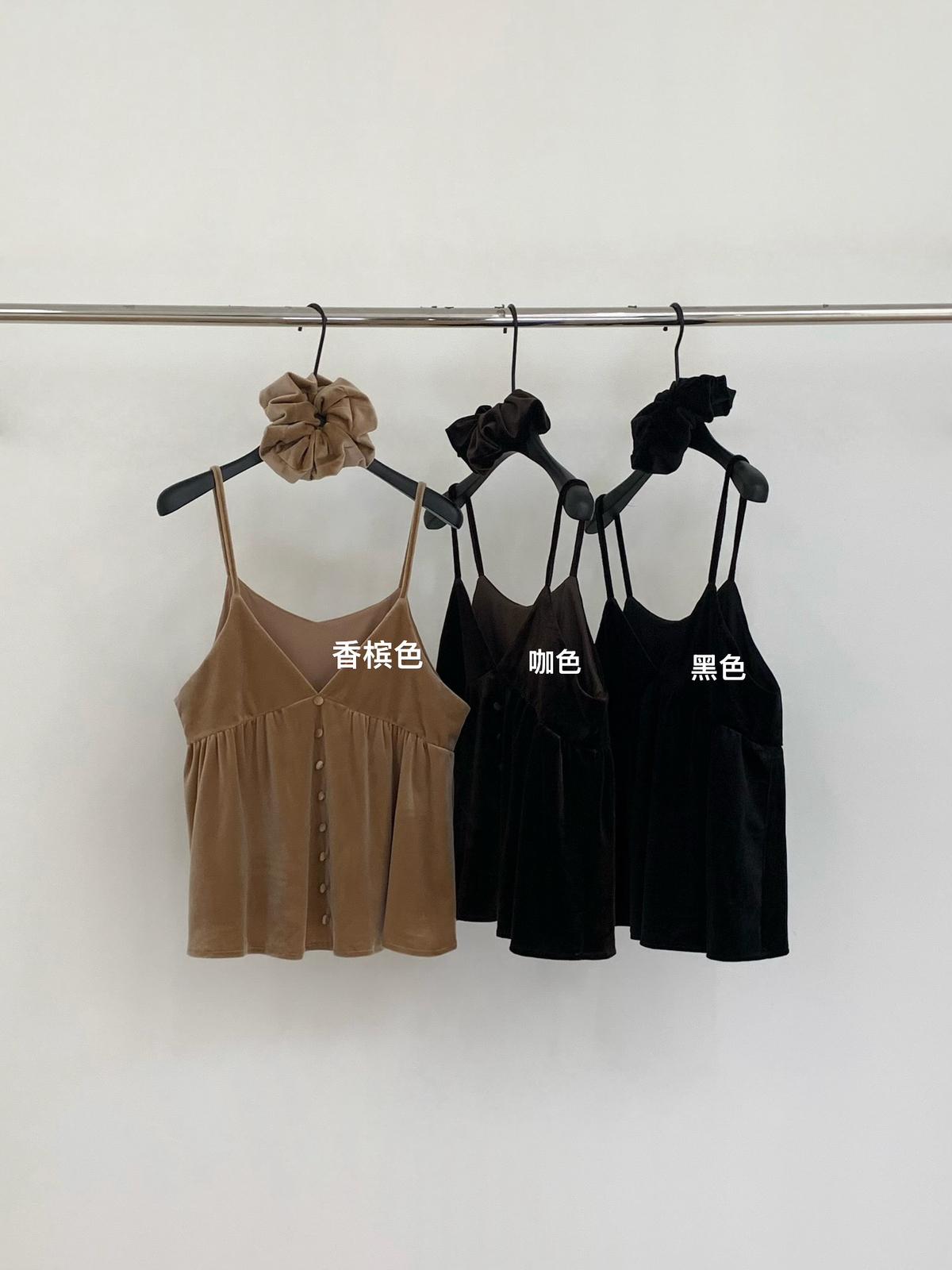 3. 【C7273】韓風絲絨V領吊帶背心(配發圈)