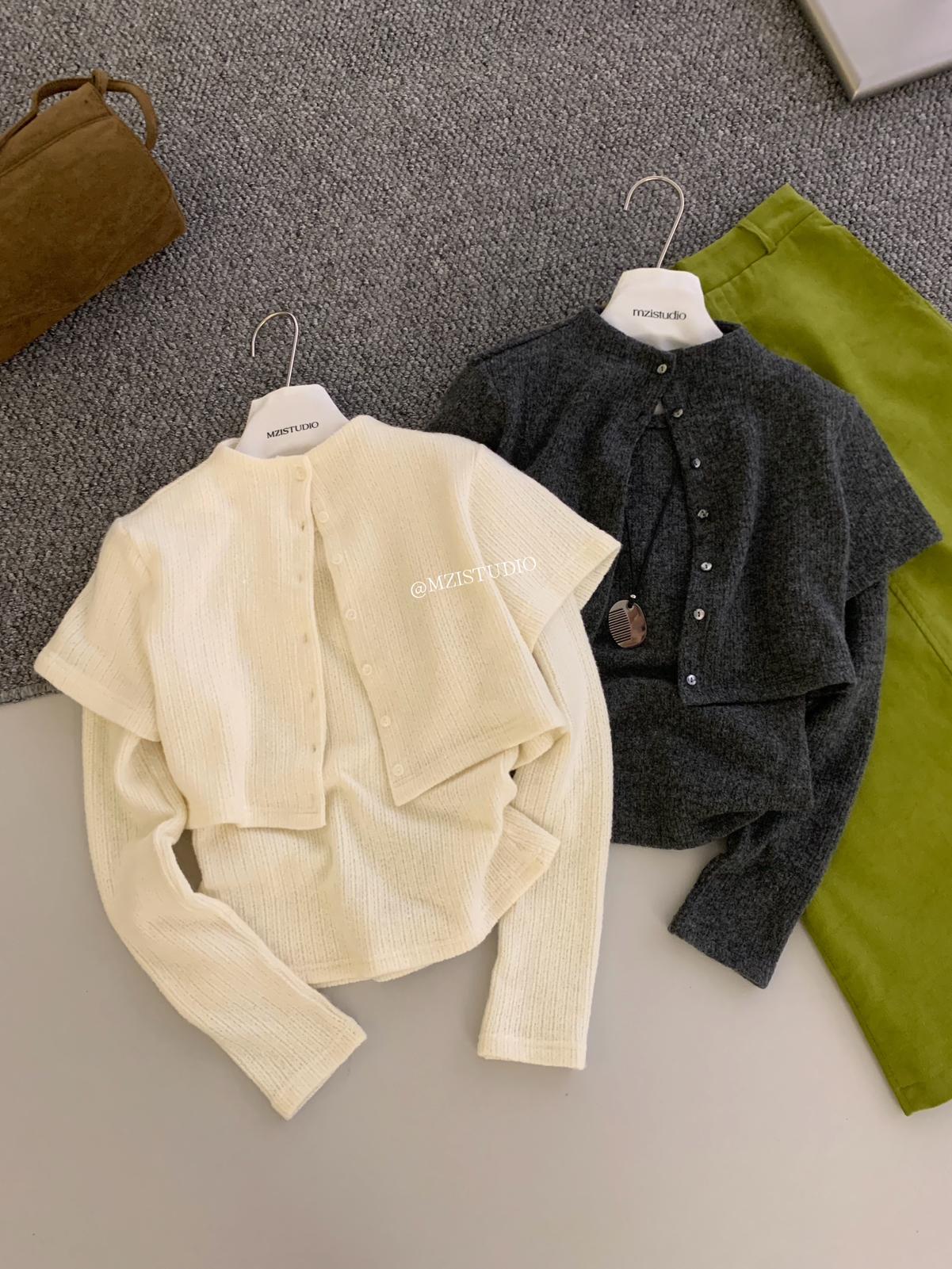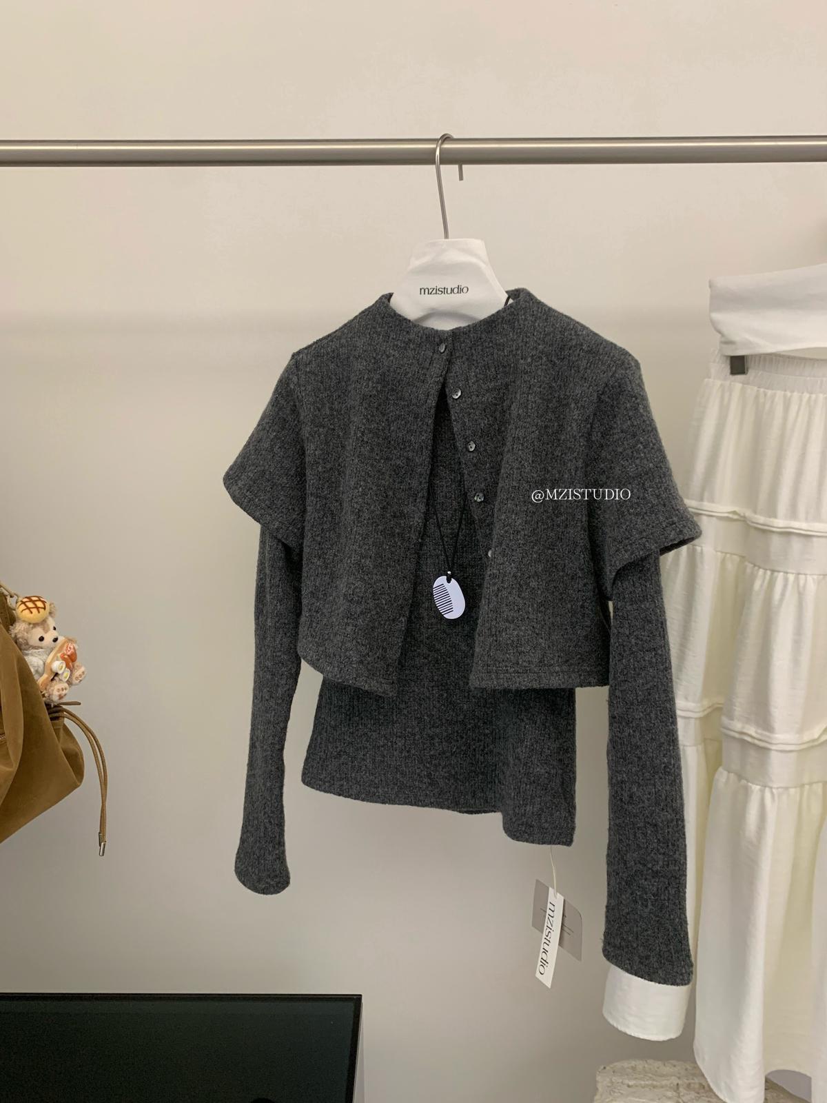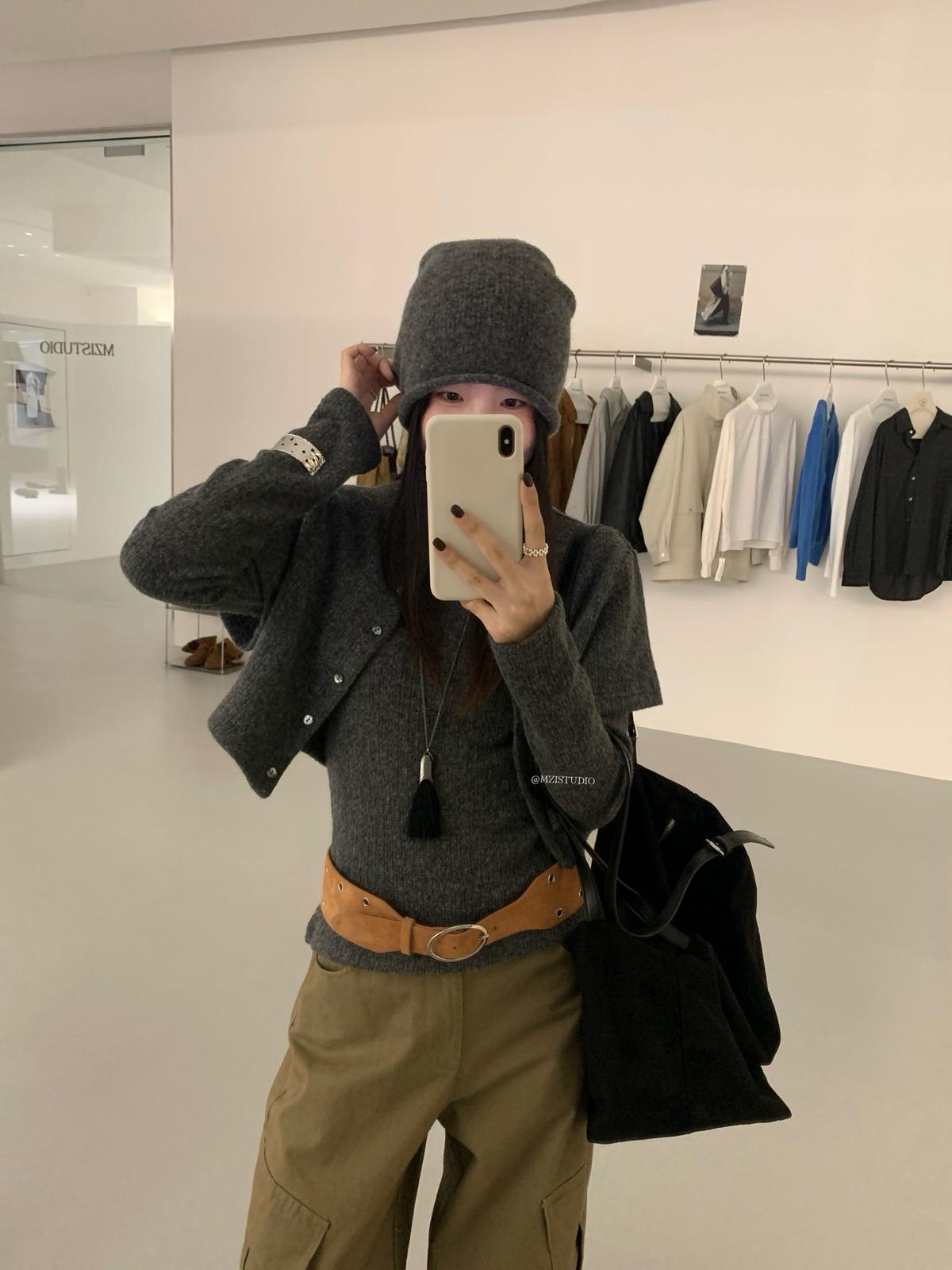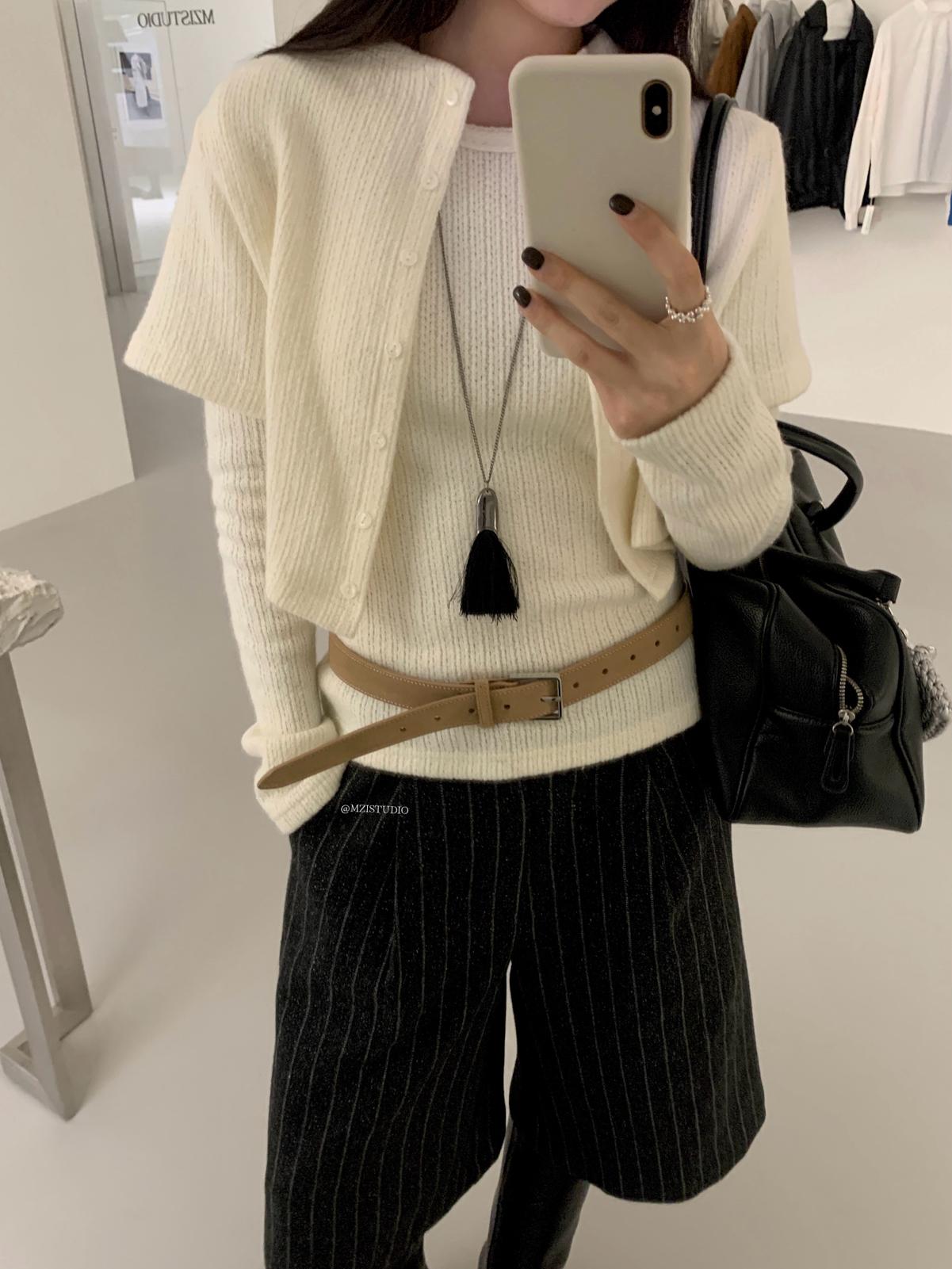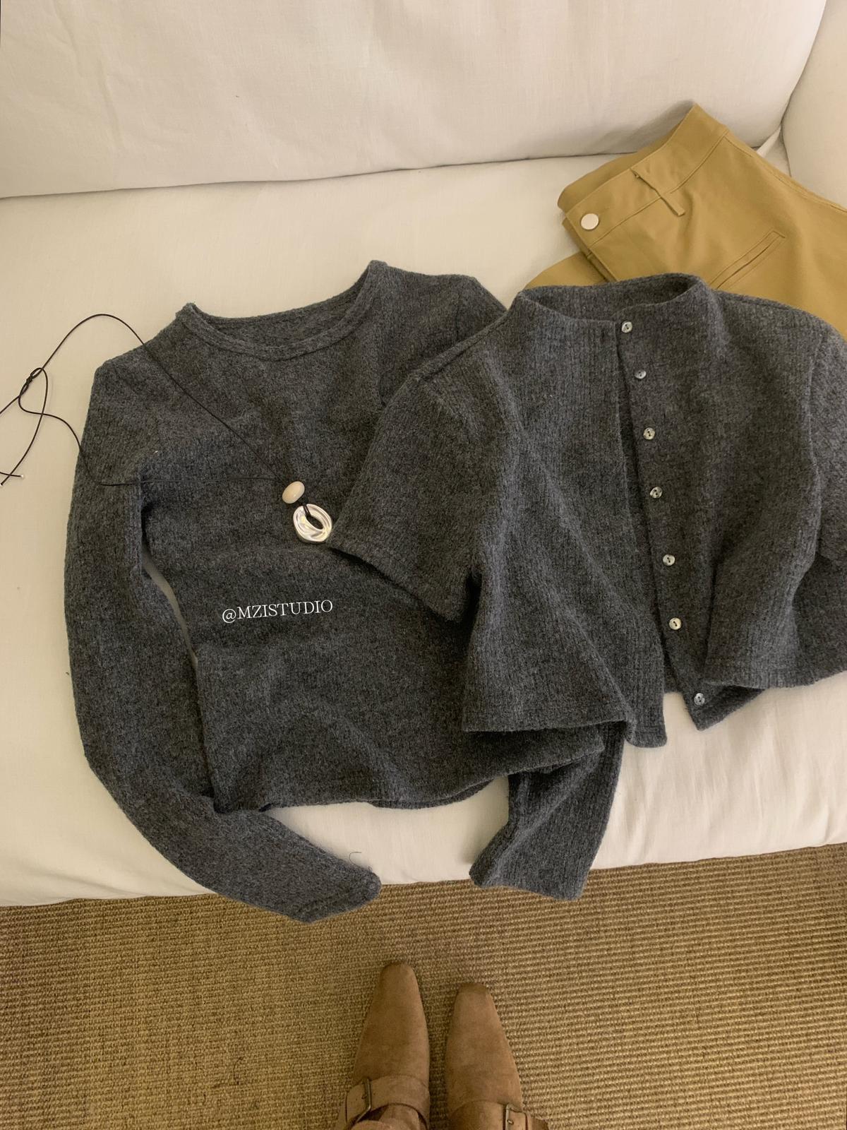 【C7287】高智清冷感羊毛高級質感針織開衫+修身簡約長袖針織衫套裝(含5%羊毛)
