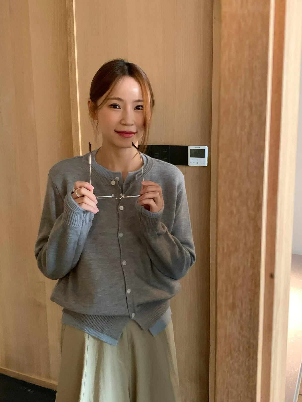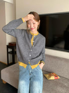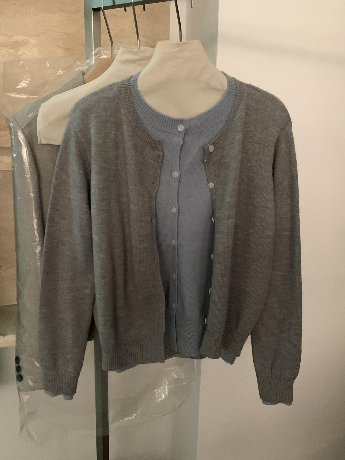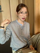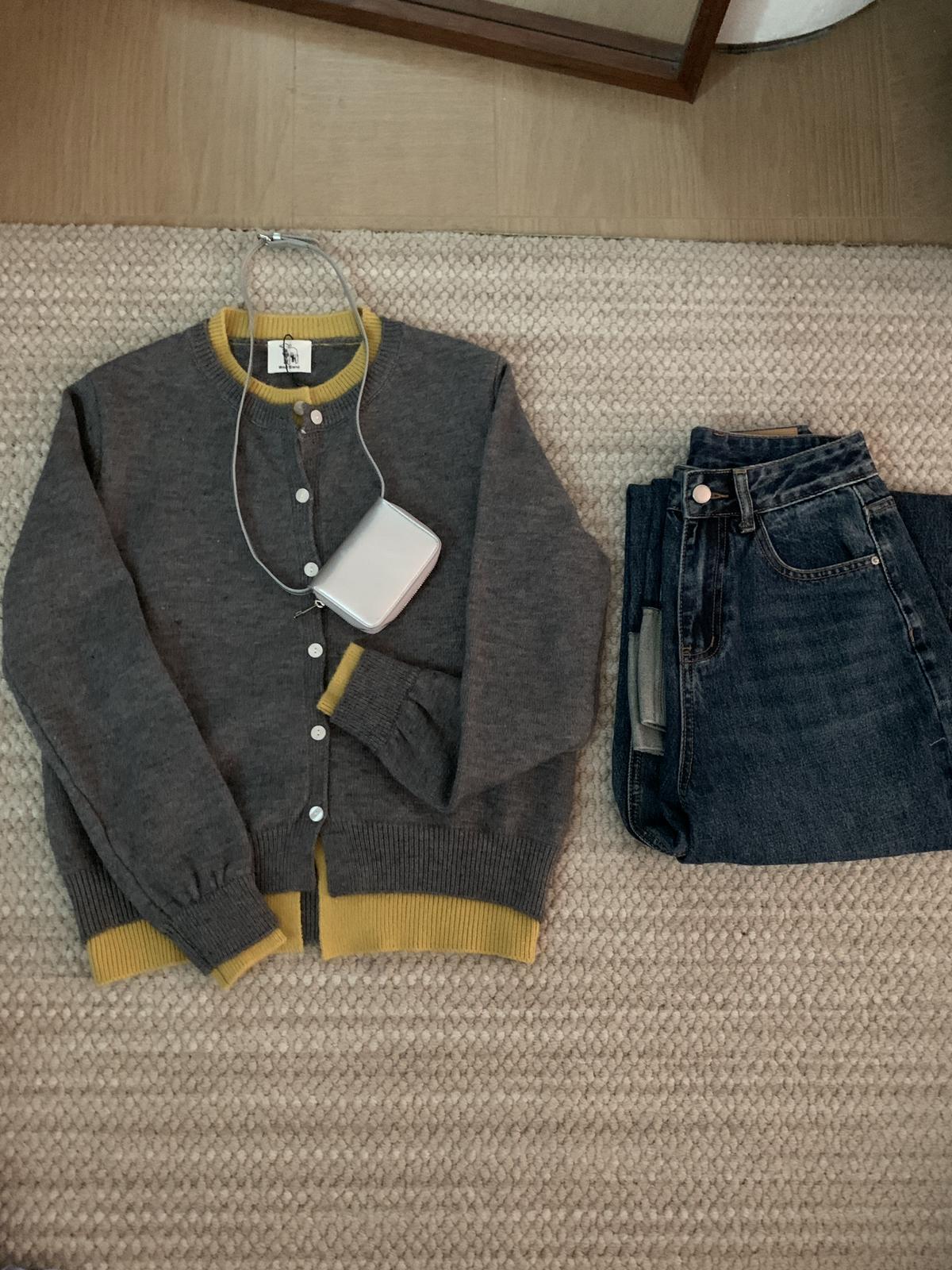3. 【C7292】疊穿假兩件撞色拼接休閒針織開衫