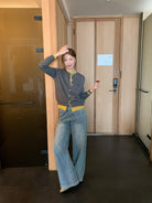 【C7292】疊穿假兩件撞色拼接休閒針織開衫