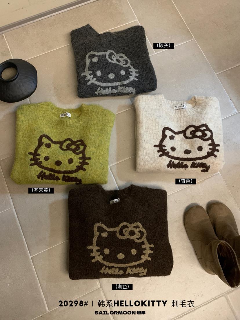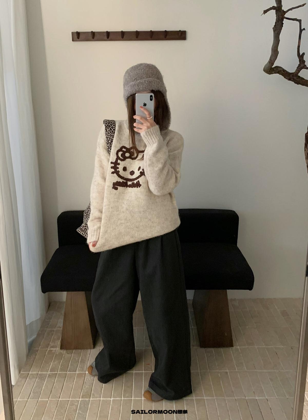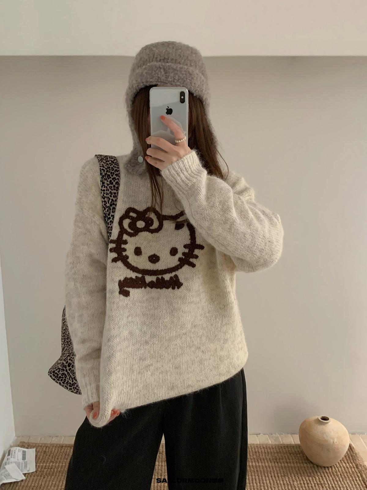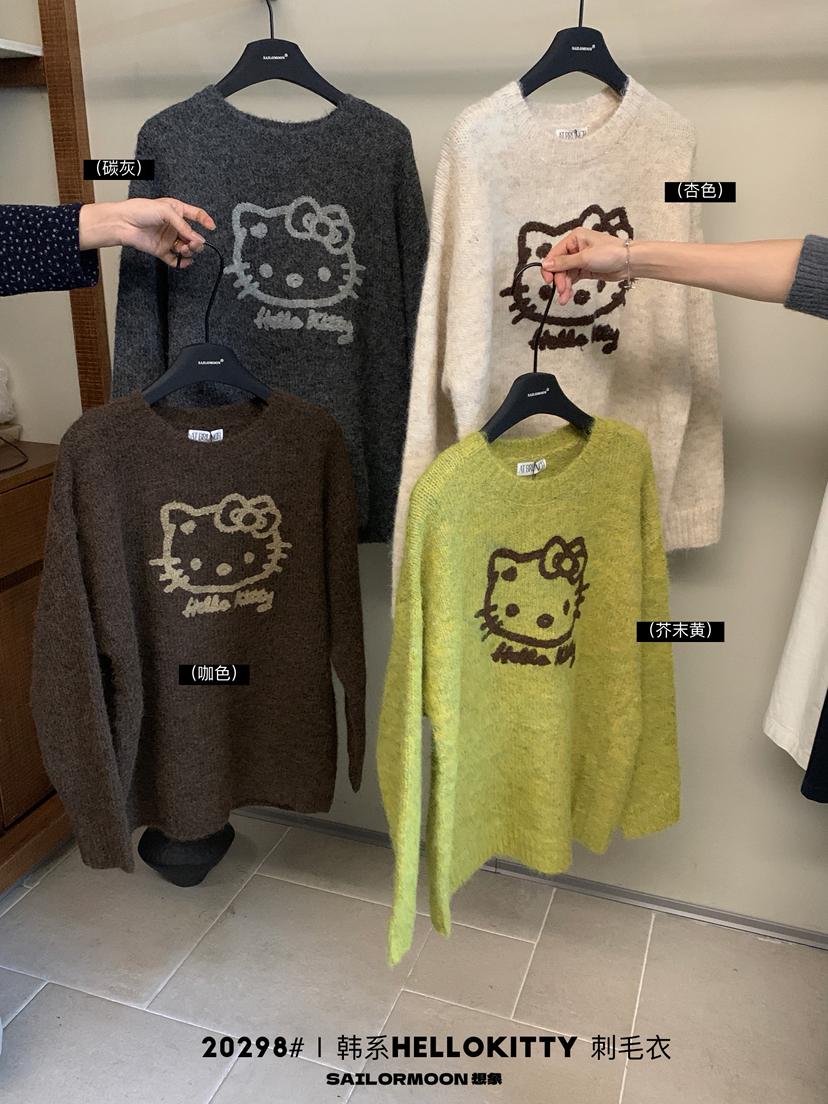 3. 【C7297】慵懶鬆弛大版!韓系萌趣HelloKitty太可愛了毛衣