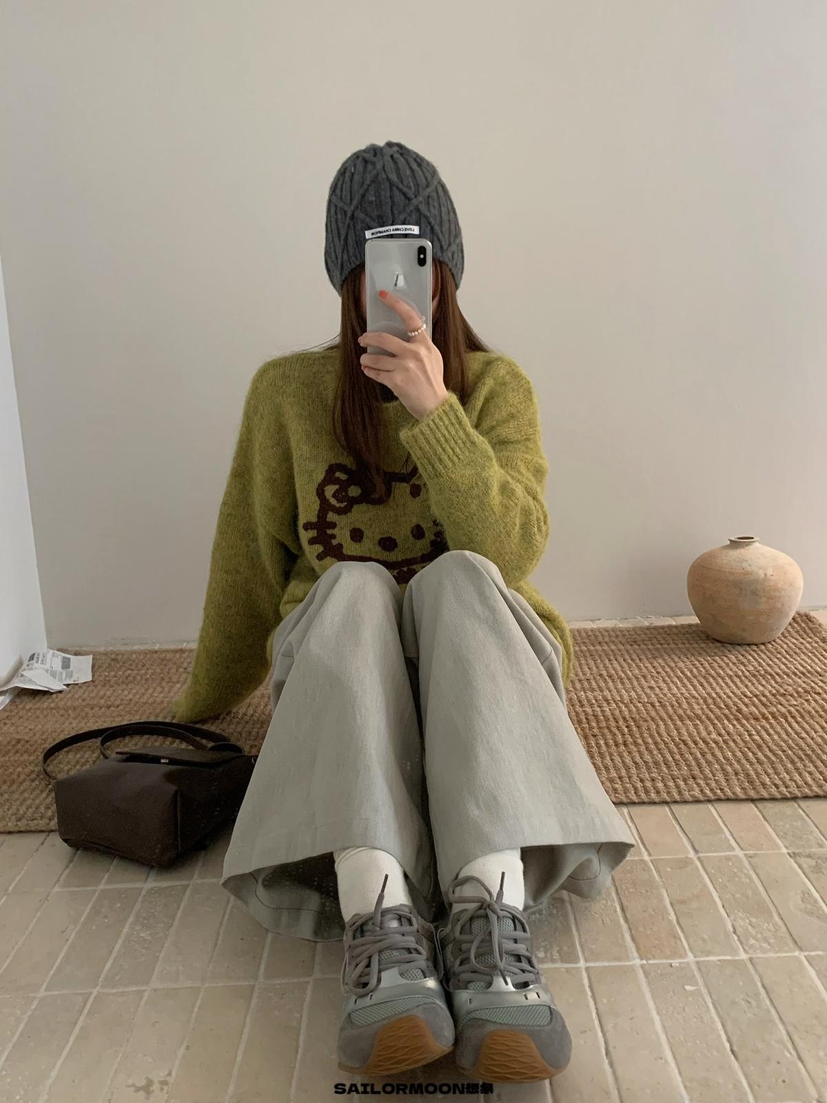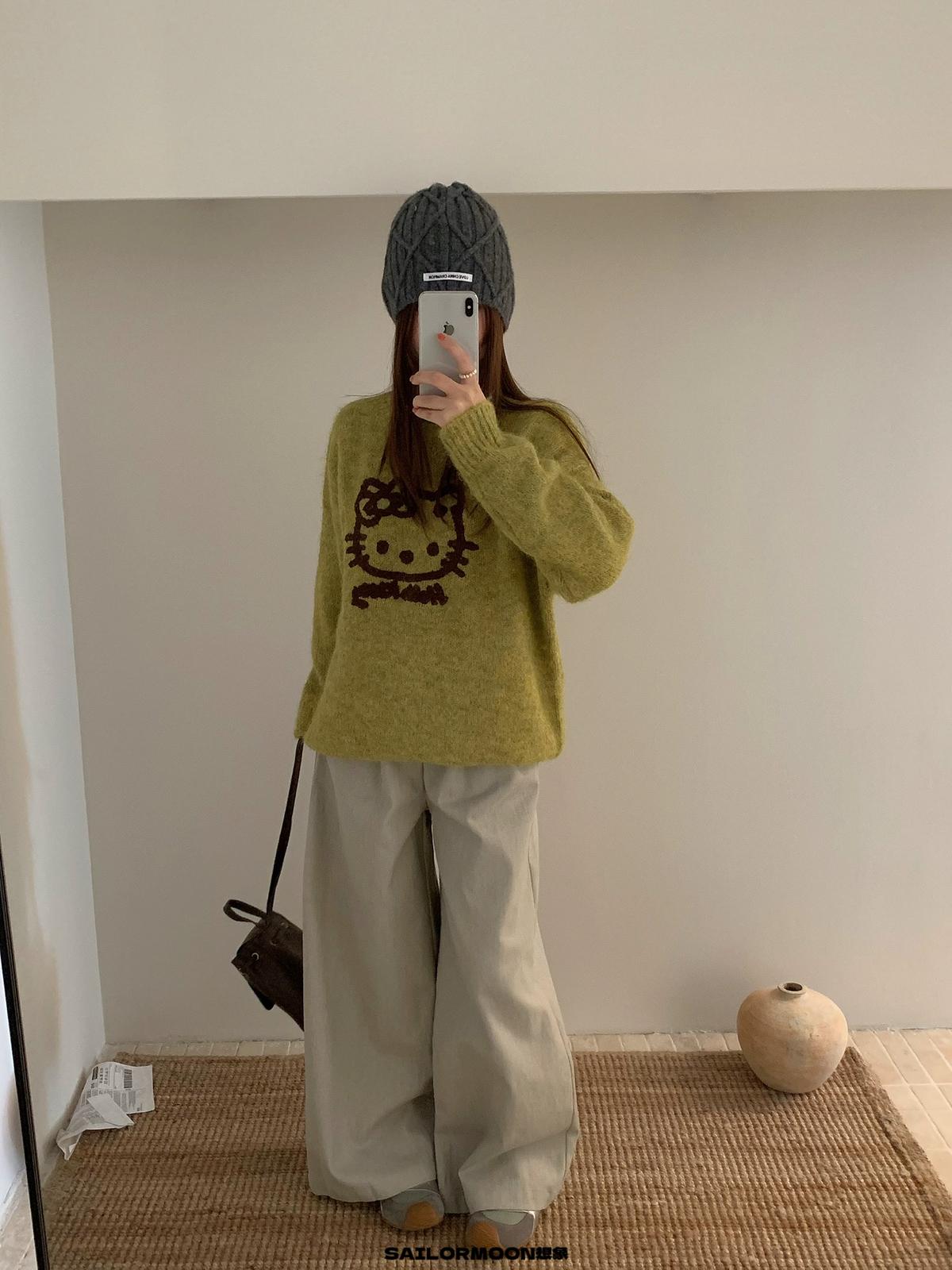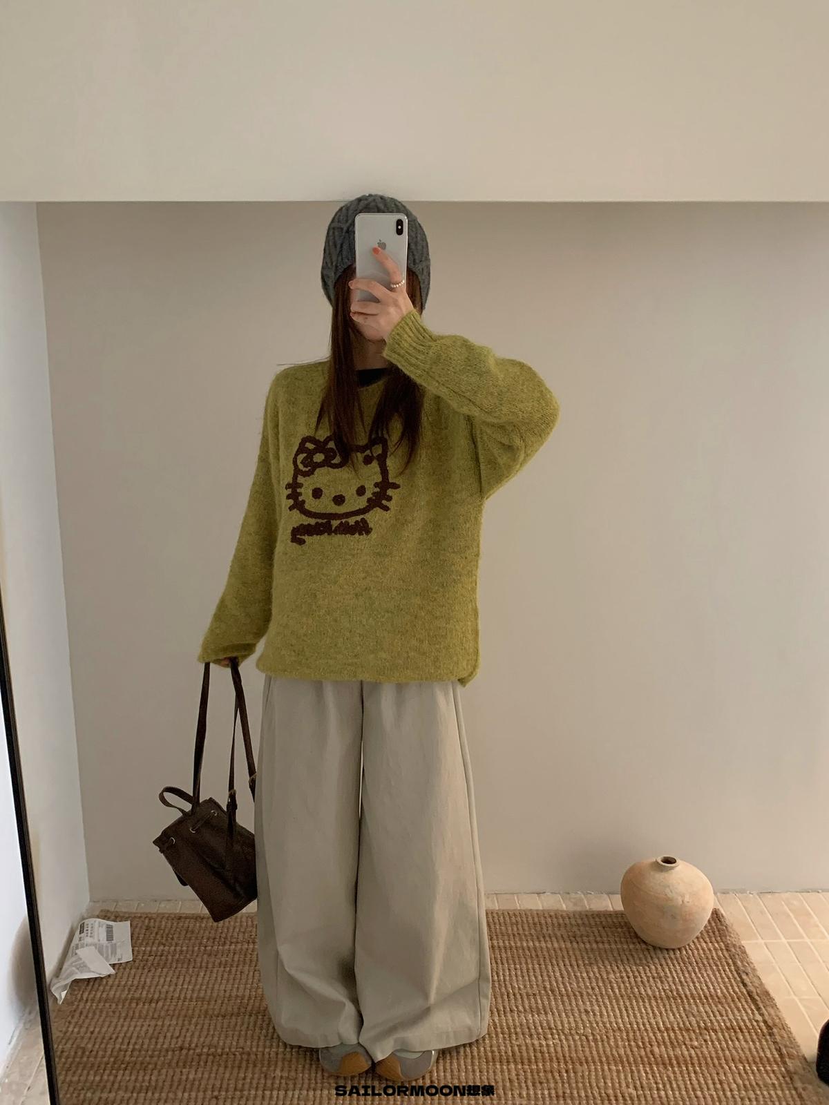 3. 【C7297】慵懶鬆弛大版!韓系萌趣HelloKitty太可愛了毛衣
