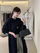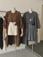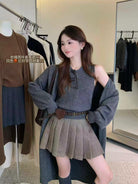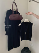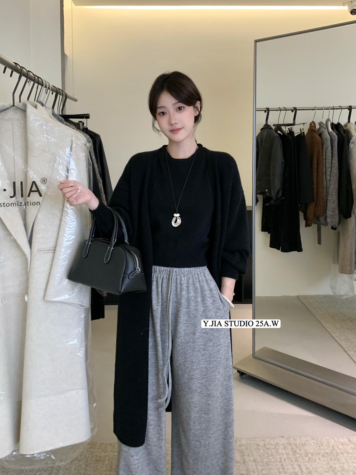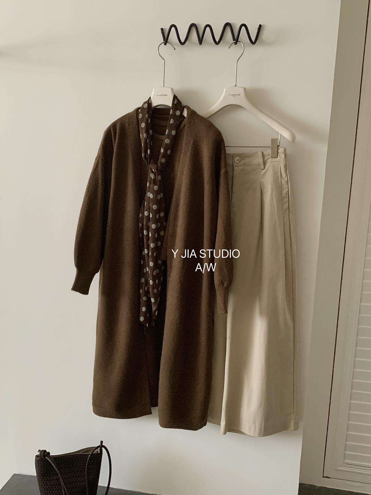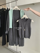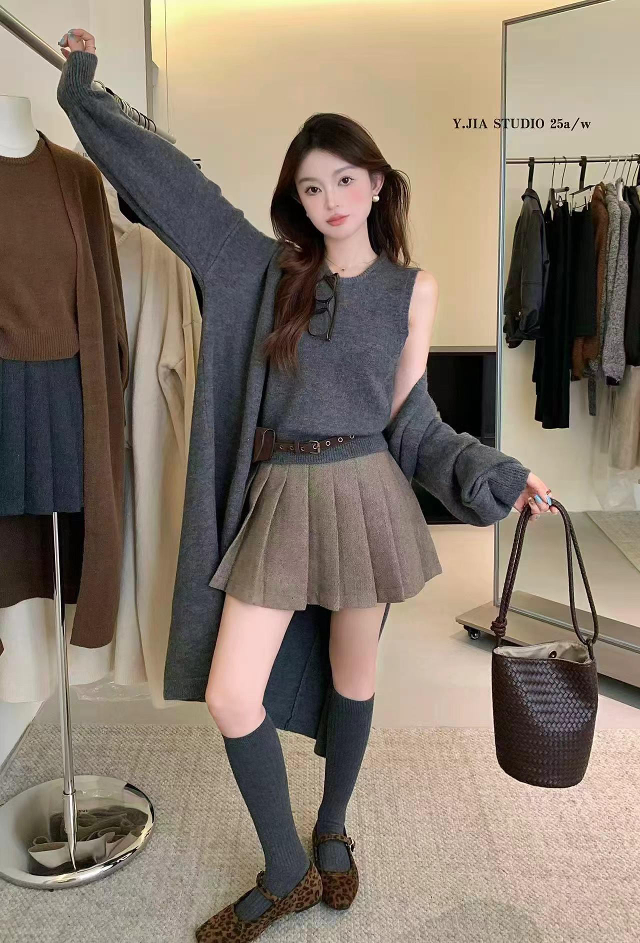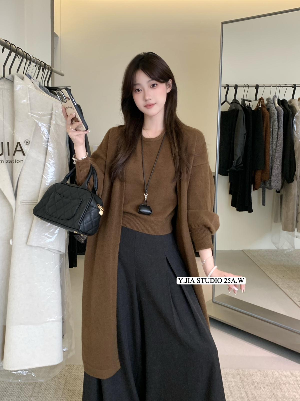 【C7352】慵懶風通勤寬鬆休閒長款針織開衫+短款針織背心套裝