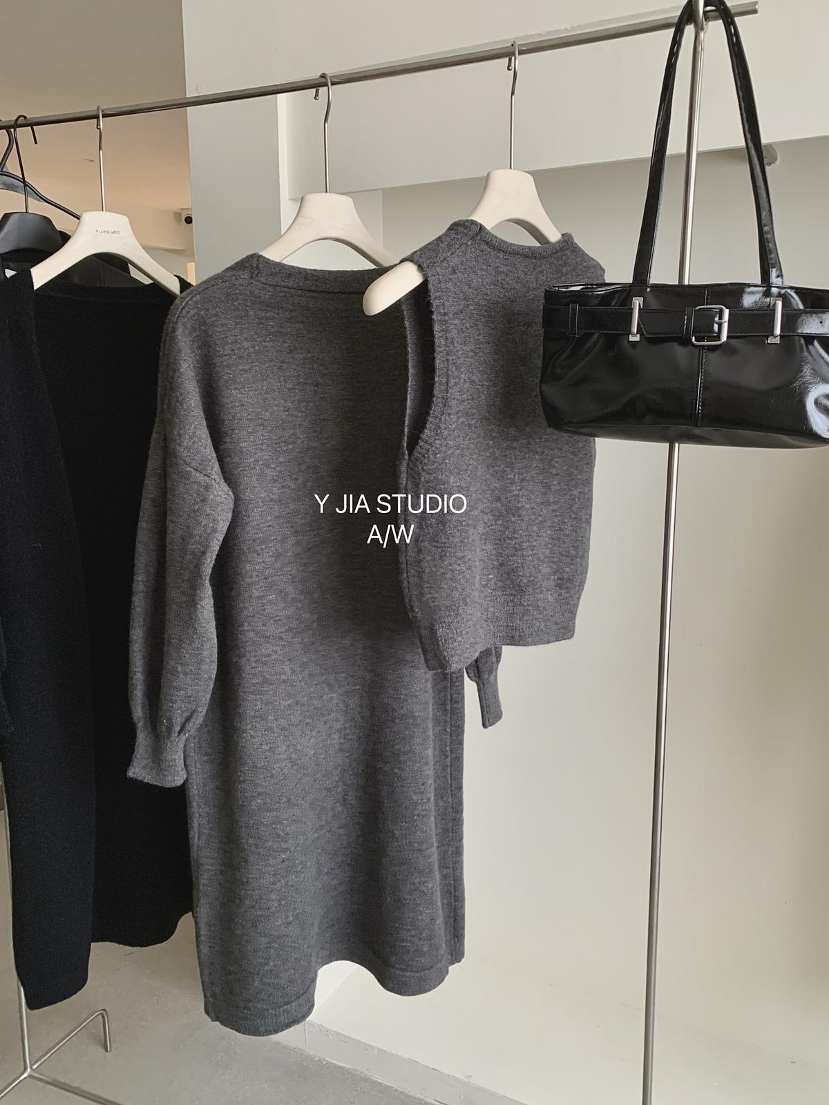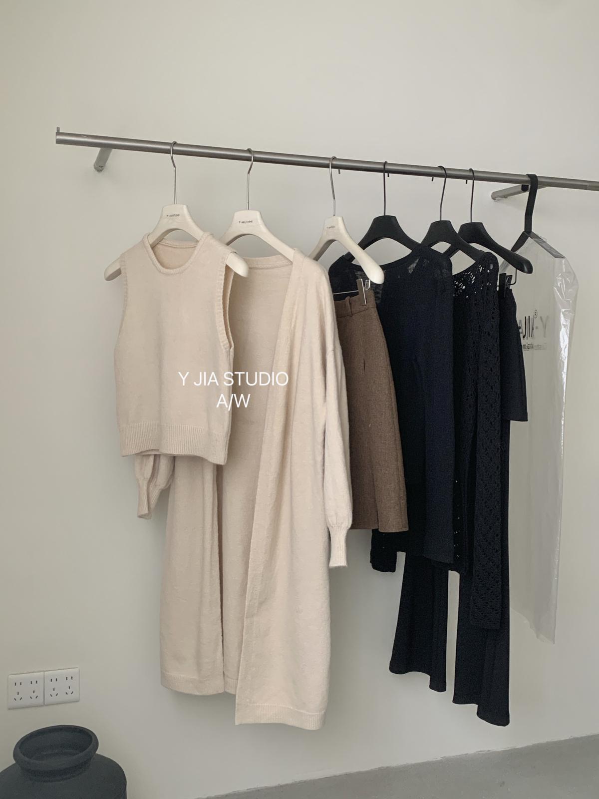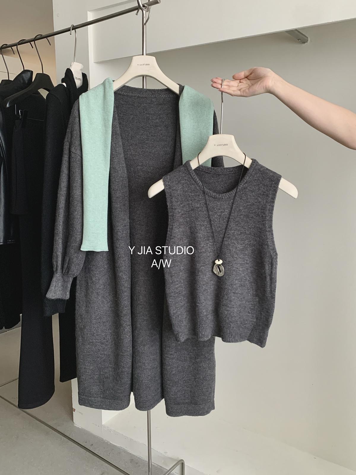 3. 【C7352】慵懶風通勤寬鬆休閒長款針織開衫+短款針織背心套裝