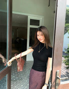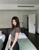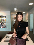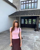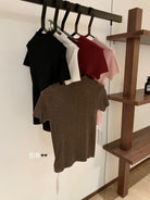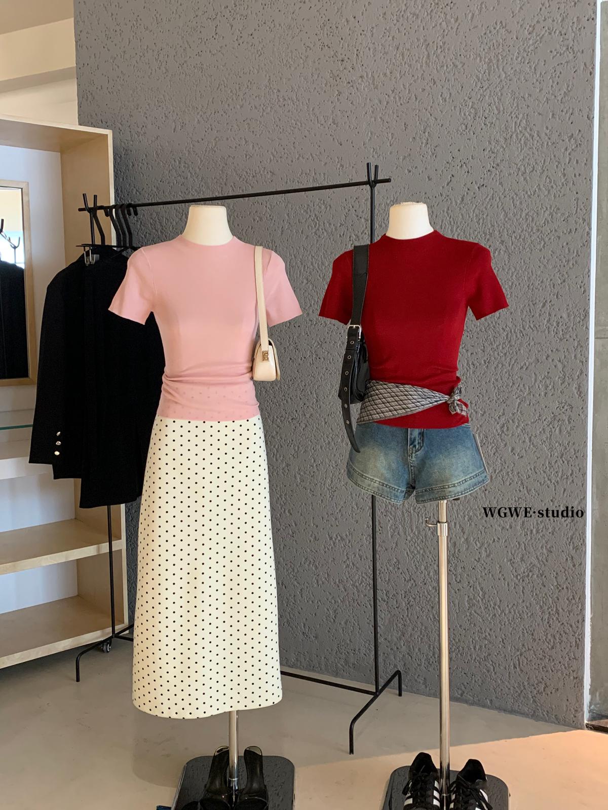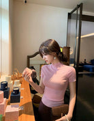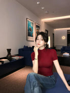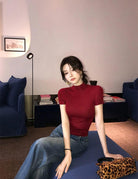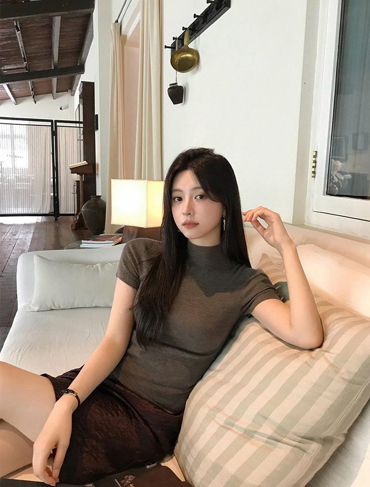 3. 【C7365】赫本半高領短袖針織修身顯瘦打底針織衫