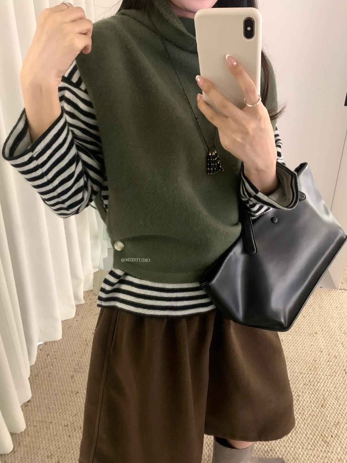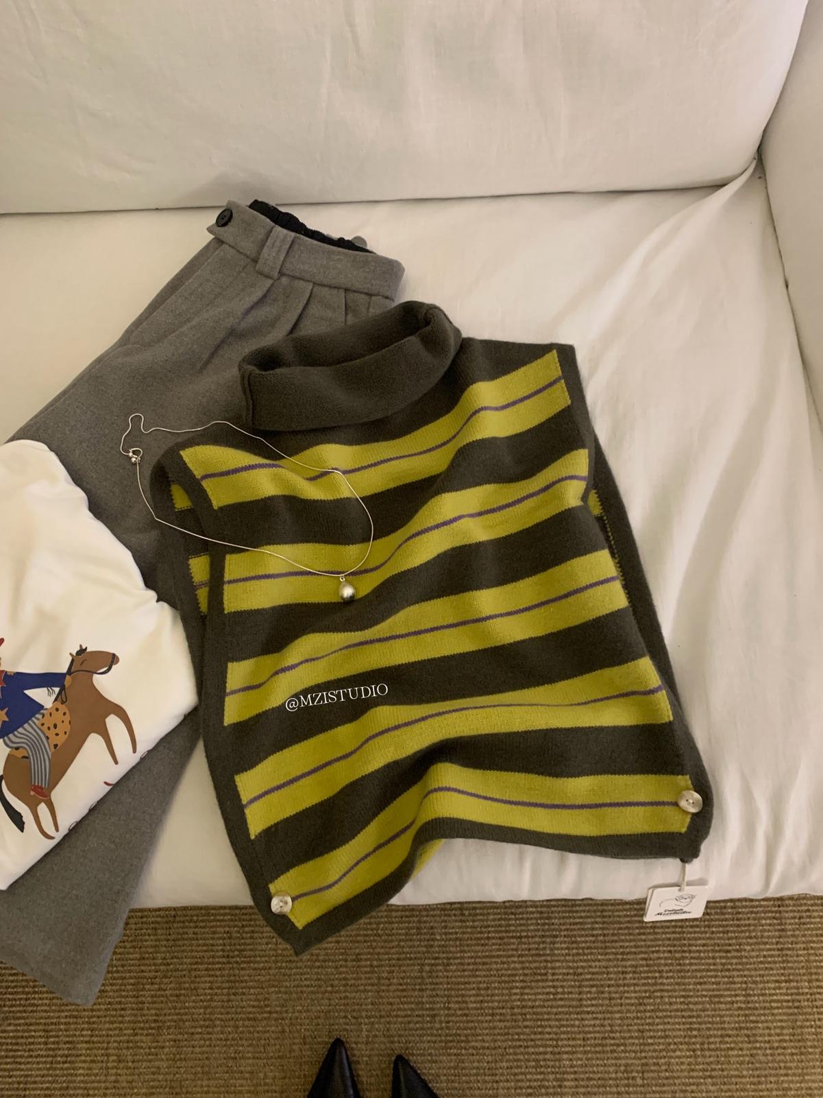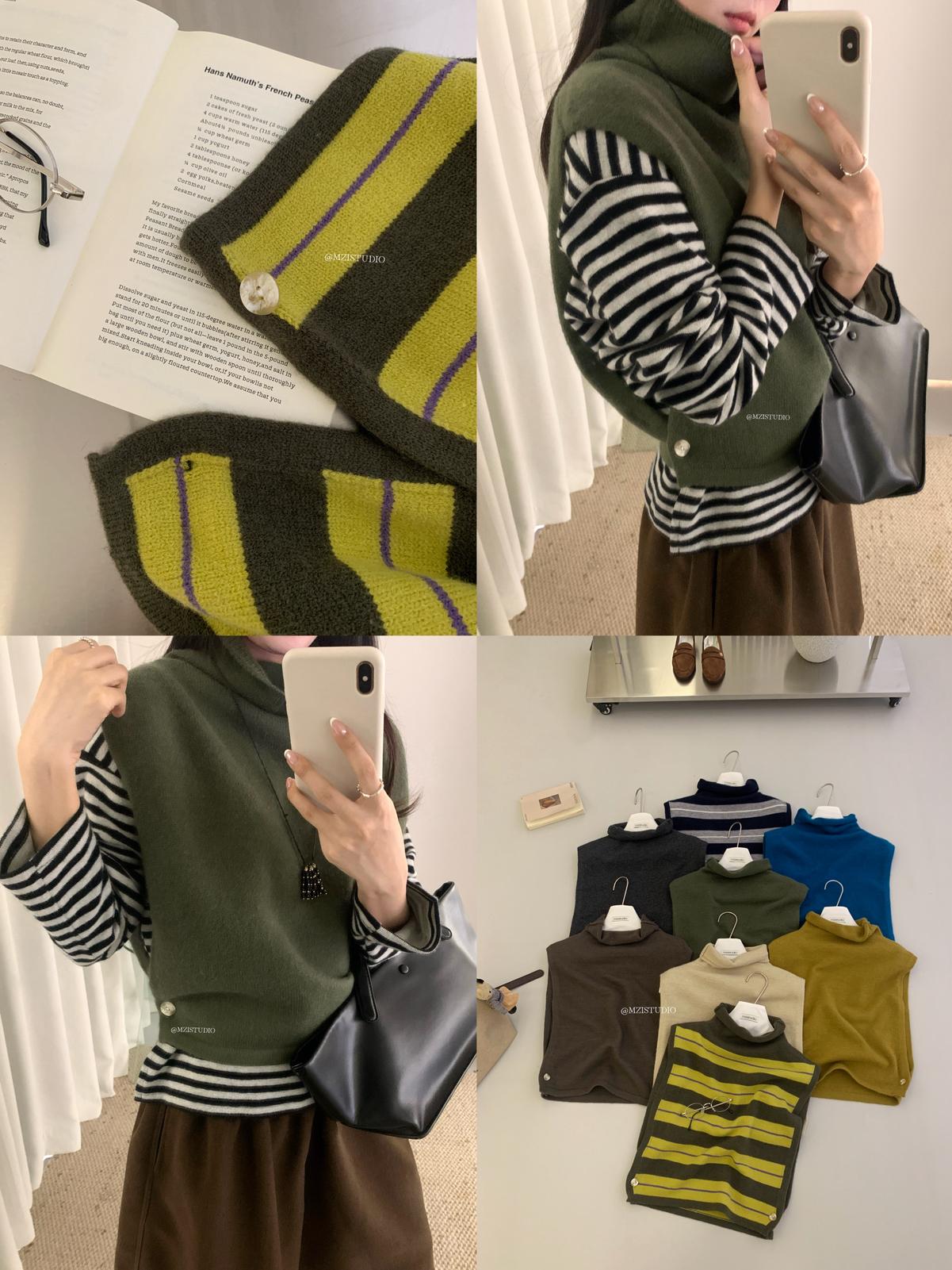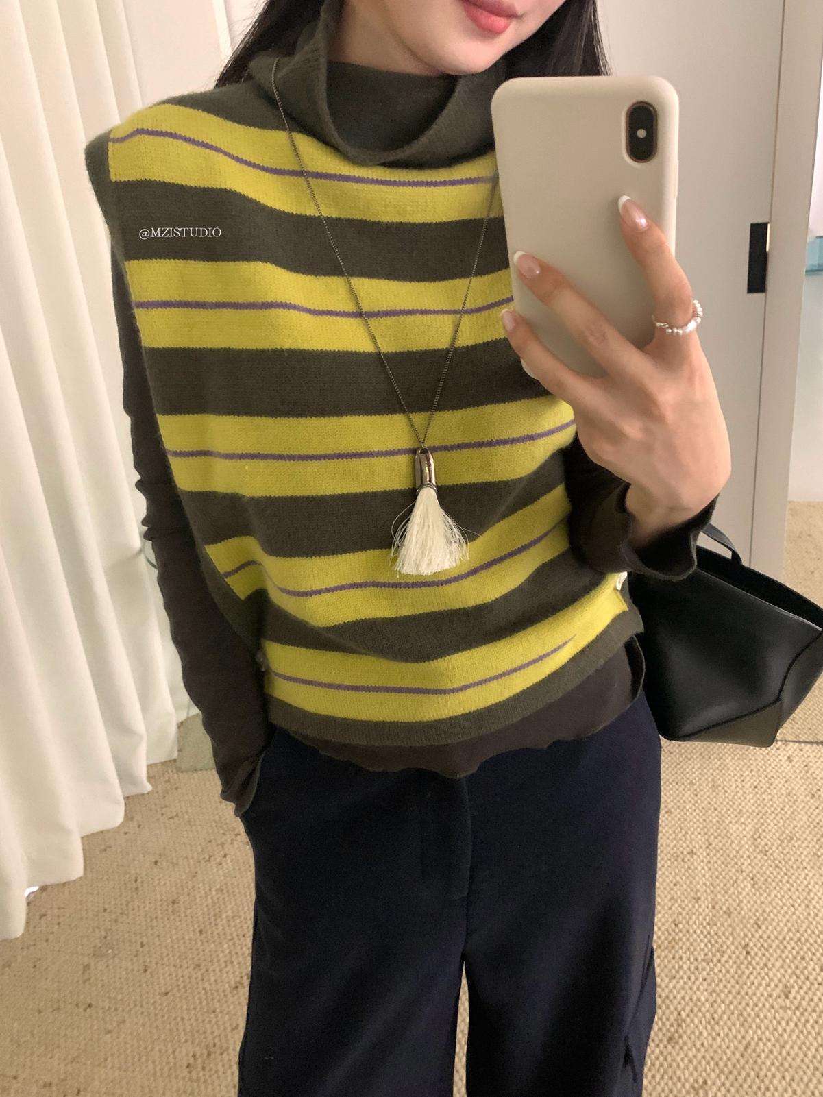 【C7385】成熟標杆秋冬疊穿搭配韓派小女人條紋高領修身馬甲毛衣背心