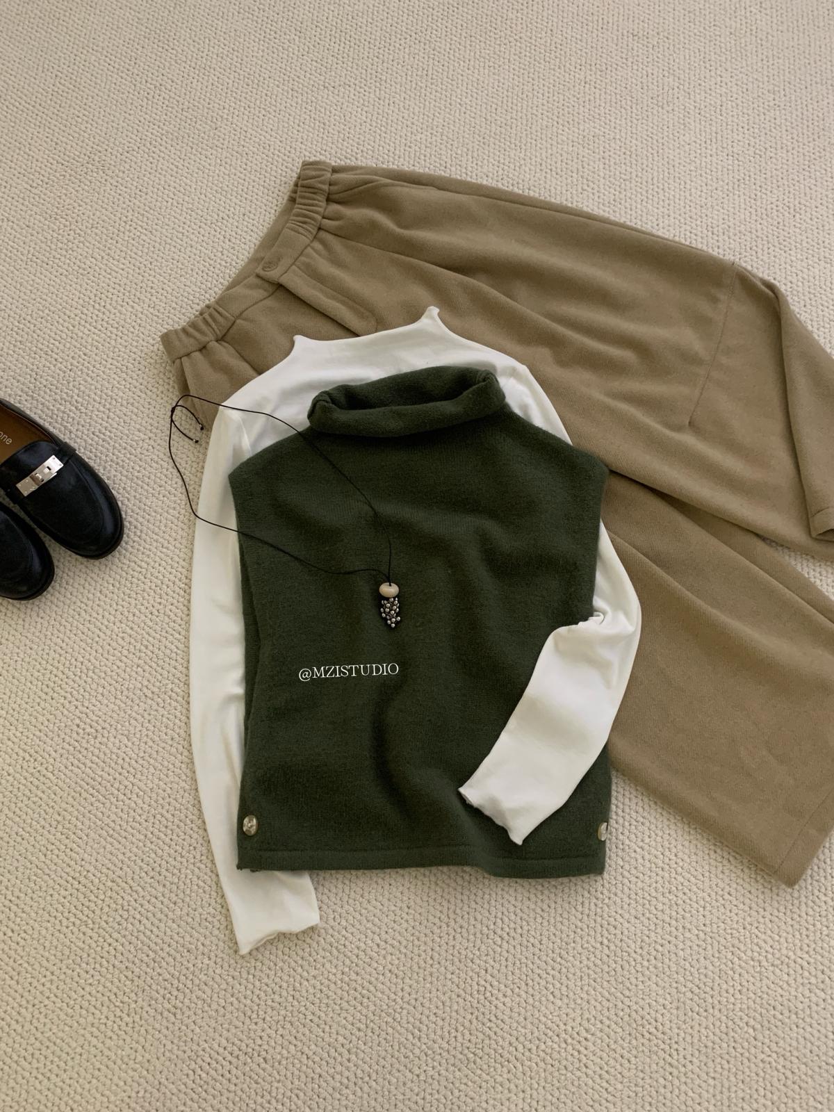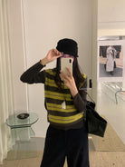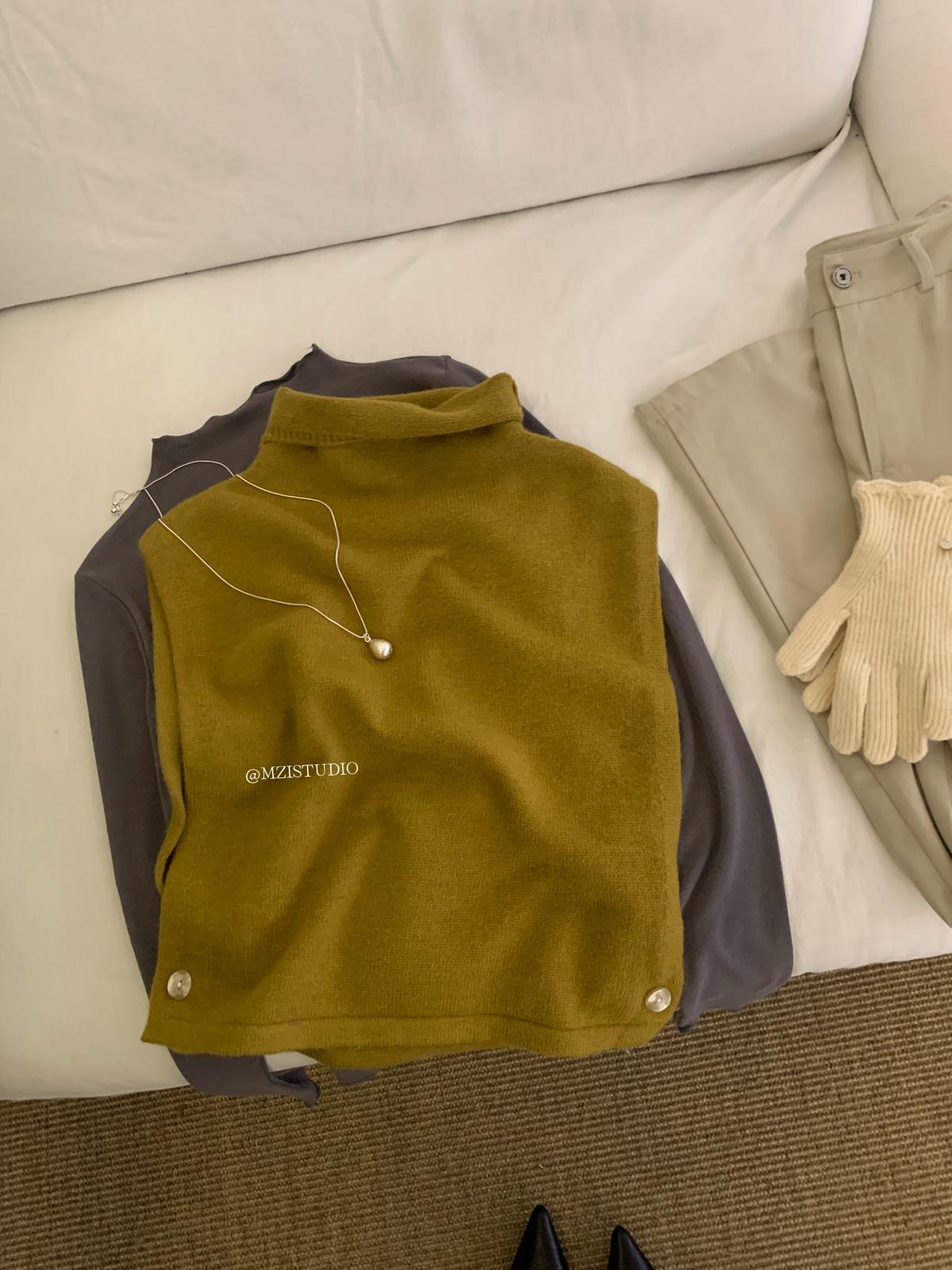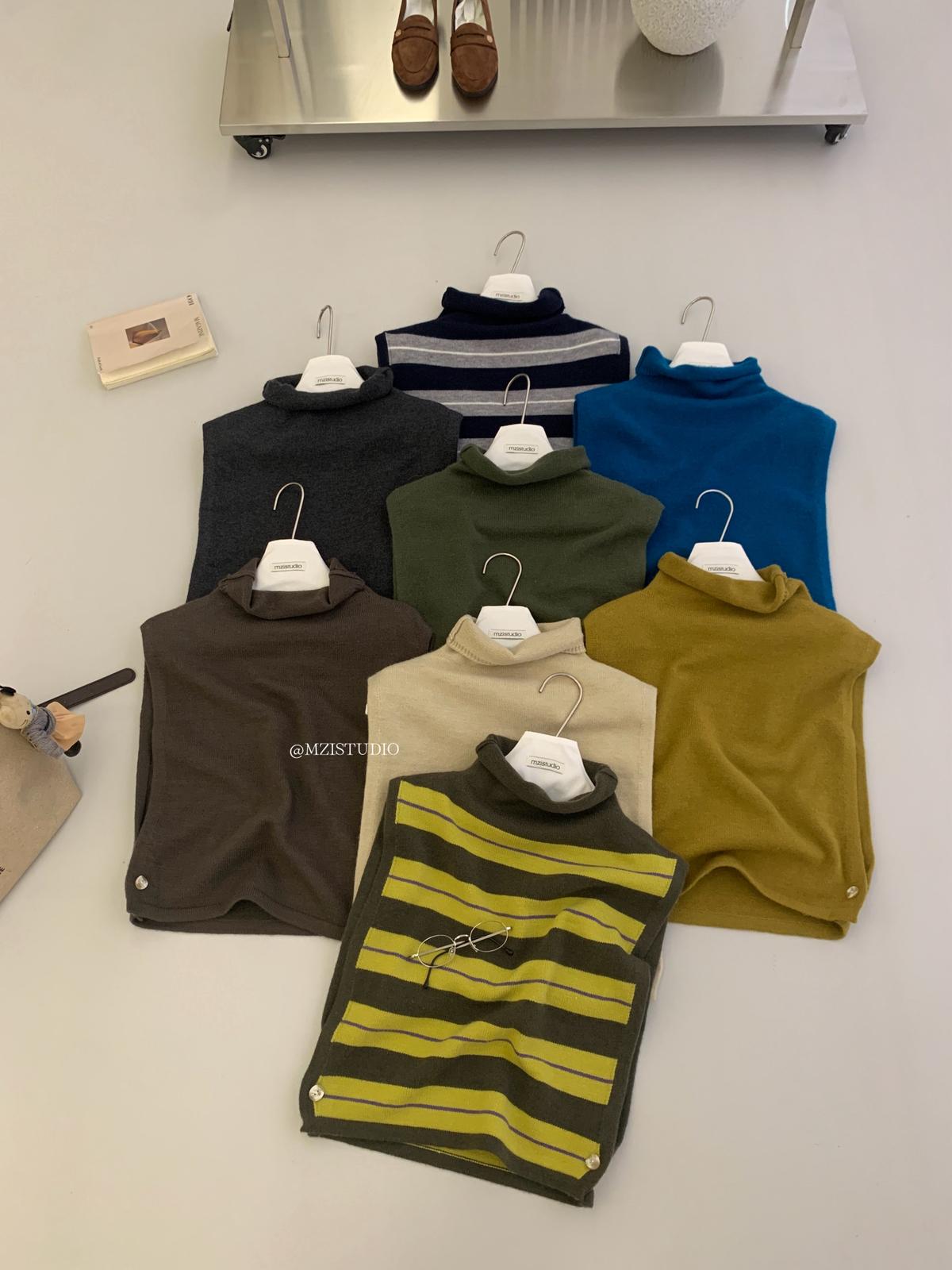 【C7385】成熟標杆秋冬疊穿搭配韓派小女人條紋高領修身馬甲毛衣背心