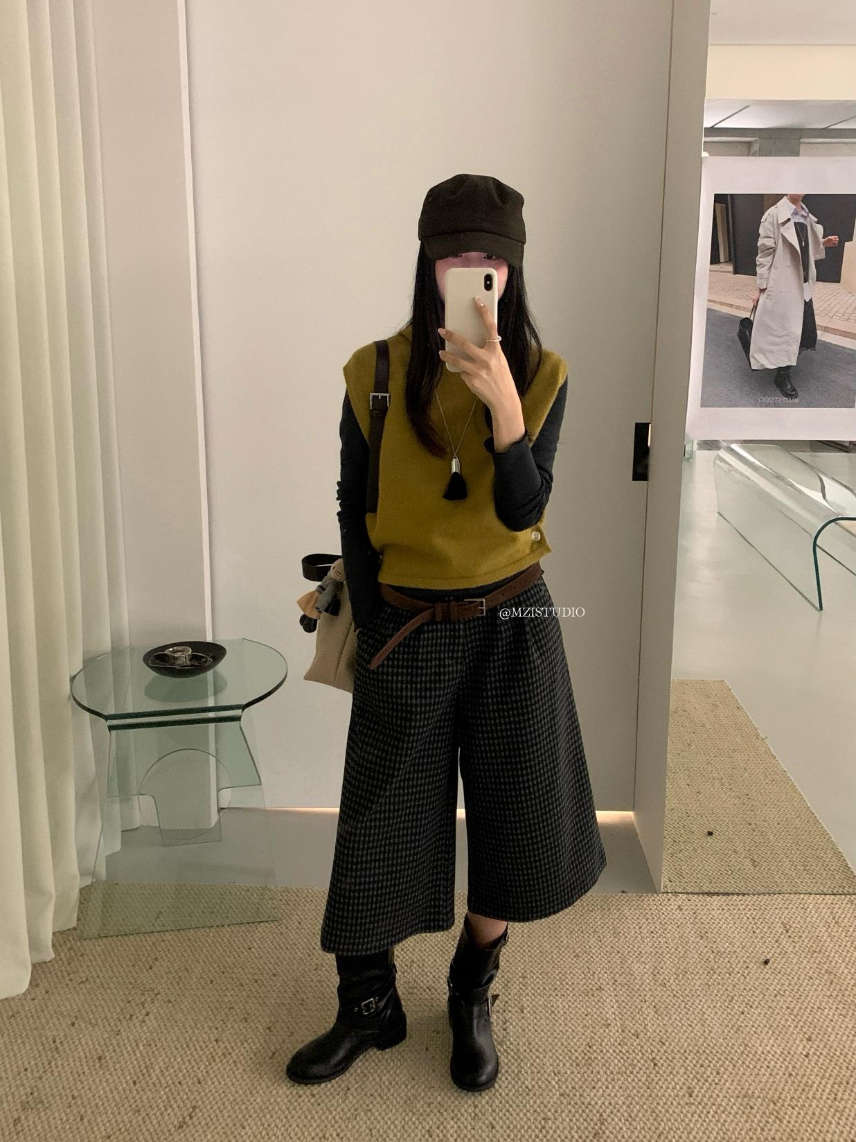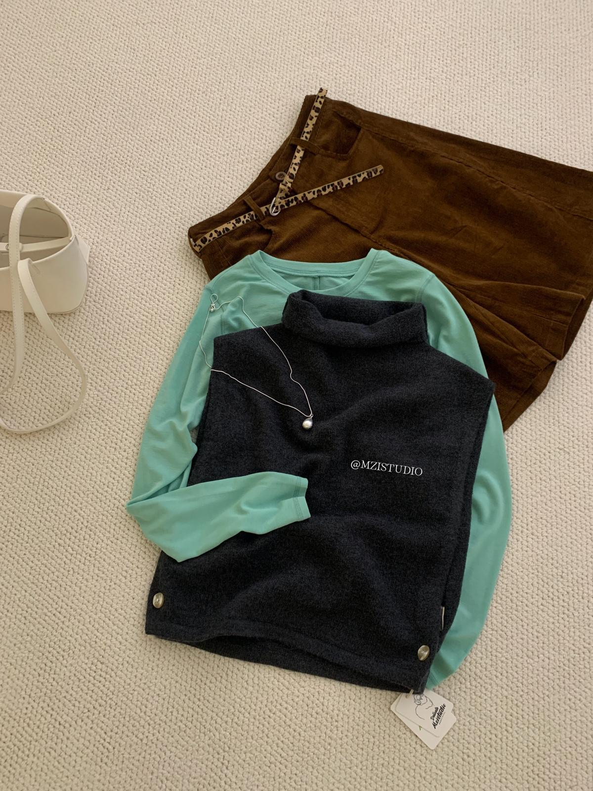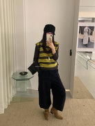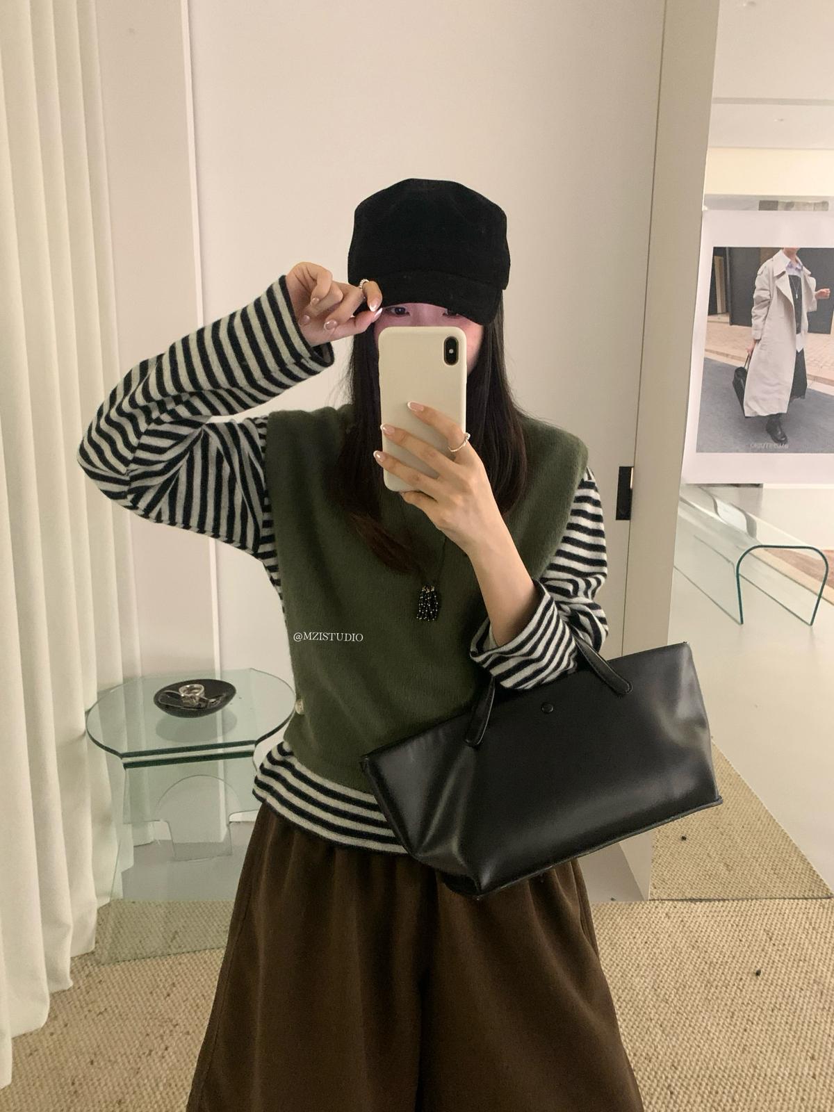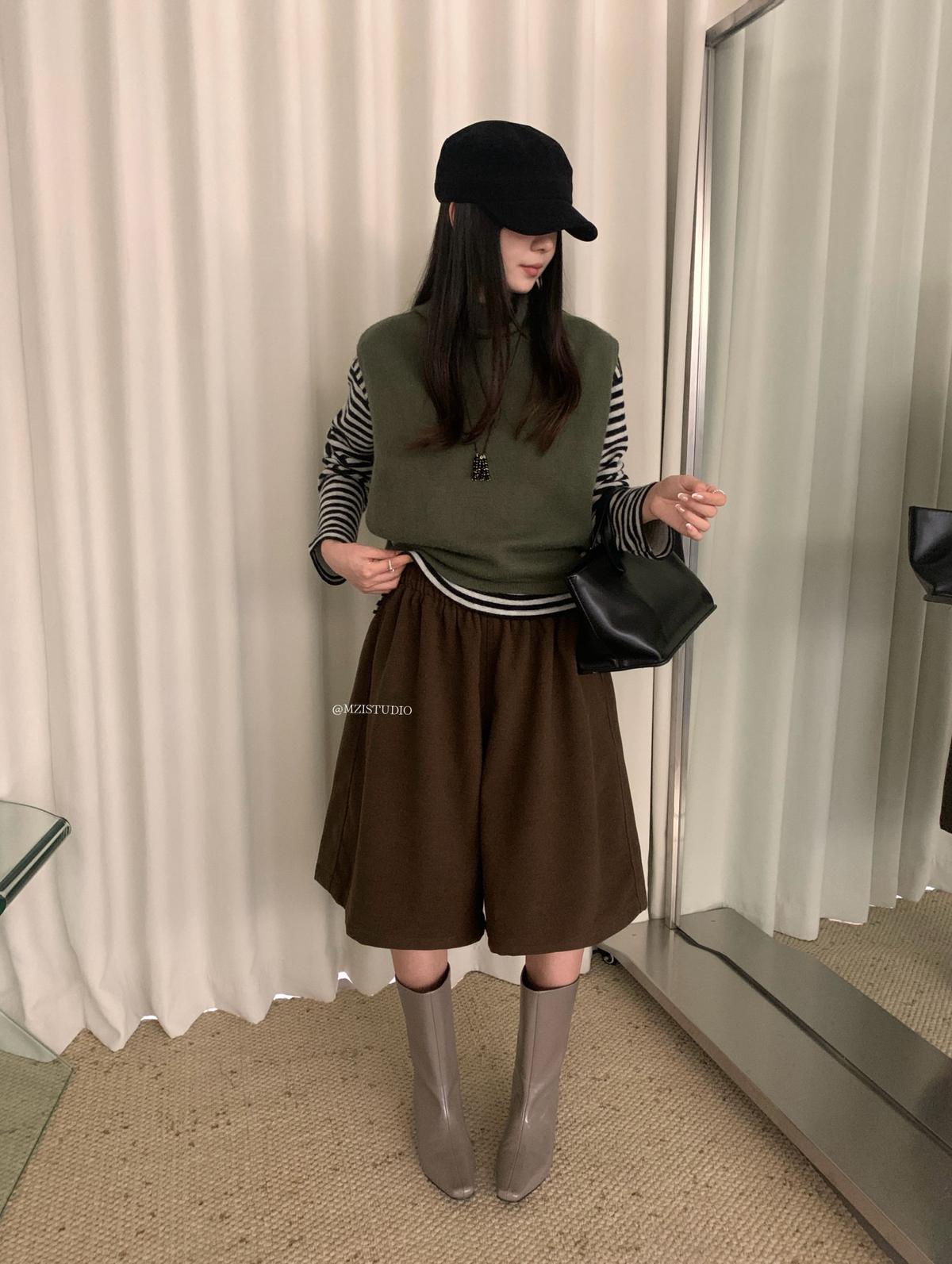 【C7385】成熟標杆秋冬疊穿搭配韓派小女人條紋高領修身馬甲毛衣背心