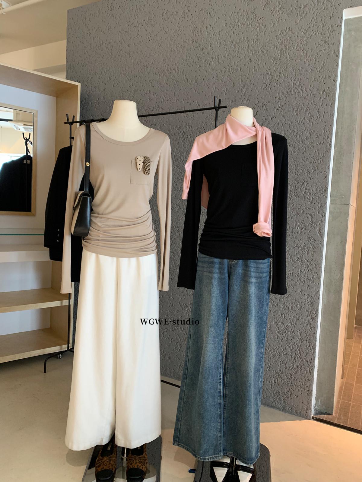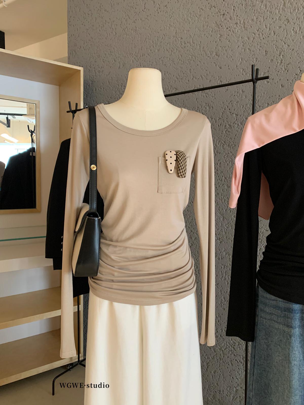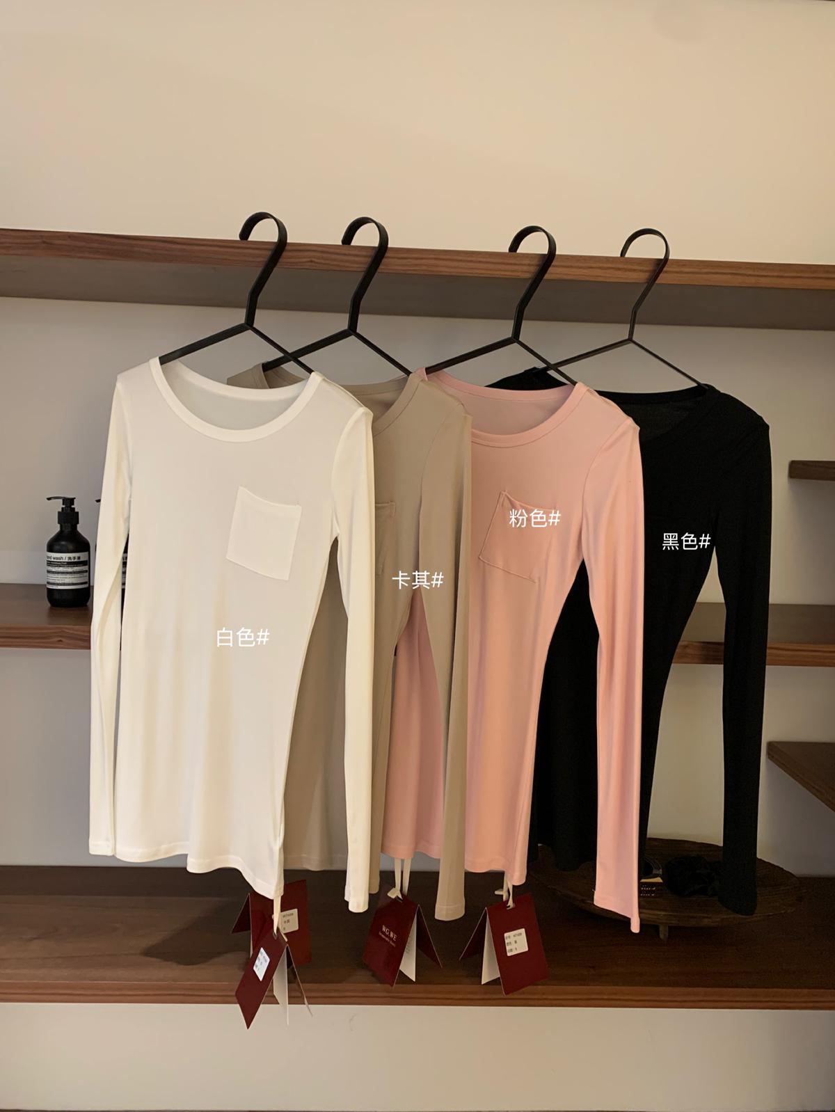 3. 【C7408】法式長袖t恤女內搭打底衫修身顯瘦氣質設計感百搭上衣長袖T恤