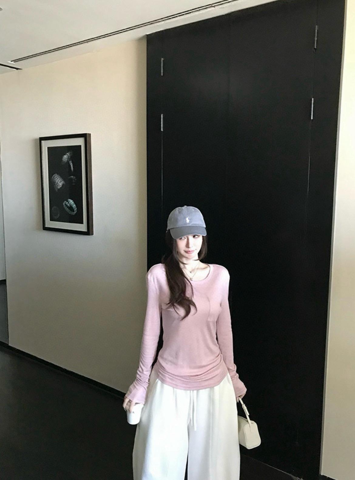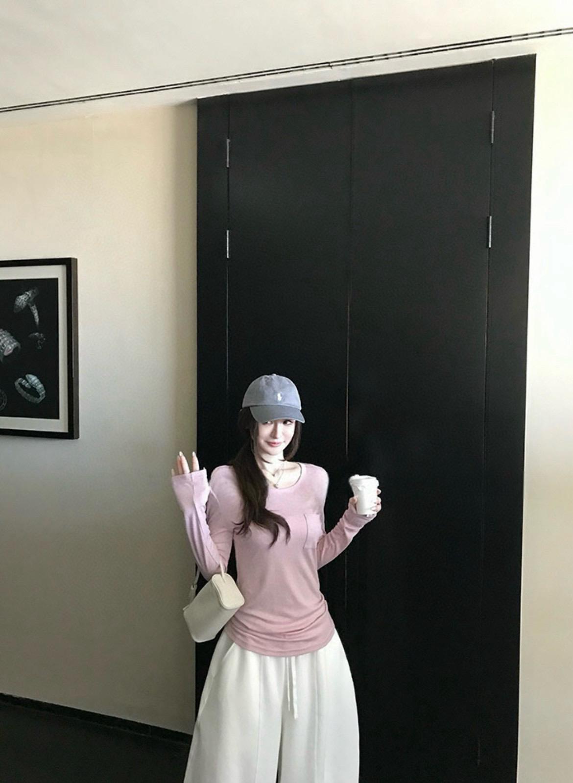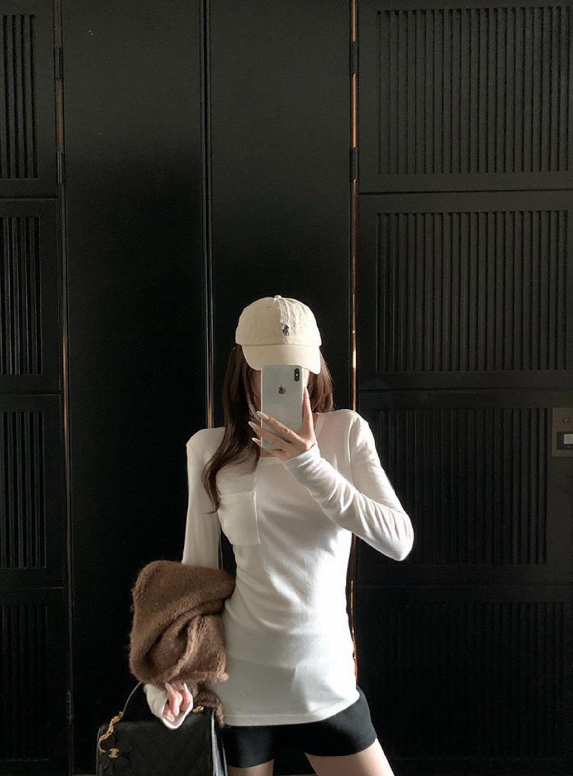 3. 【C7408】法式長袖t恤女內搭打底衫修身顯瘦氣質設計感百搭上衣長袖T恤