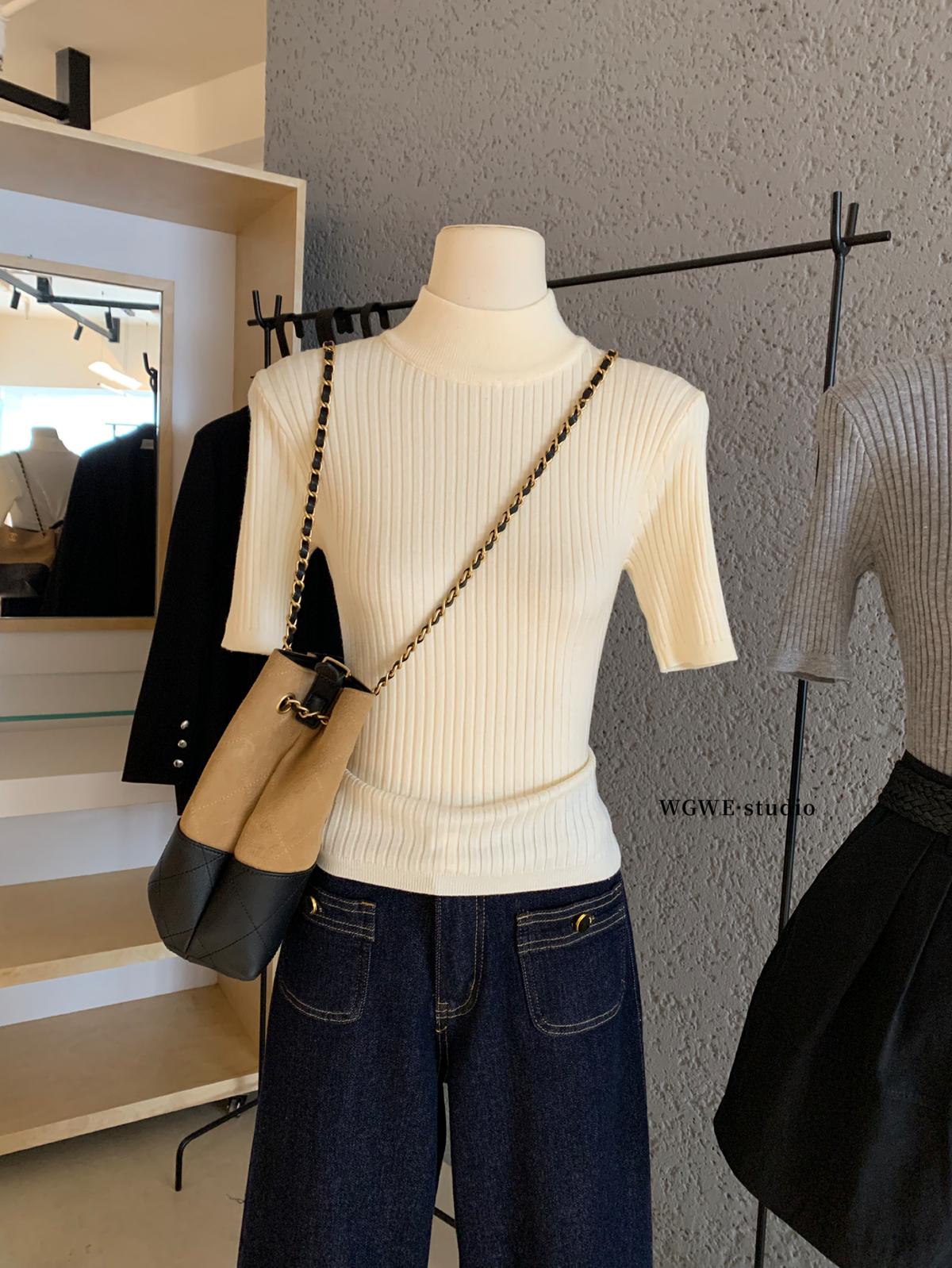 【C7414】韓版修身百搭顯瘦半高領軟糯羊毛針織衫