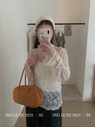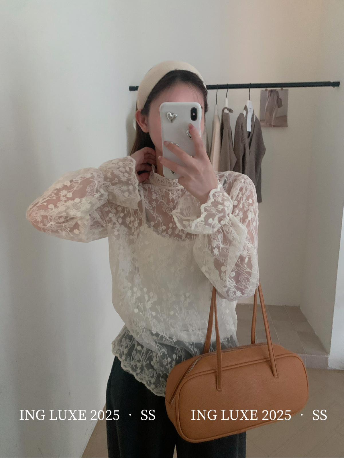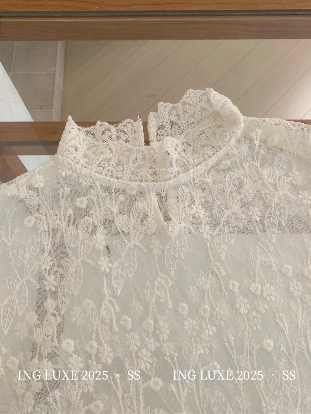 【C7420】半高領蕾絲女秋季新款2025洋氣內搭高級感設計感網紗上衣打底衫
