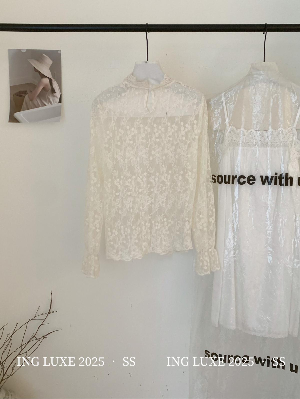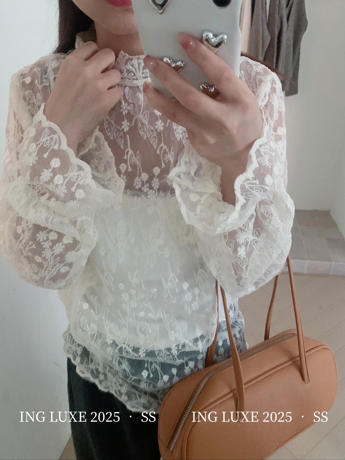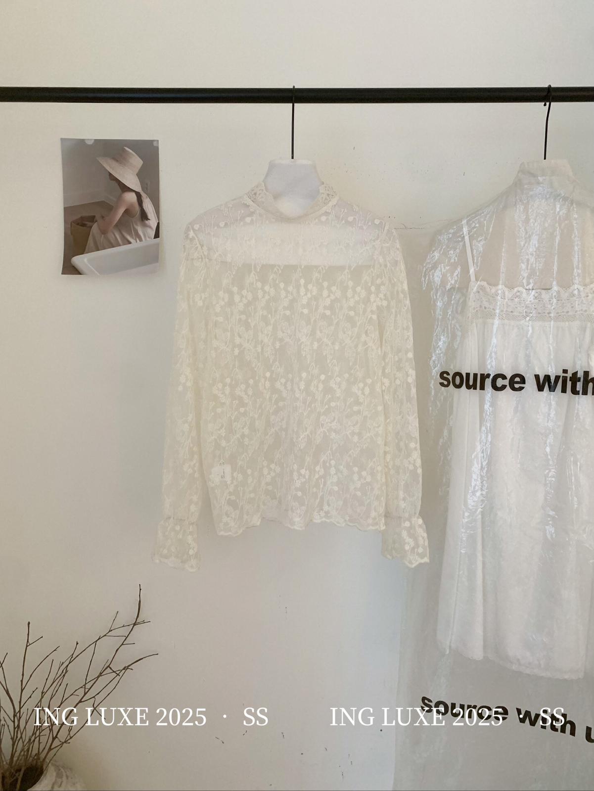 3. 【C7420】半高領蕾絲女秋季新款2025洋氣內搭高級感設計感網紗上衣打底衫