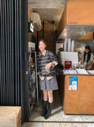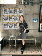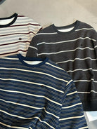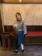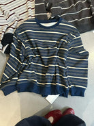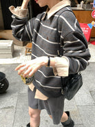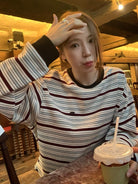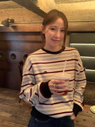 【C7434】韓系學院風復古撞色條紋小標Baby絨衛衣