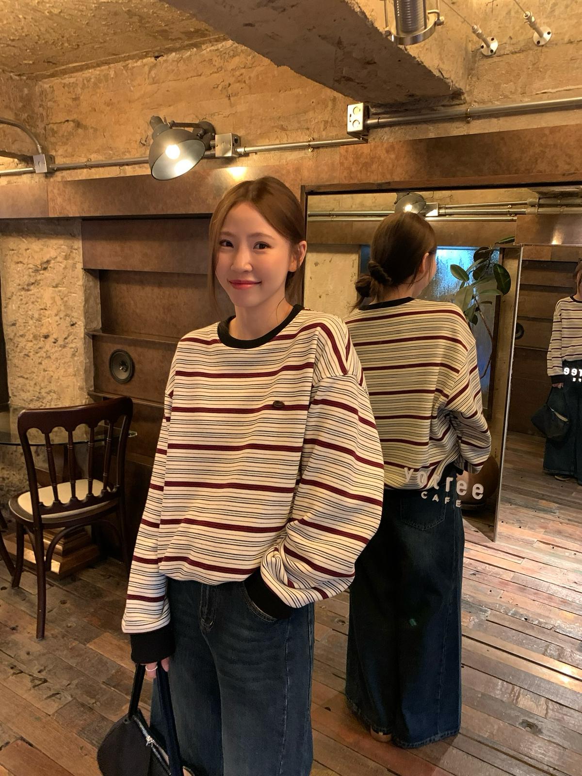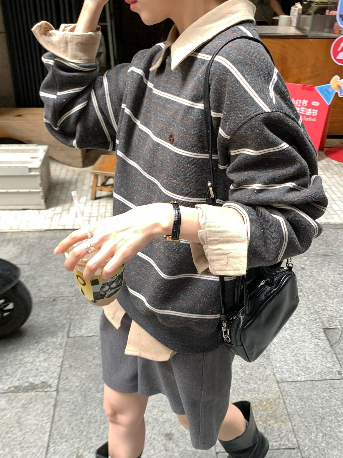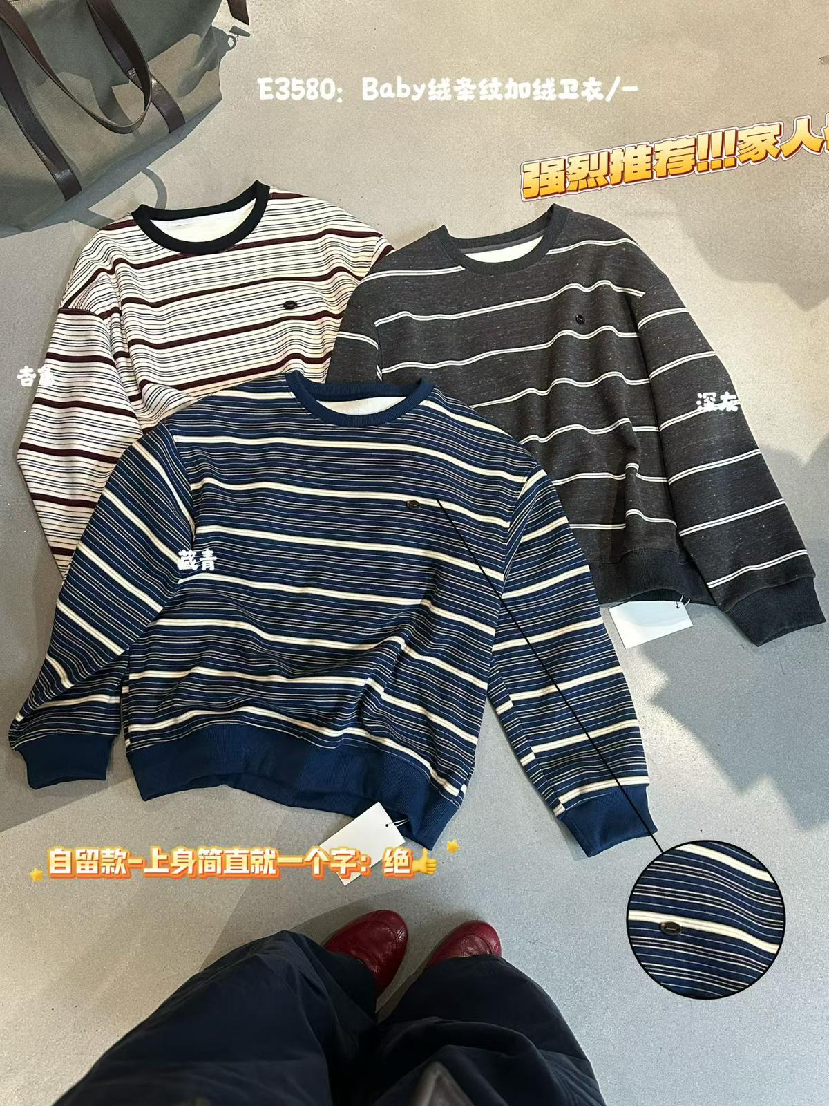 3. 【C7434】韓系學院風復古撞色條紋小標Baby絨衛衣