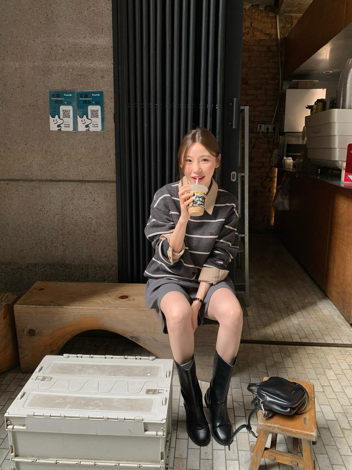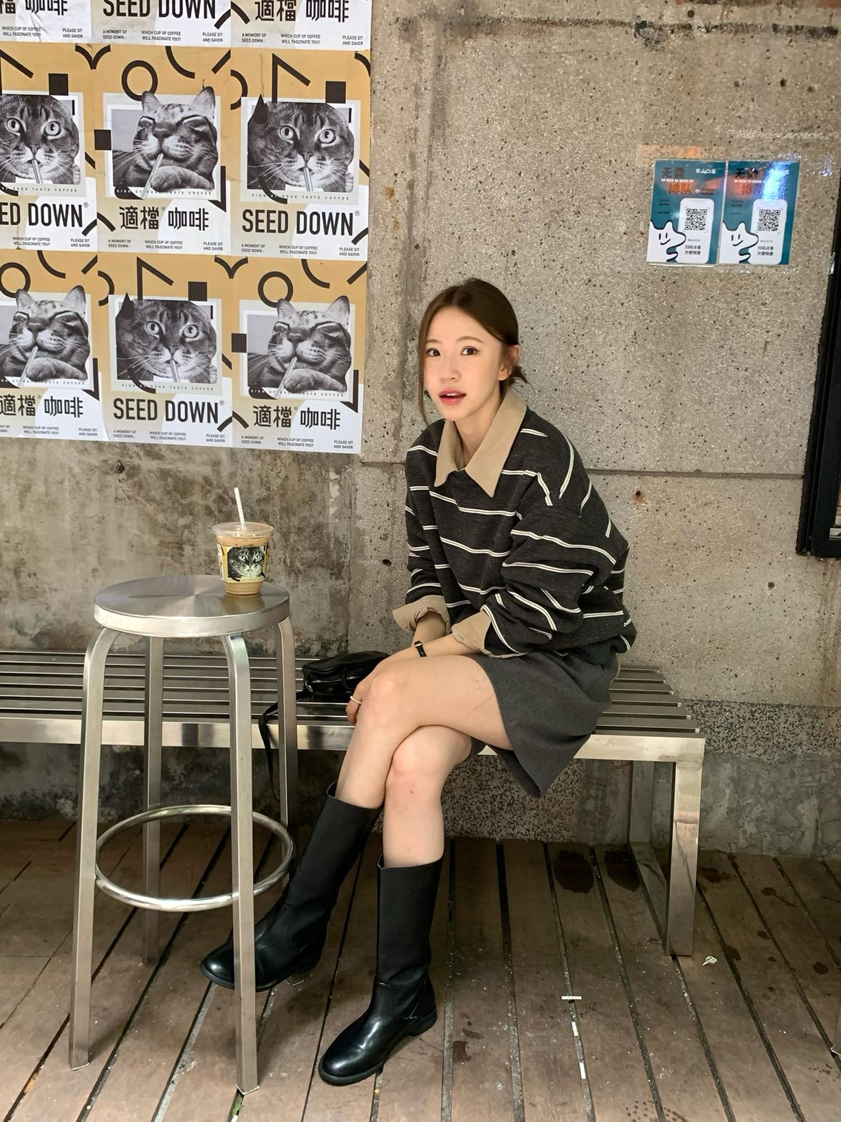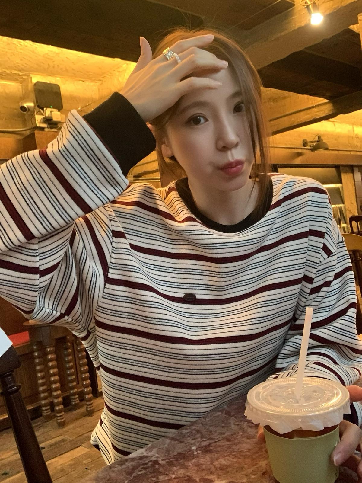 3. 【C7434】韓系學院風復古撞色條紋小標Baby絨衛衣