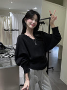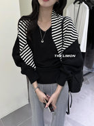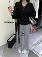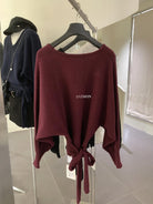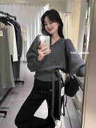 【C7447】秋冬氛圍感V領綁帶設計感蝙蝠袖針織衫(含5%羊毛)
