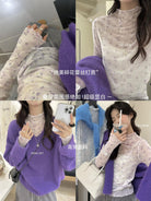 【C7451】韓系疊穿碎花內搭蕾絲洋氣木耳邊小衫