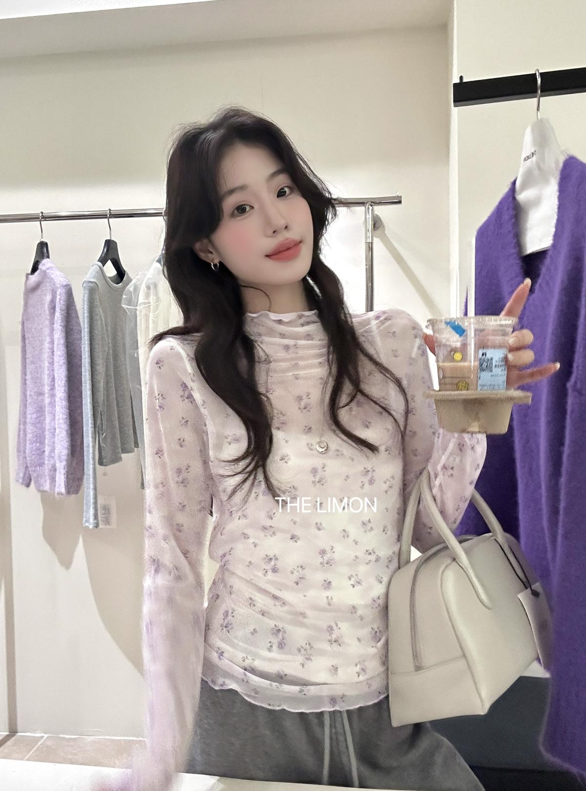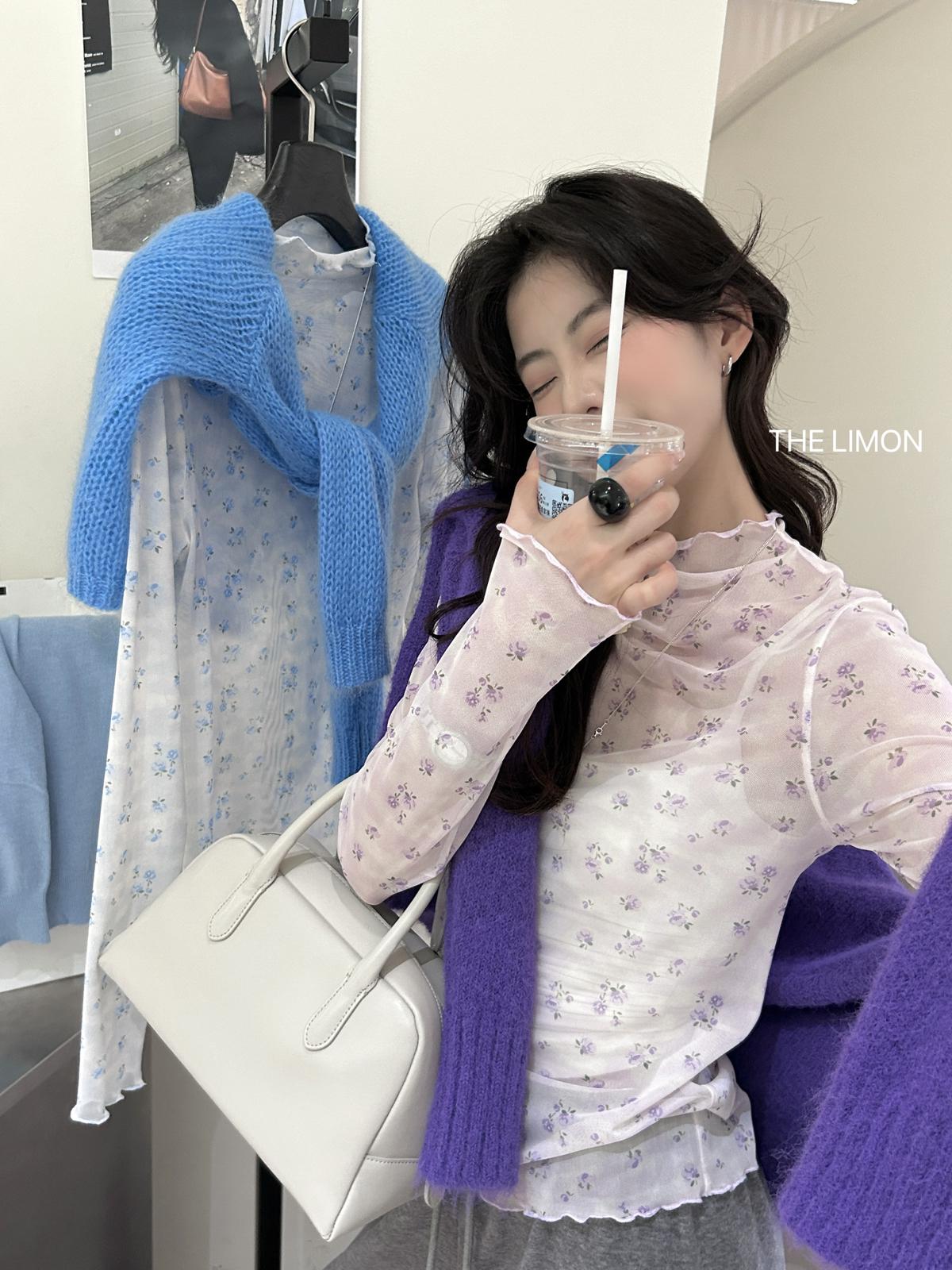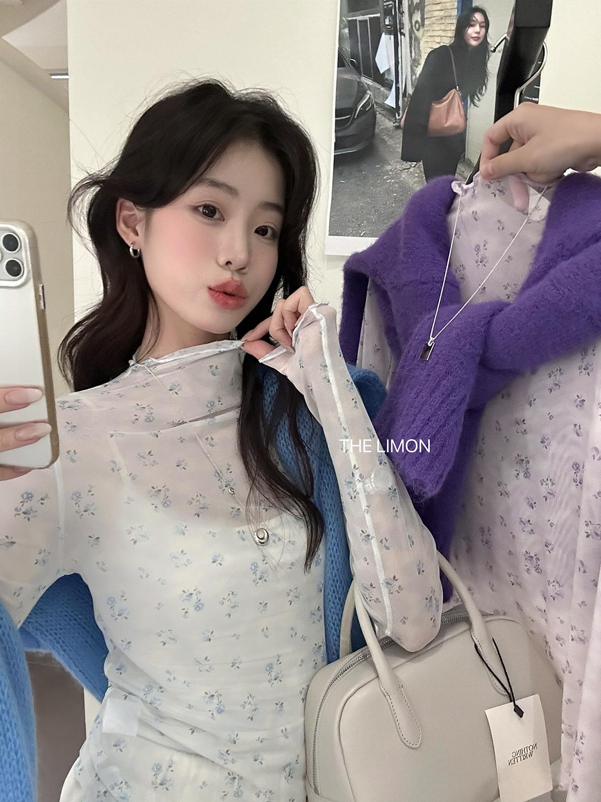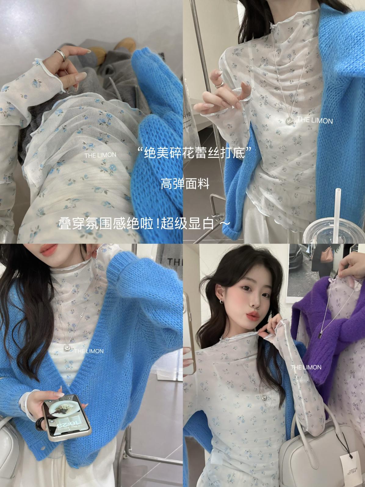 3. 【C7451】韓系疊穿碎花內搭蕾絲洋氣木耳邊小衫