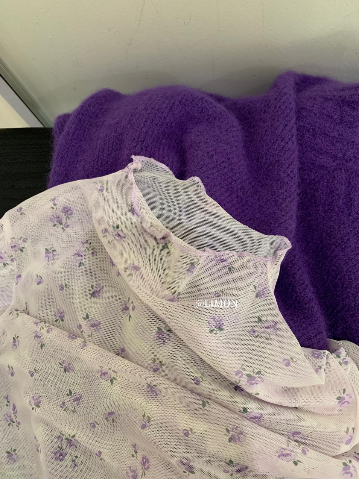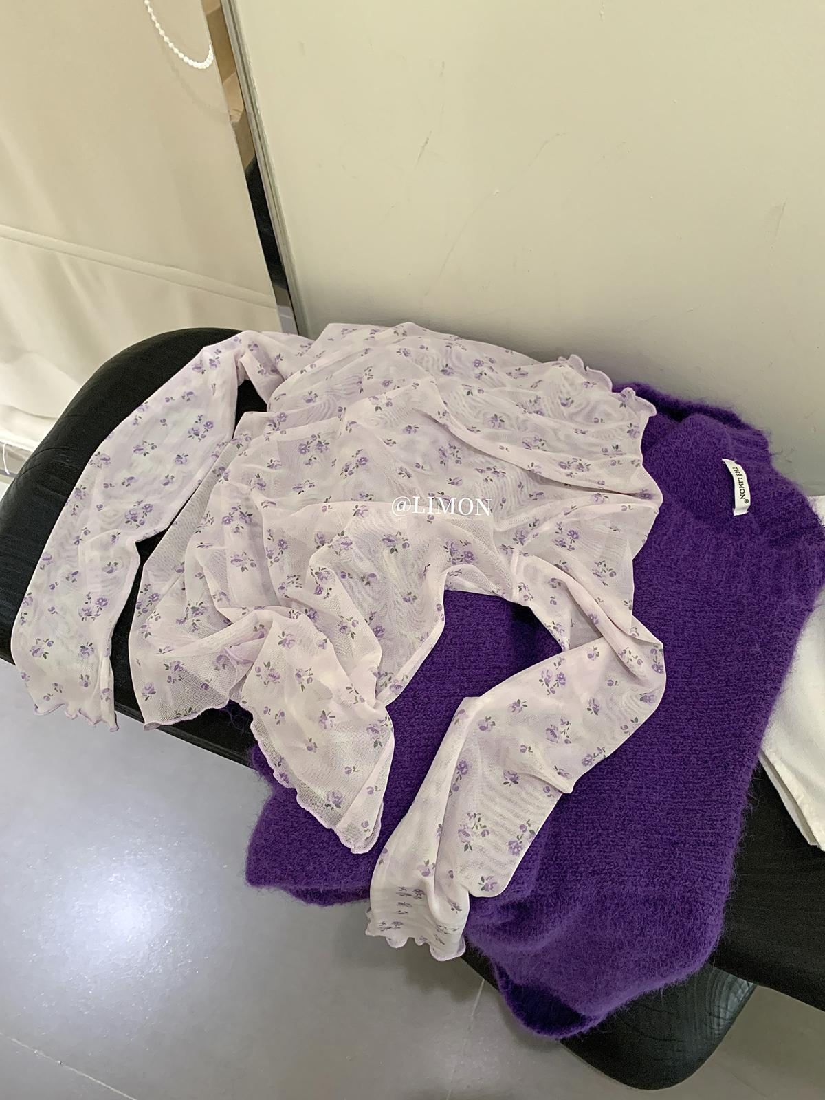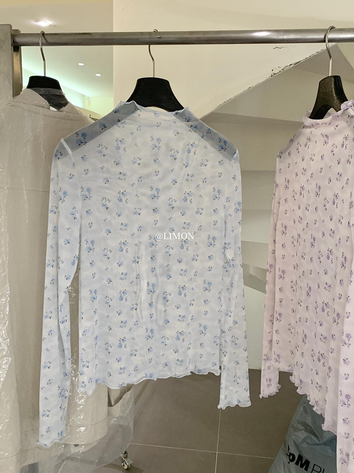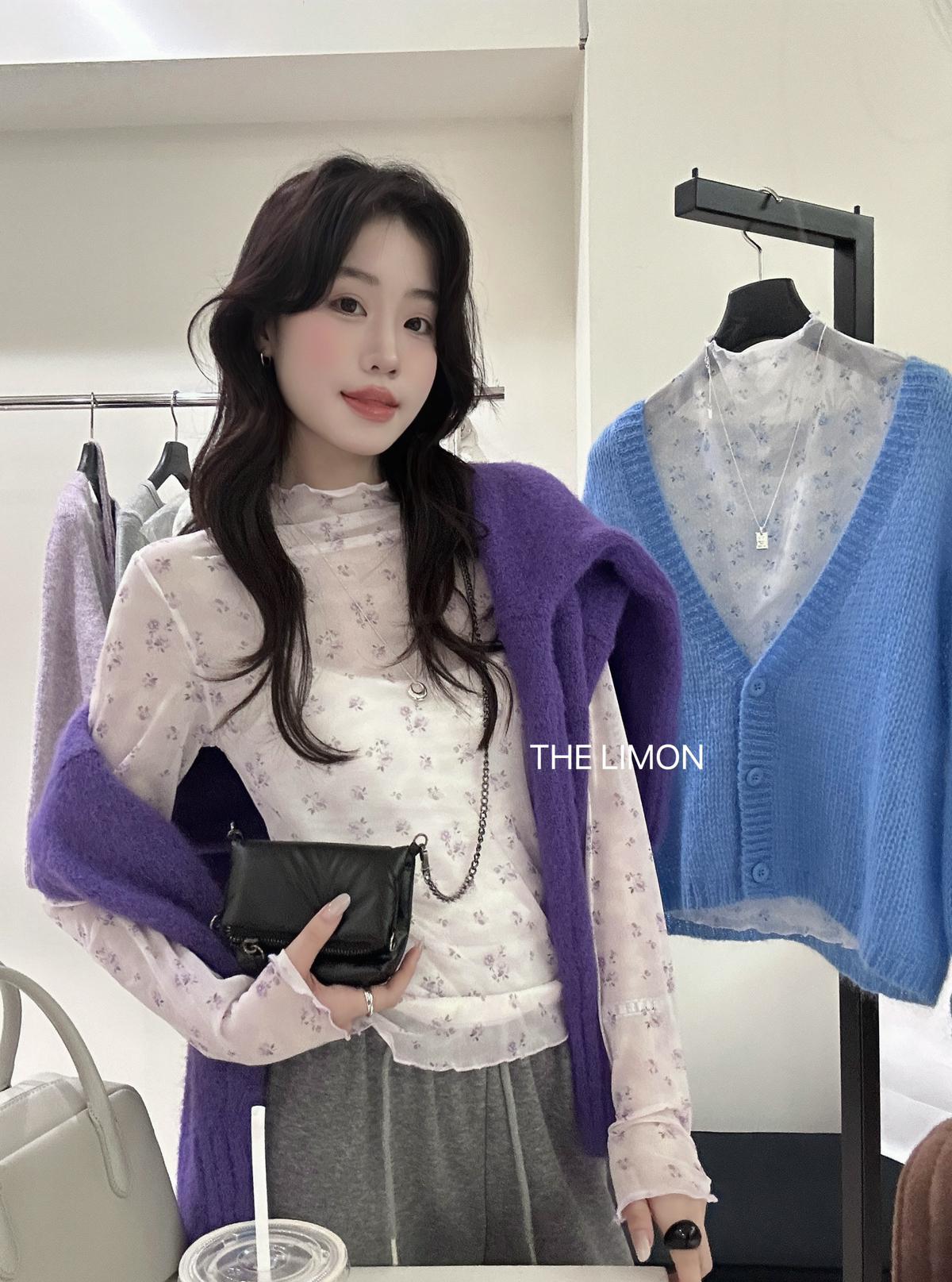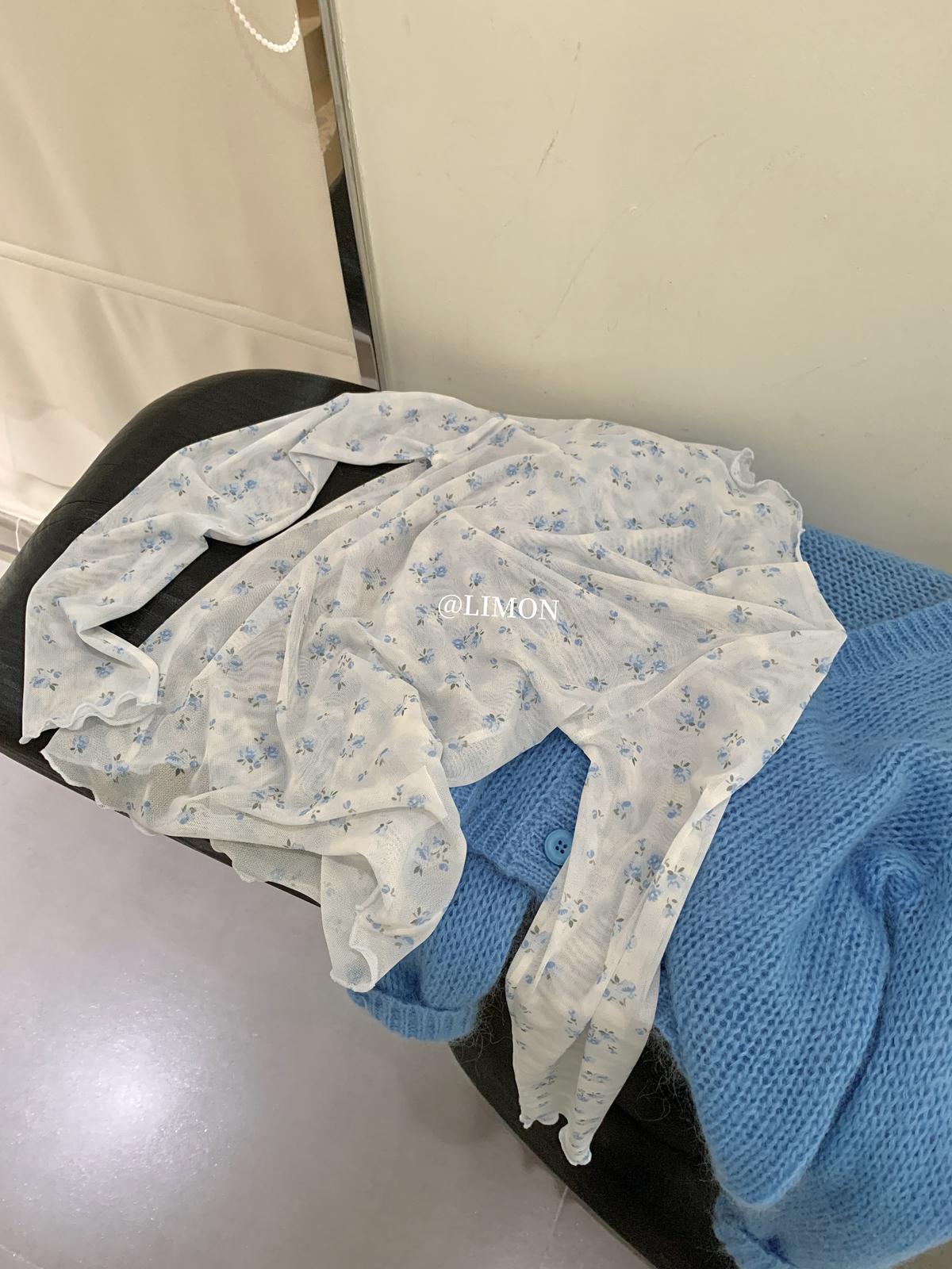 3. 【C7451】韓系疊穿碎花內搭蕾絲洋氣木耳邊小衫