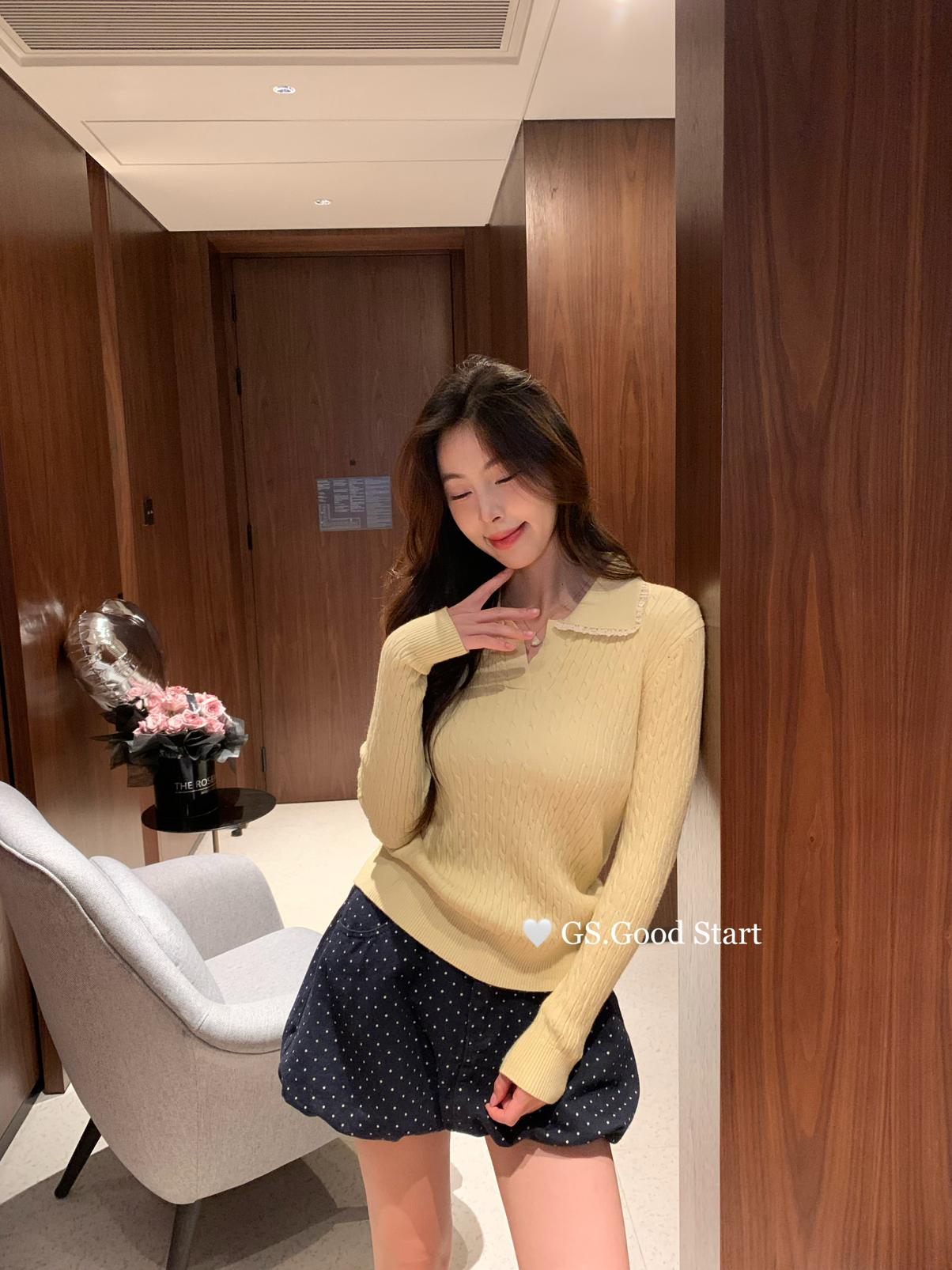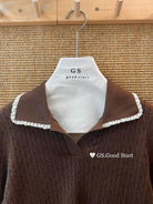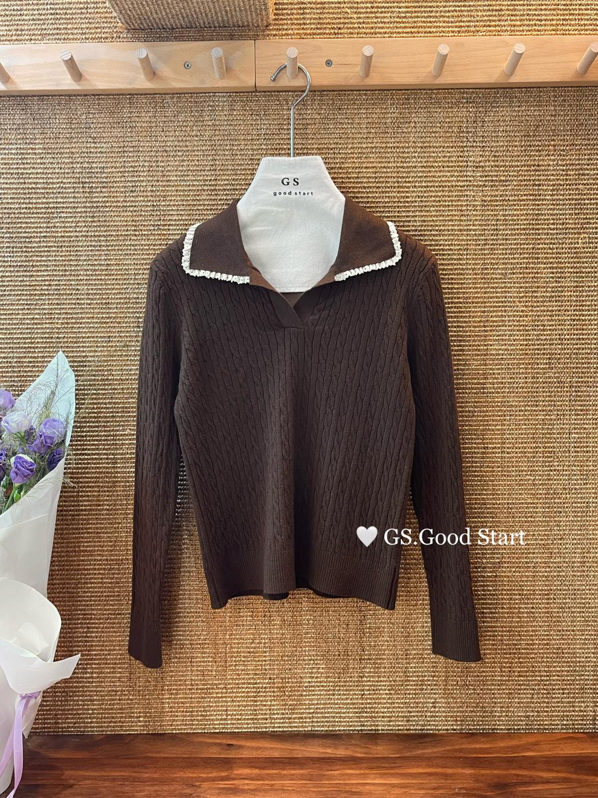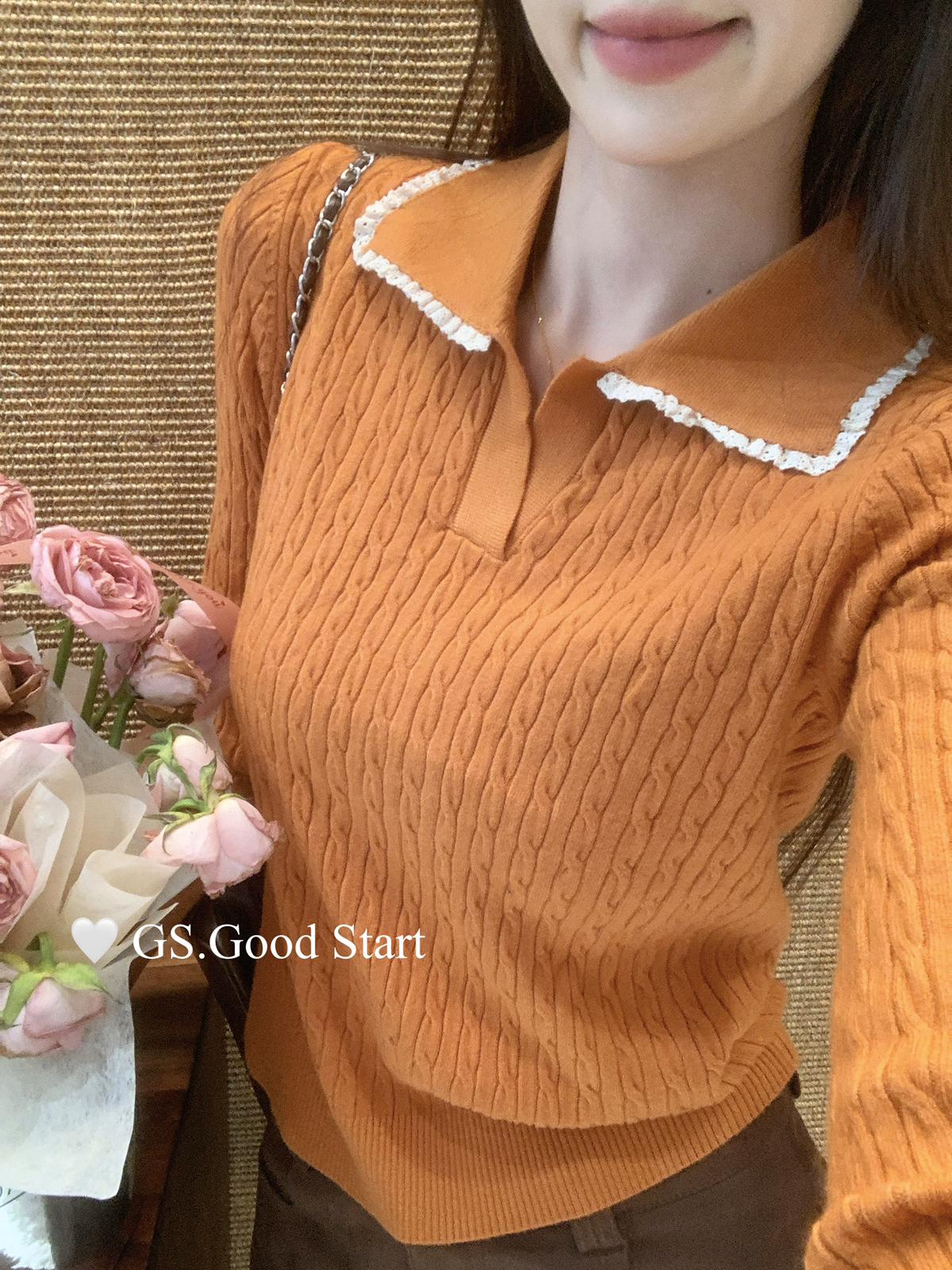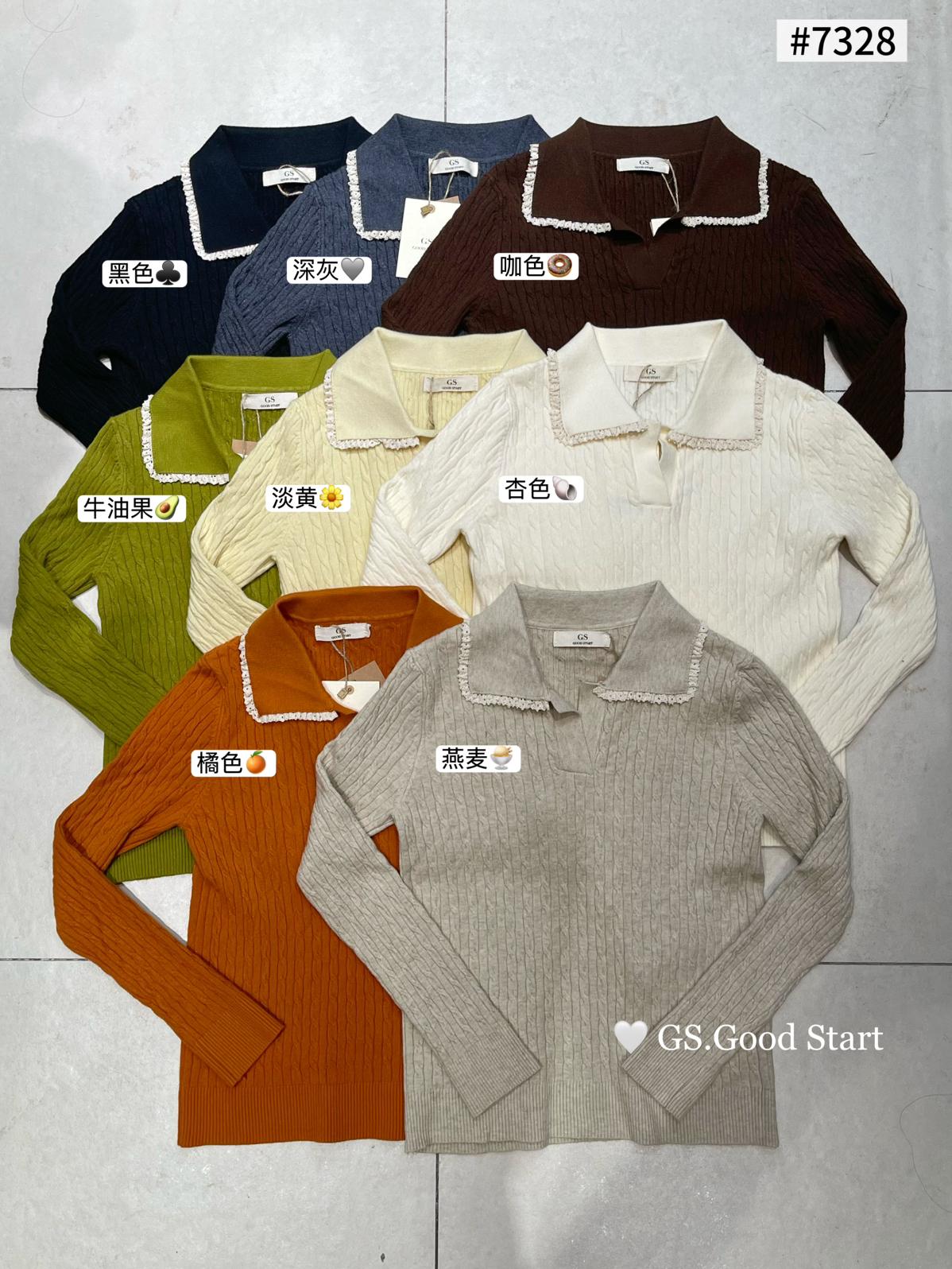 3. 【C7485】多色囤!可以賣很久的款~秋冬氣質甜美花邊撞色休閒Polo針織小衫