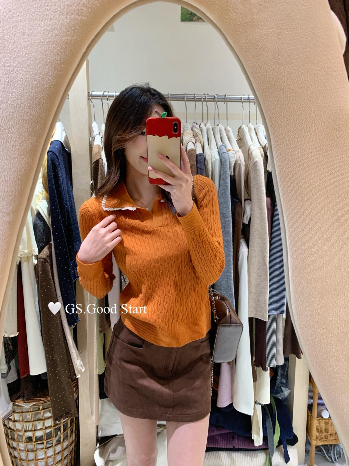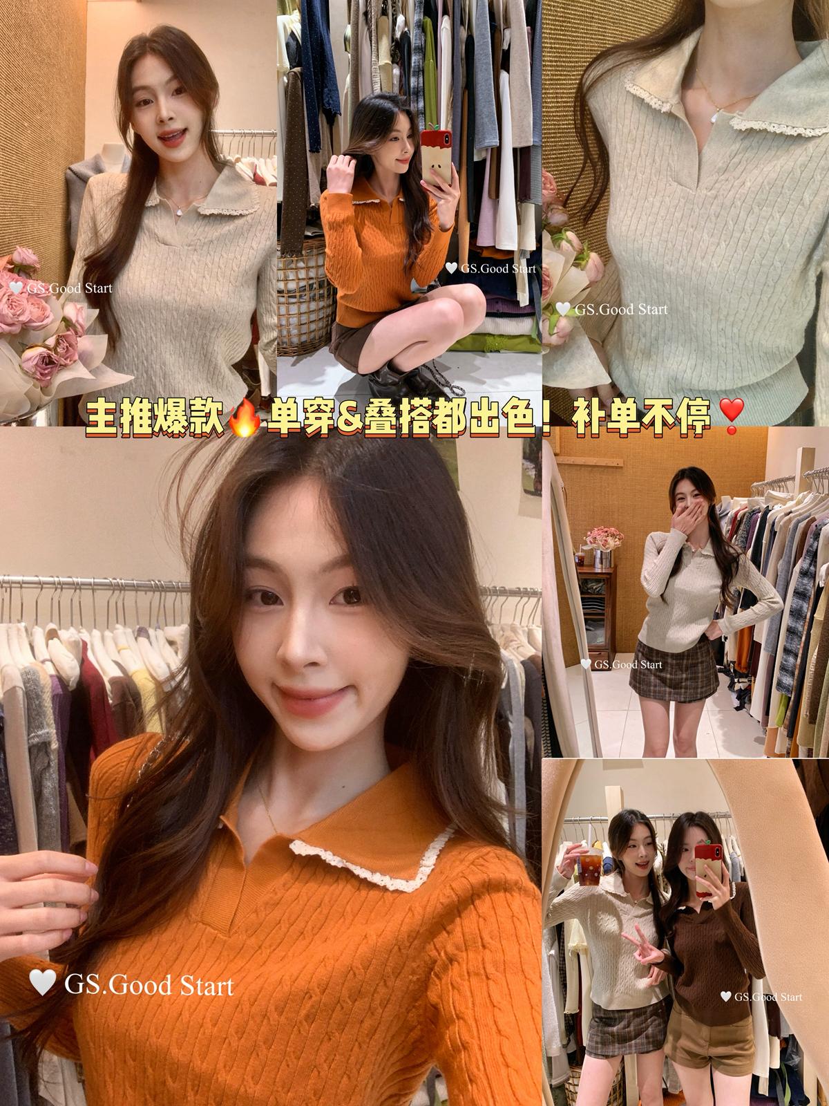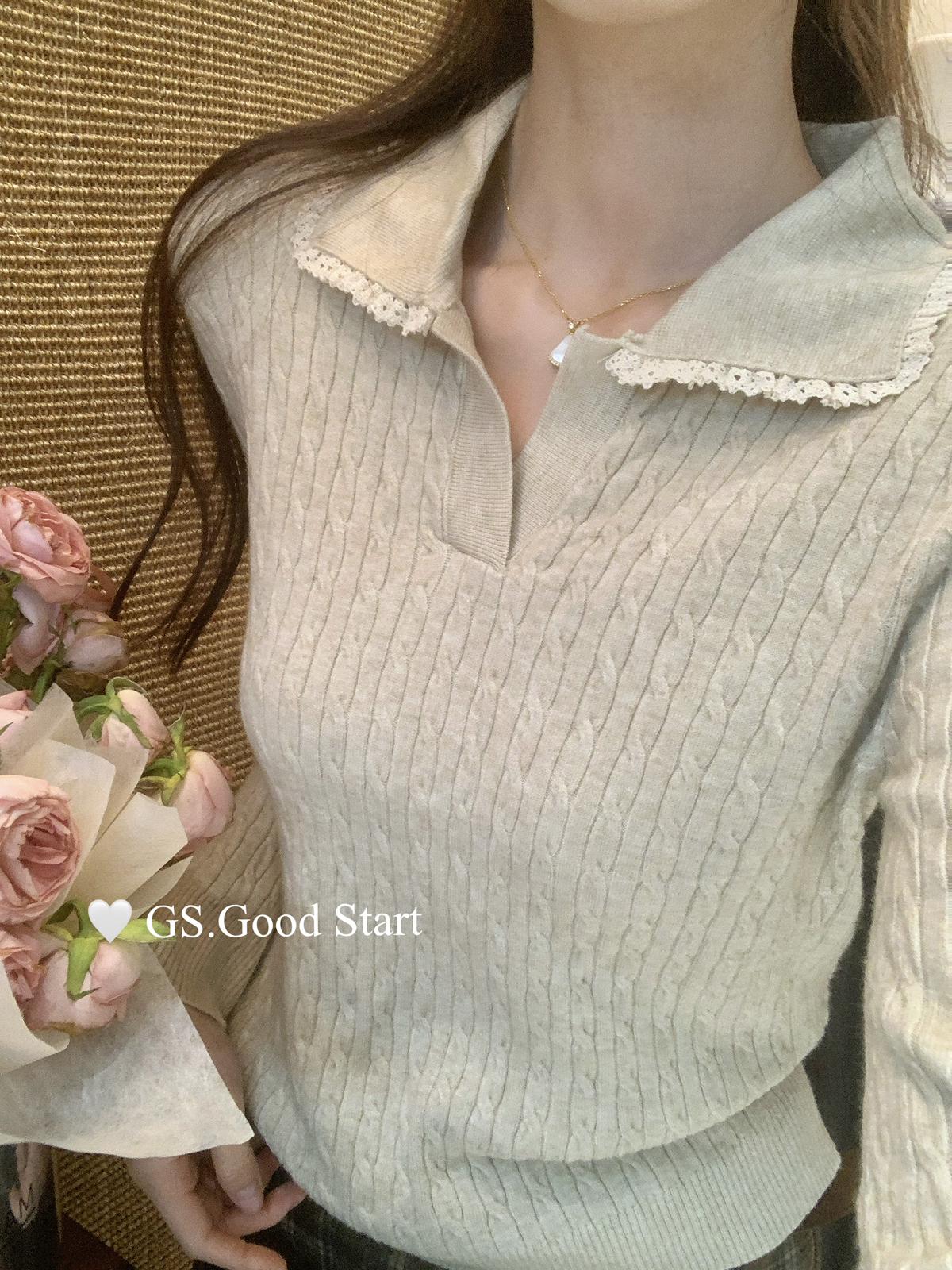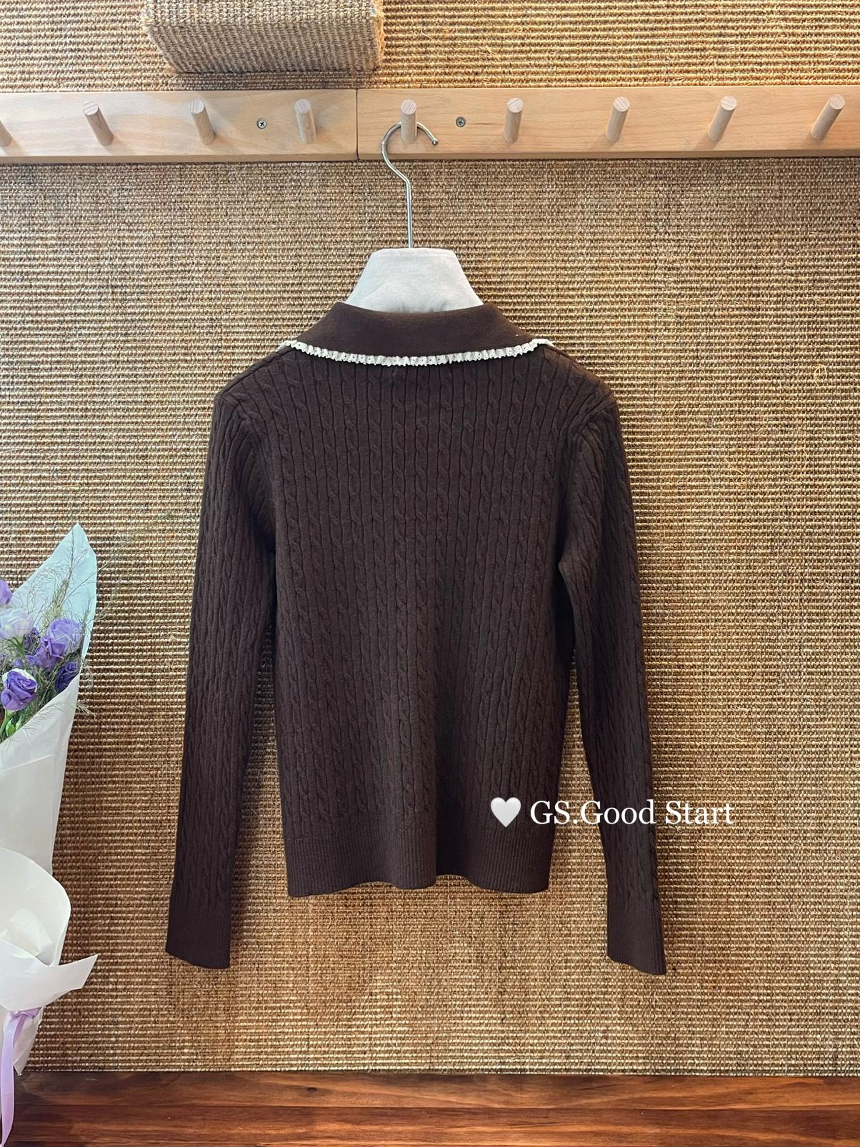 3. 【C7485】多色囤!可以賣很久的款~秋冬氣質甜美花邊撞色休閒Polo針織小衫