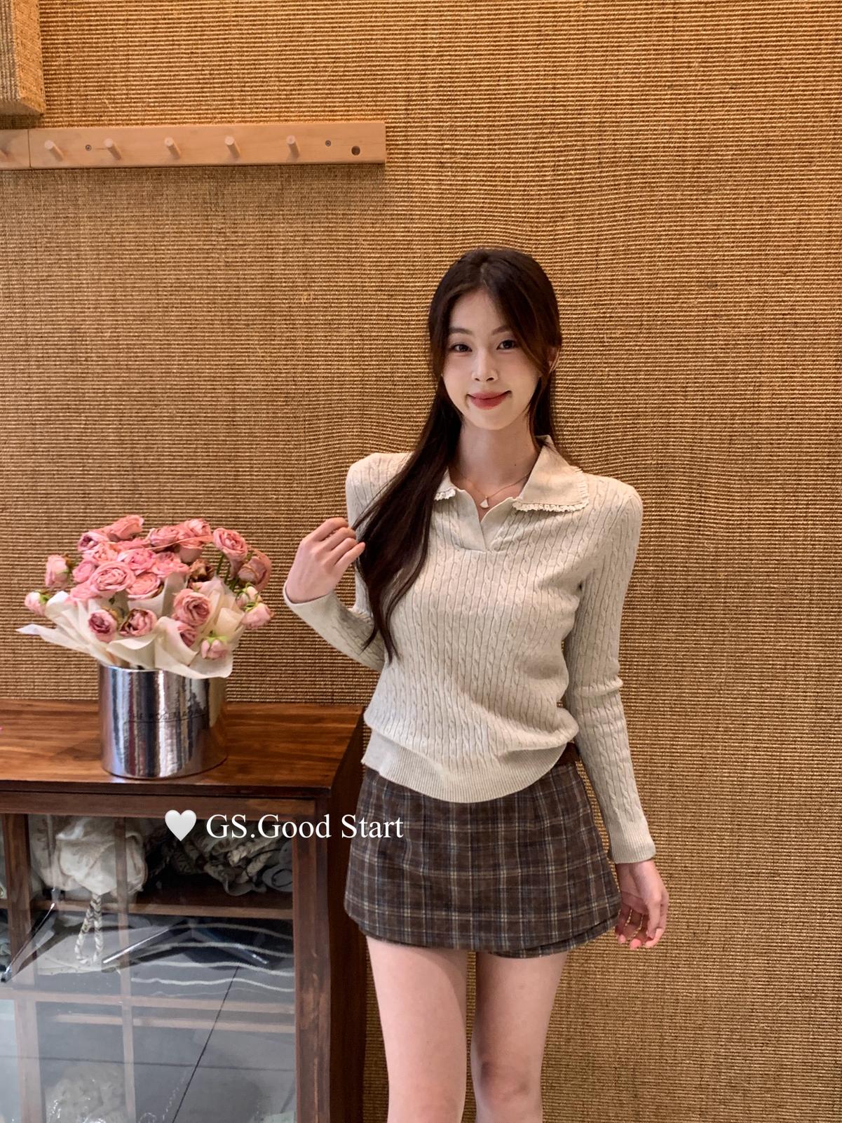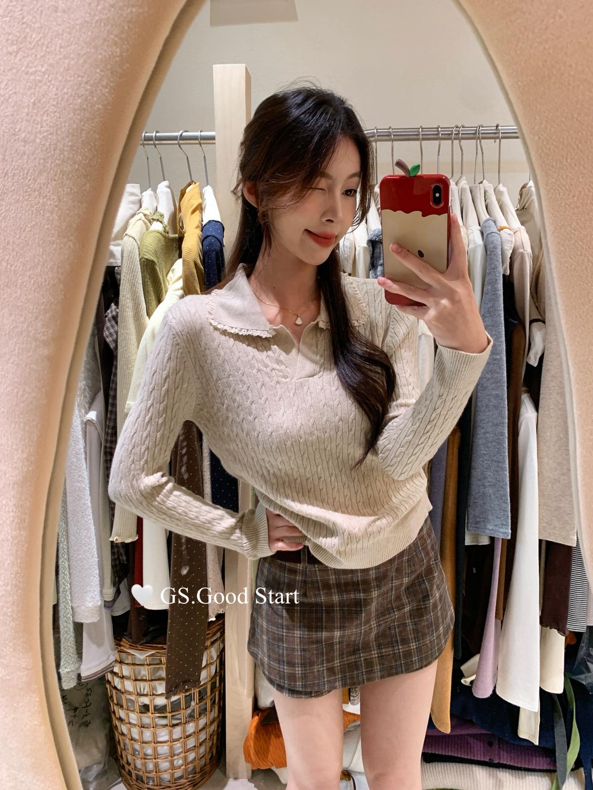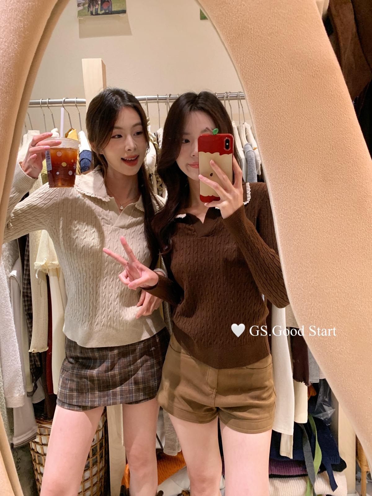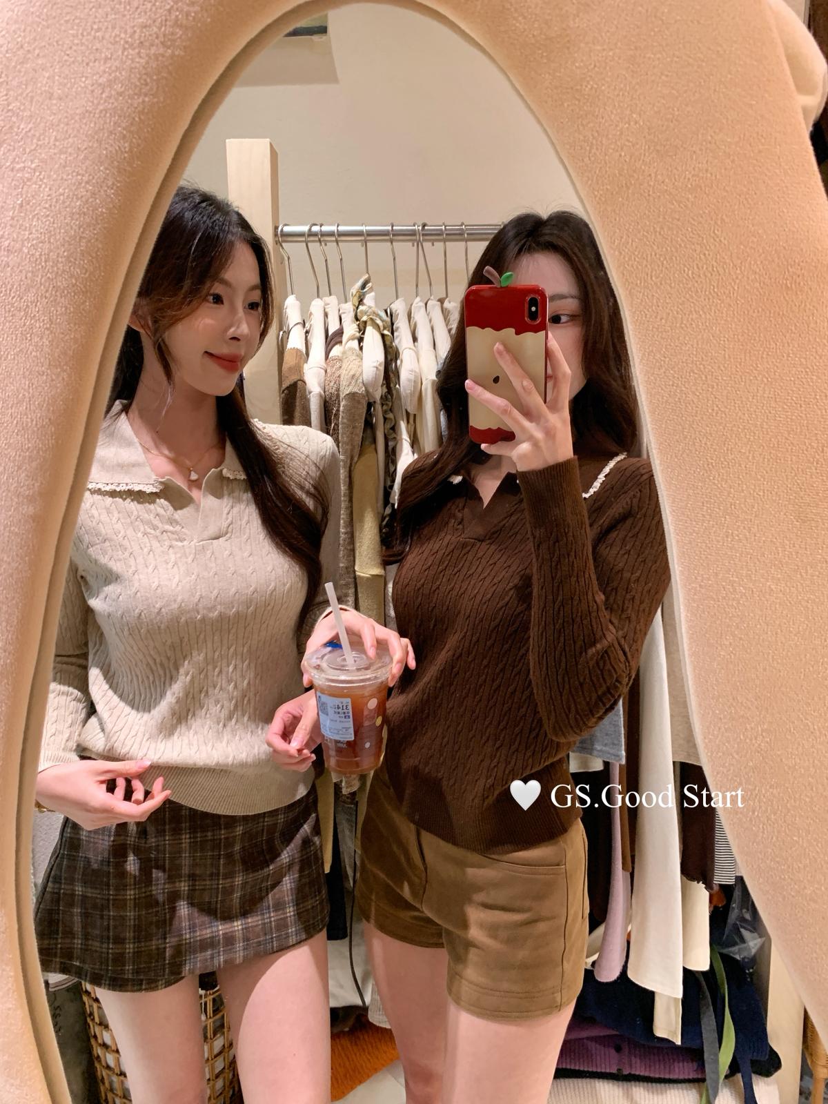 3. 【C7485】多色囤!可以賣很久的款~秋冬氣質甜美花邊撞色休閒Polo針織小衫