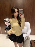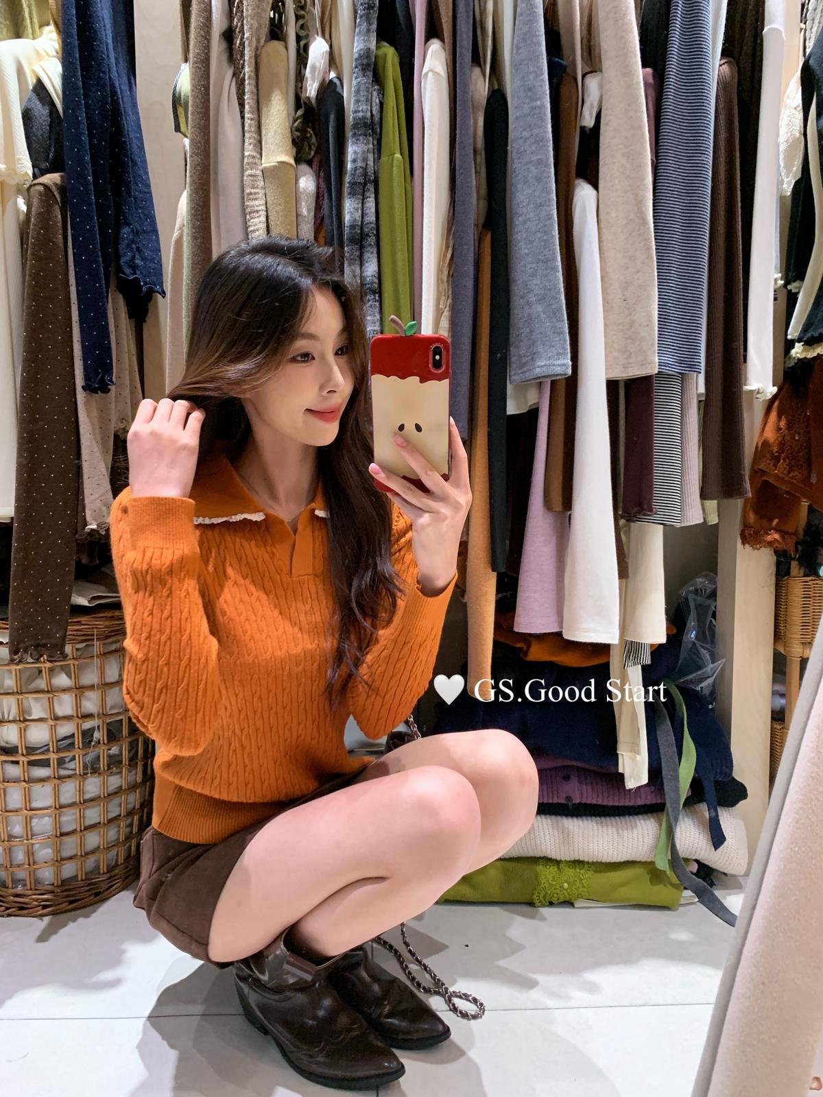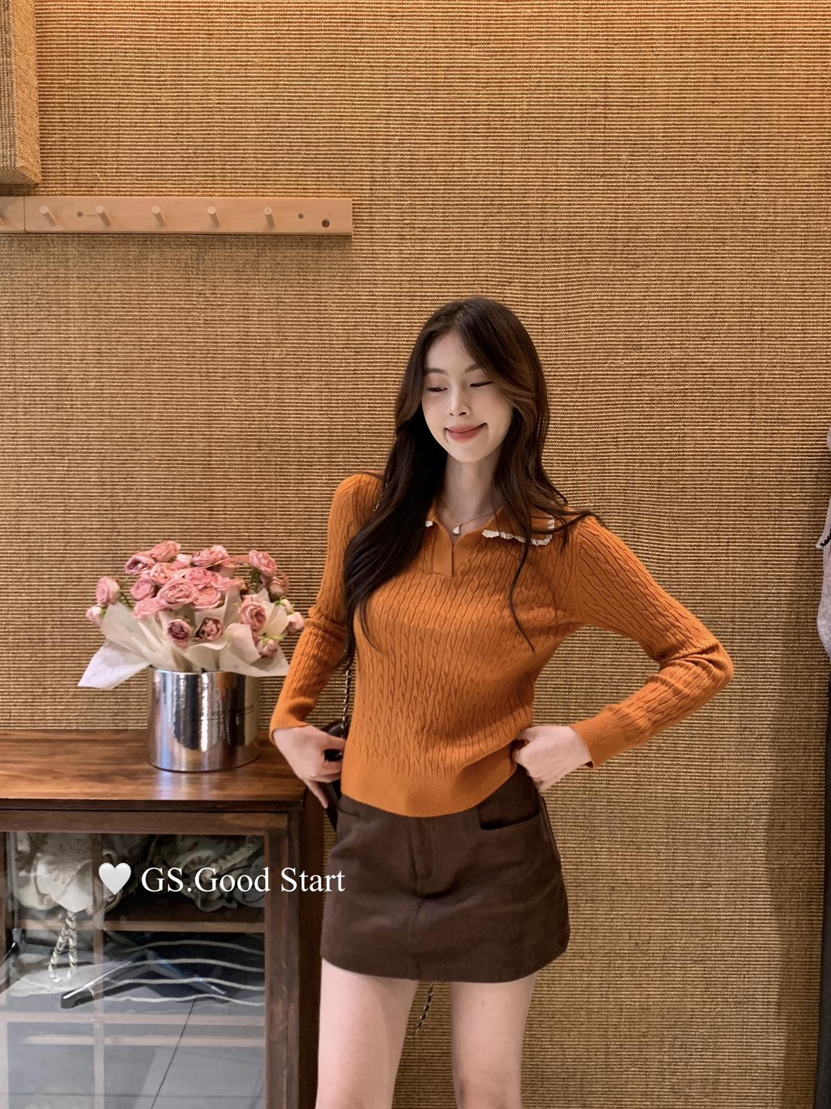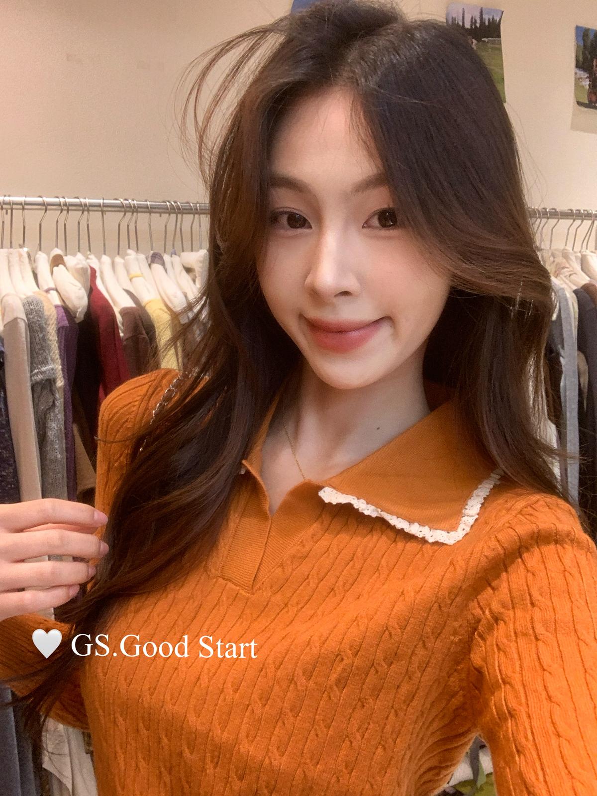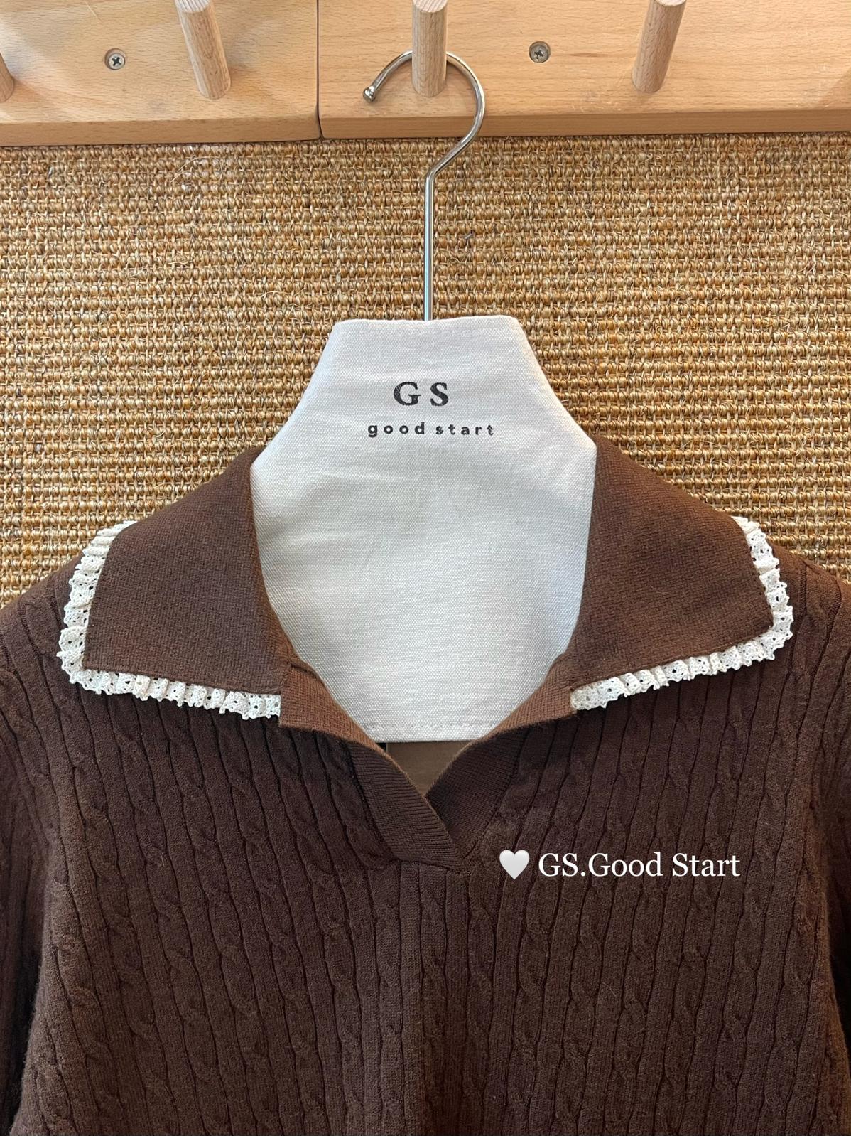 3. 【C7485】多色囤!可以賣很久的款~秋冬氣質甜美花邊撞色休閒Polo針織小衫