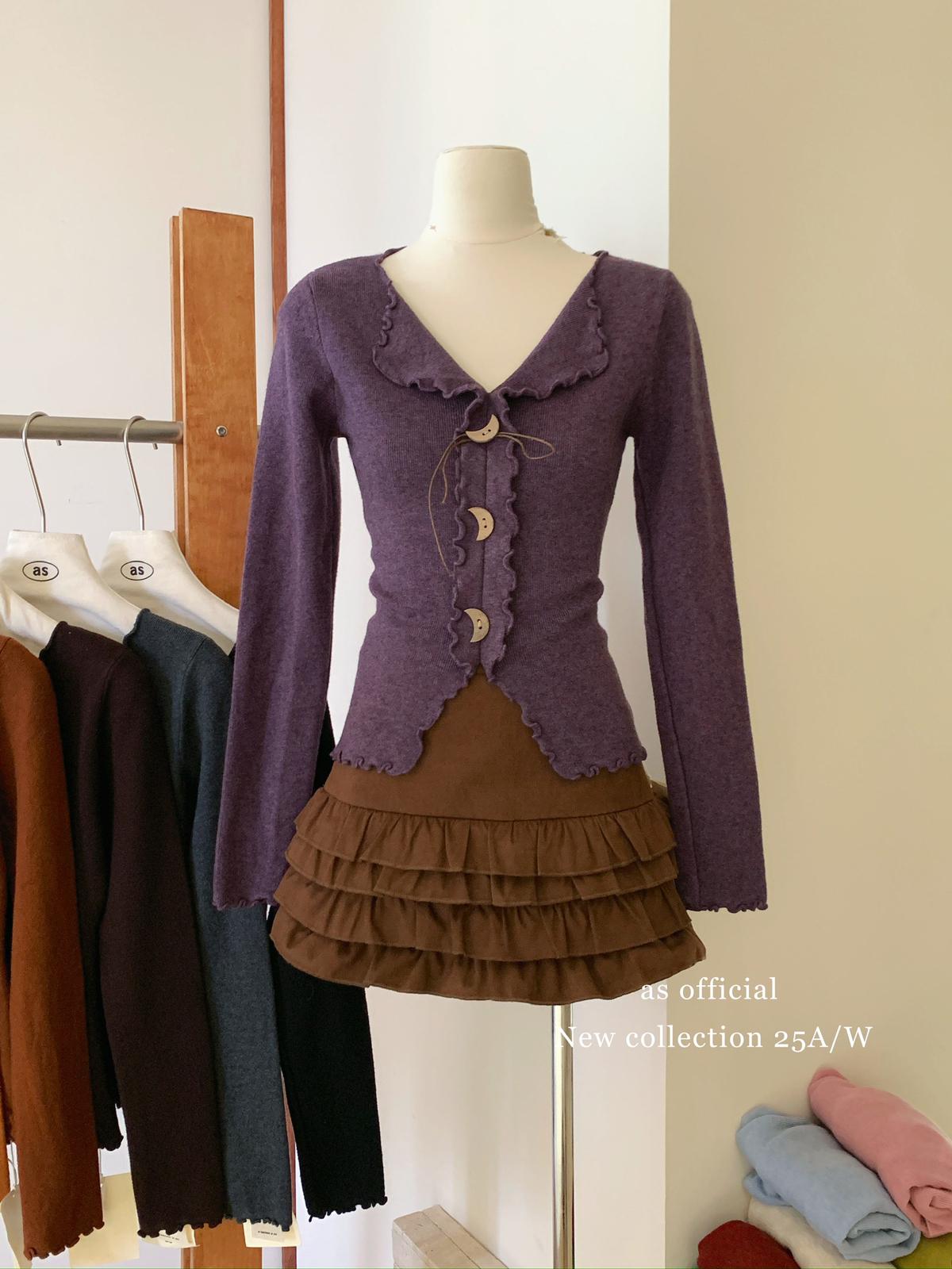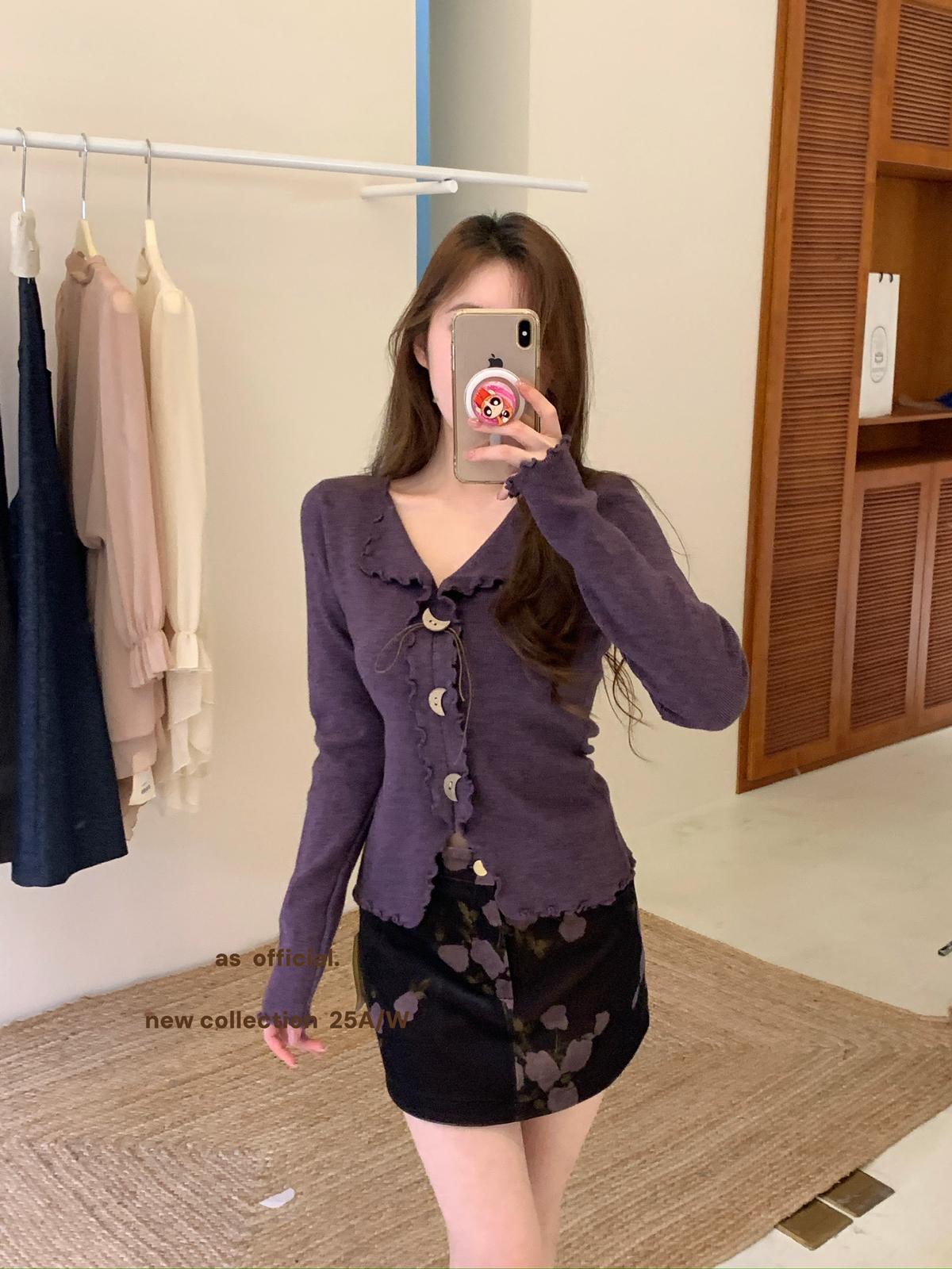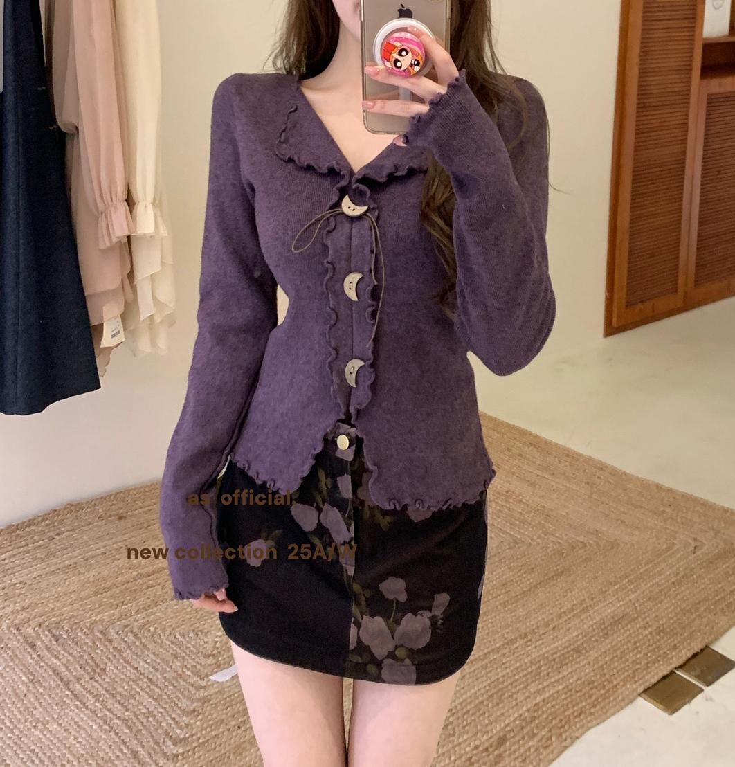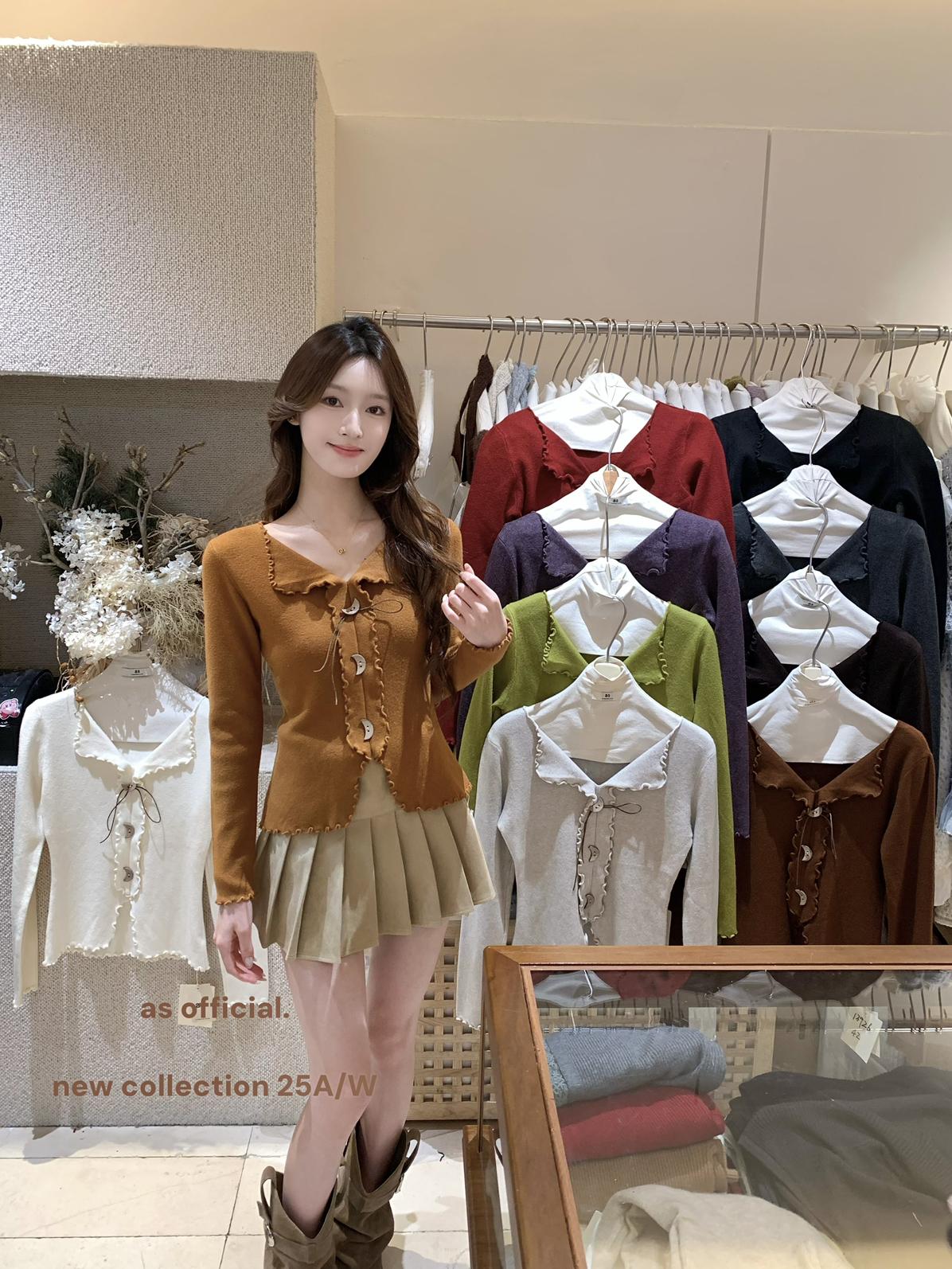 【C7491】本期黑馬!加色返場~顯瘦神器·不規則木耳邊V領針織衫