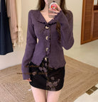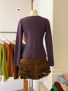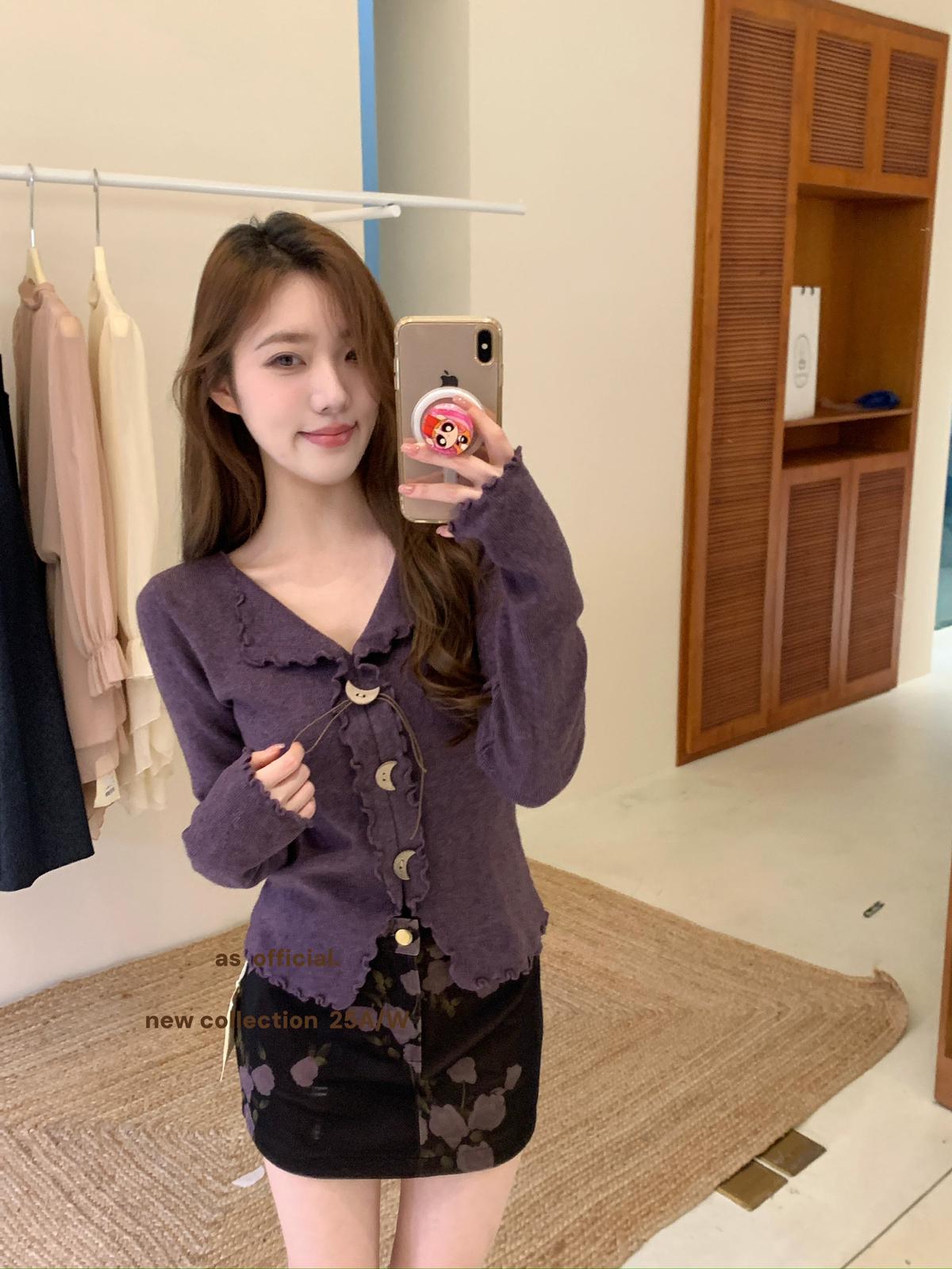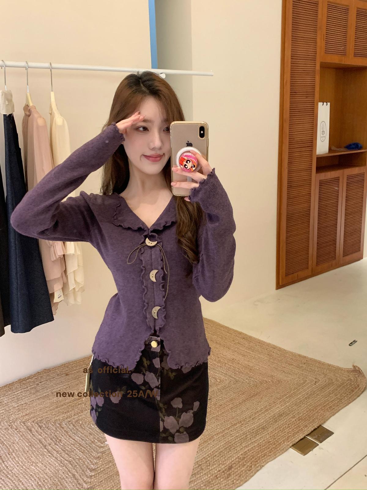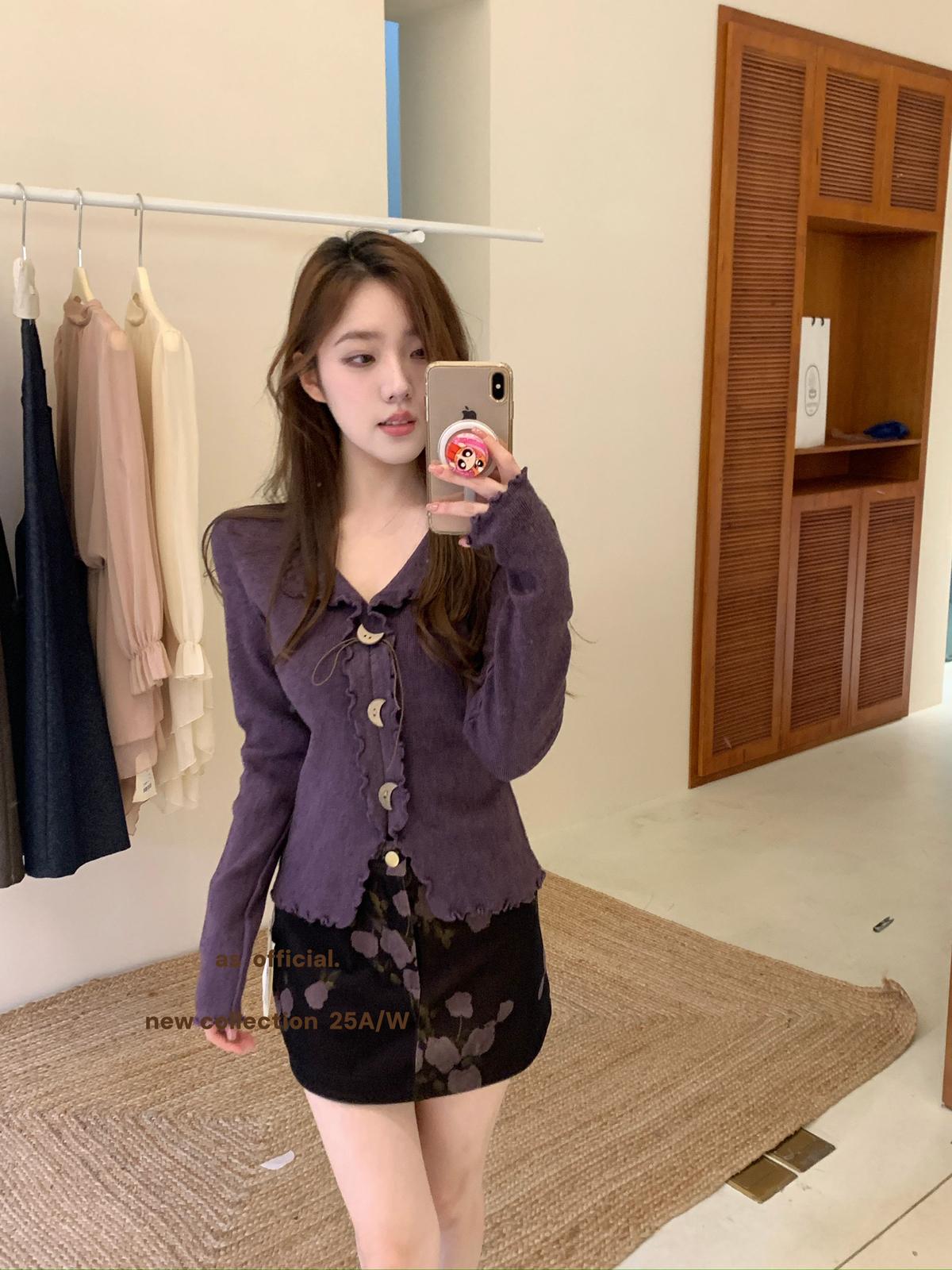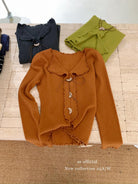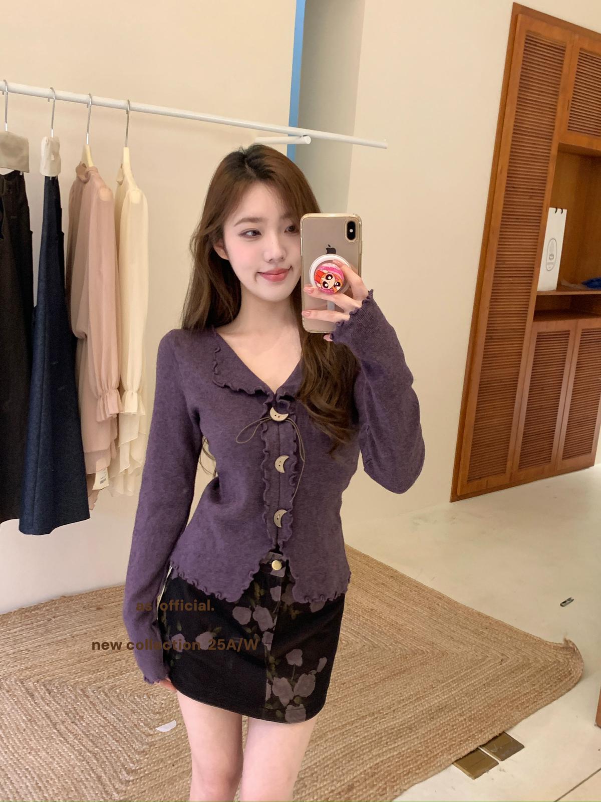 【C7491】本期黑馬!加色返場~顯瘦神器·不規則木耳邊V領針織衫