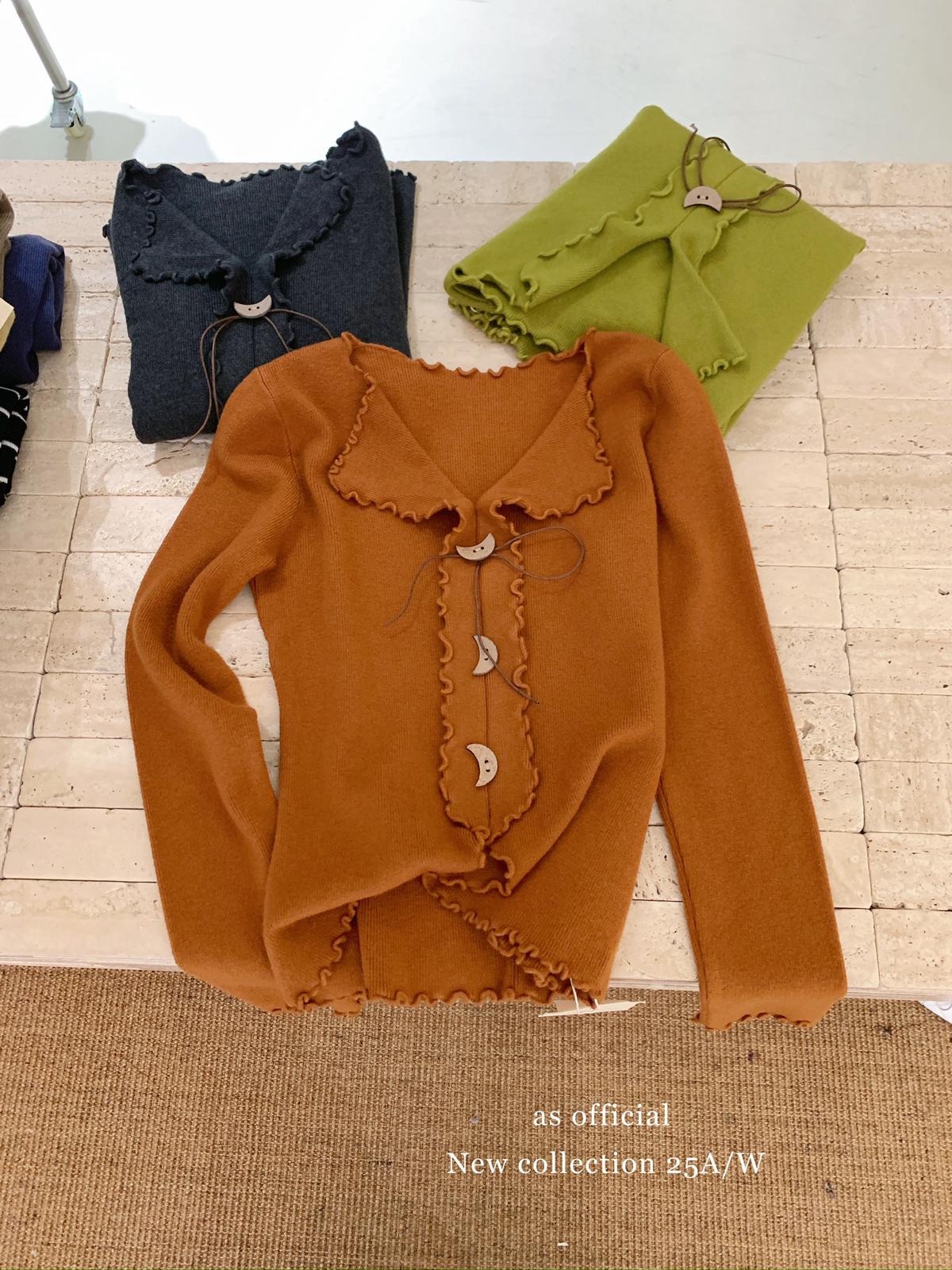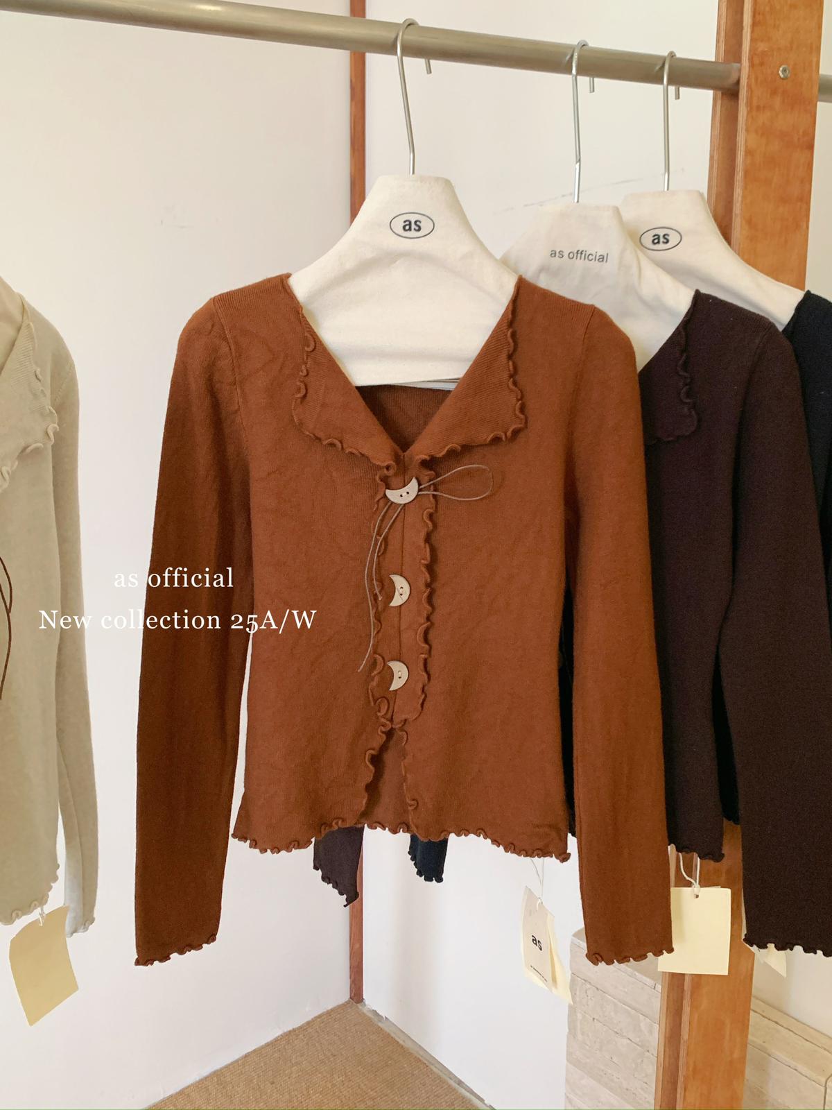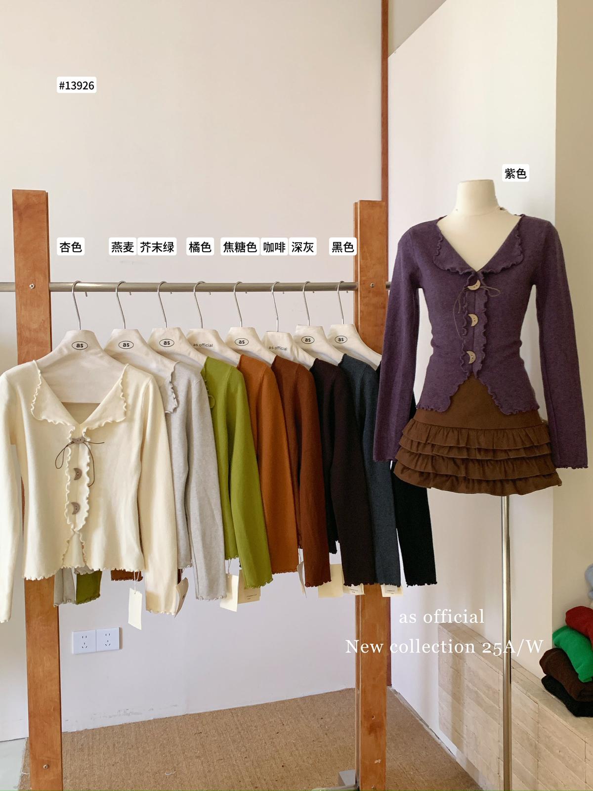 3. 【C7491】本期黑馬!加色返場~顯瘦神器·不規則木耳邊V領針織衫