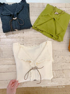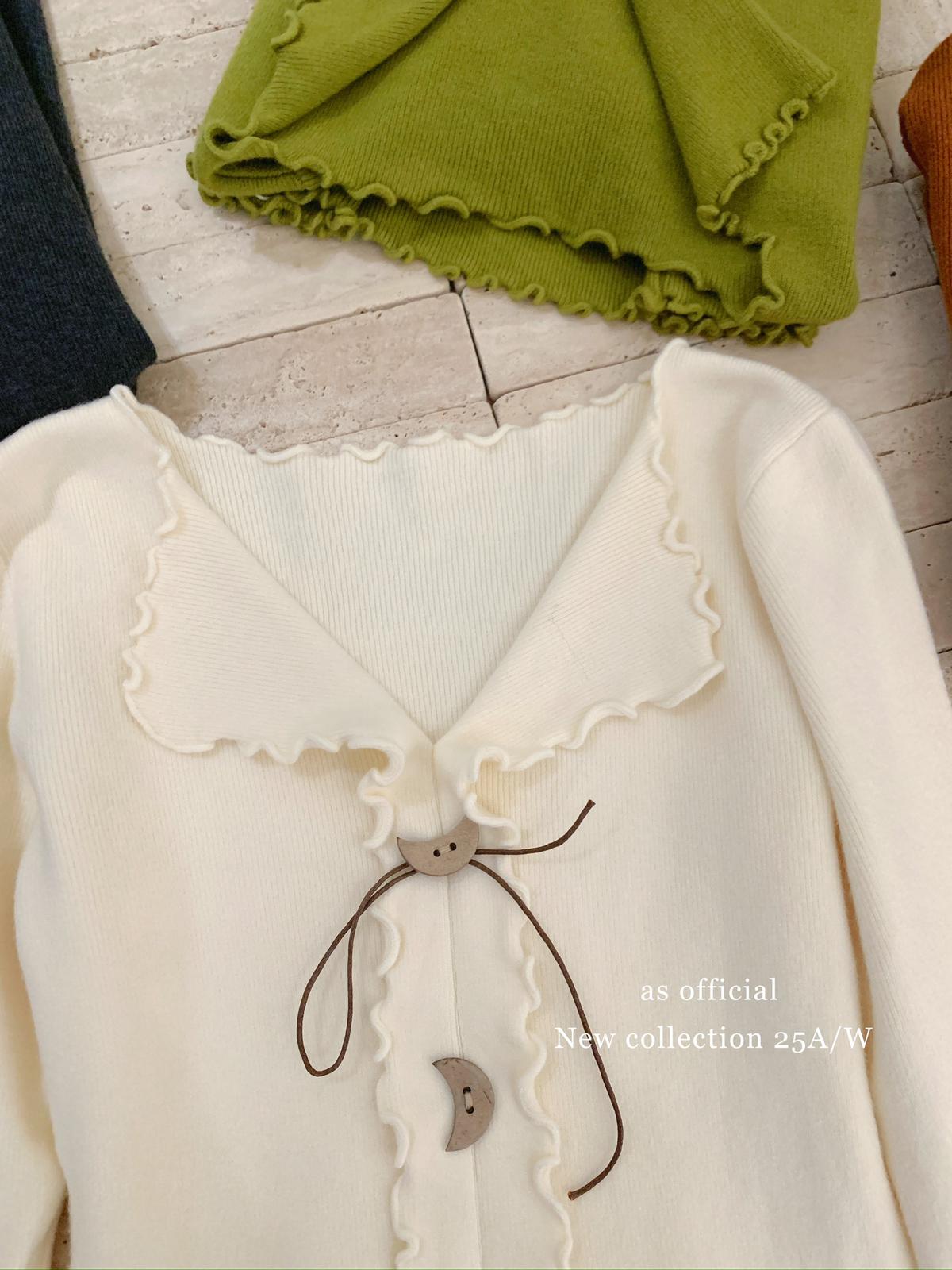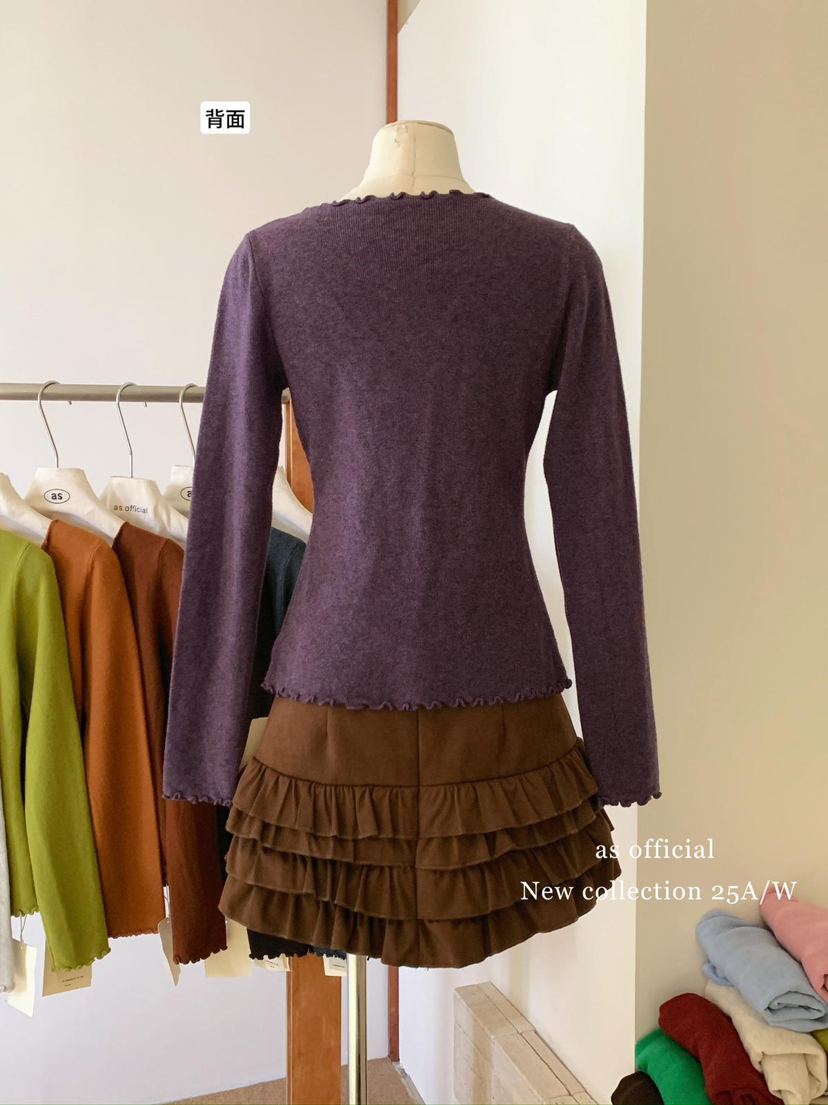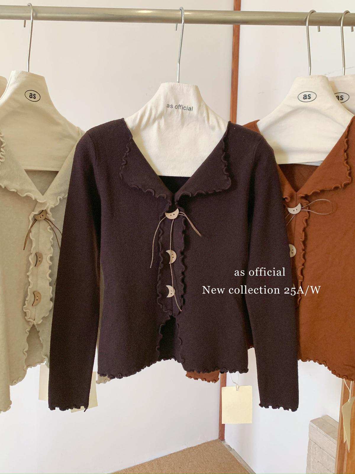 3. 【C7491】本期黑馬!加色返場~顯瘦神器·不規則木耳邊V領針織衫