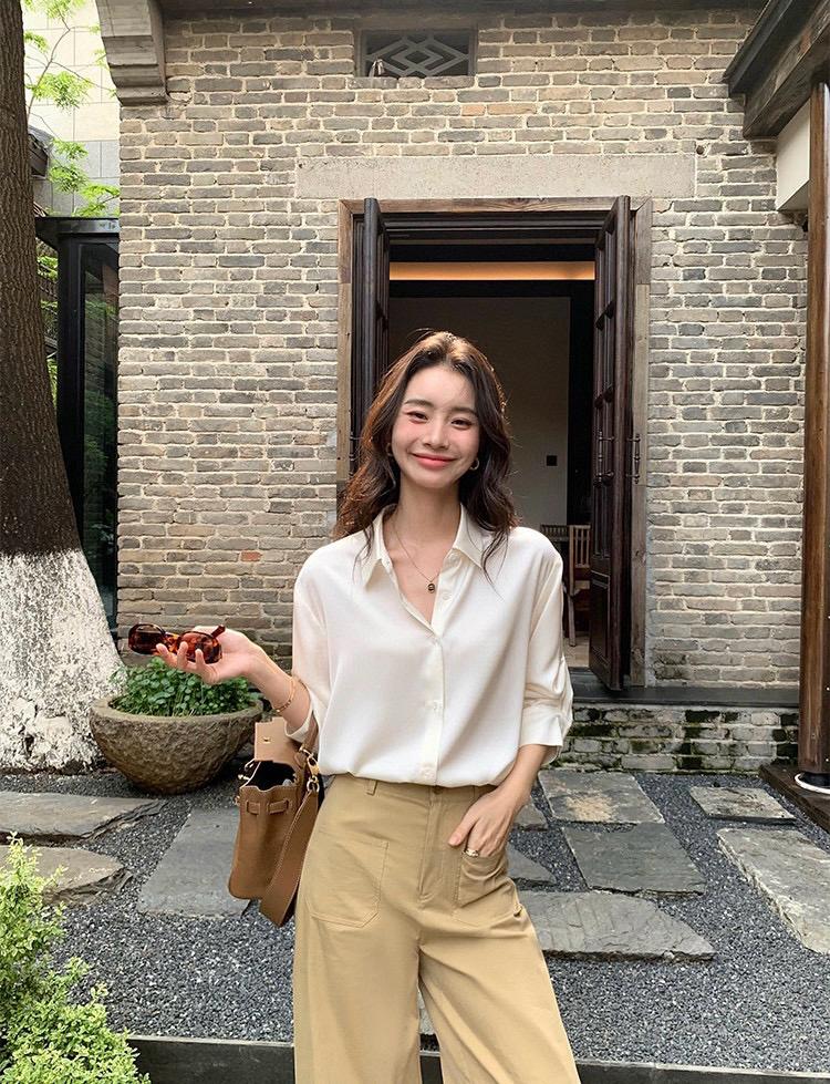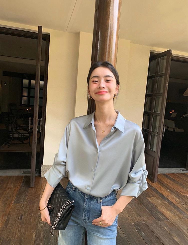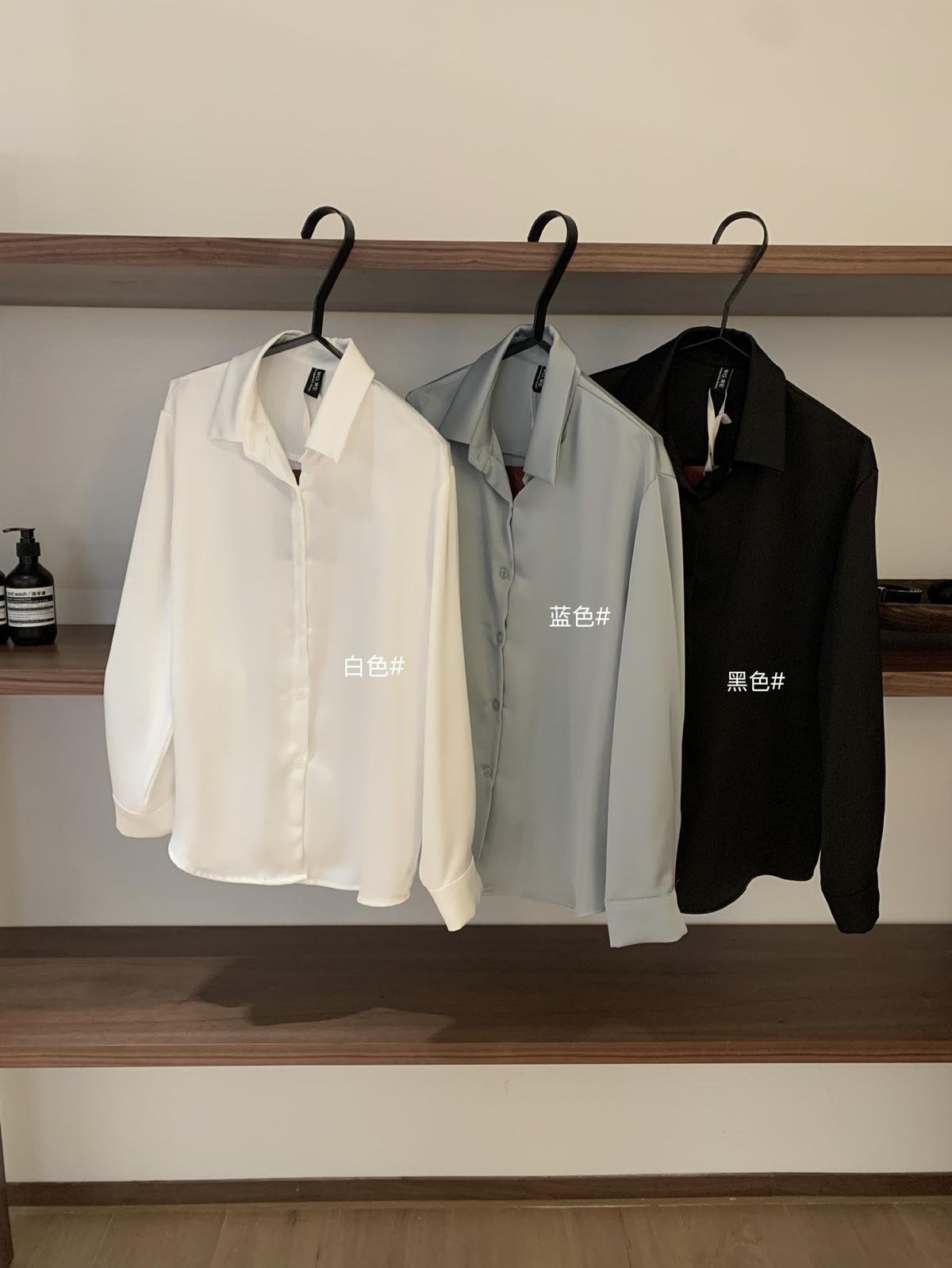 3. 【C7501】輕奢高級感綢緞光澤感寬鬆長袖氣質上衣襯衫