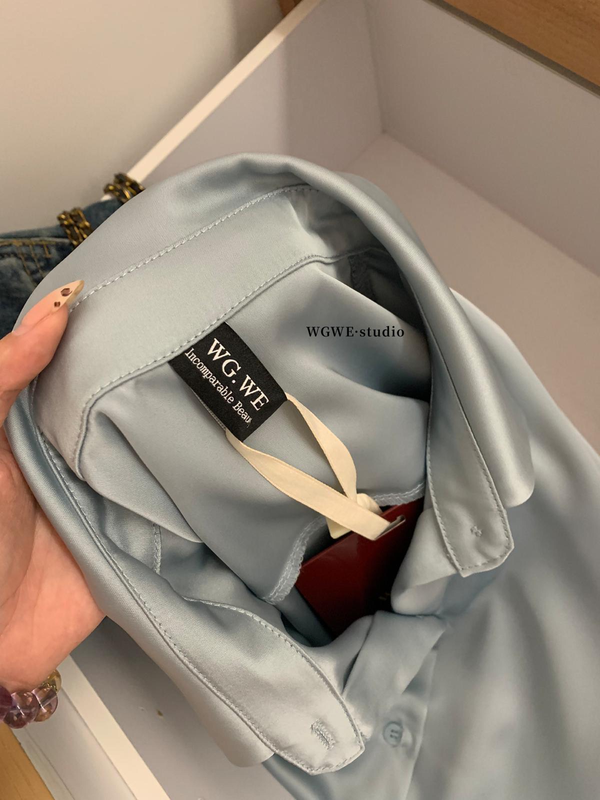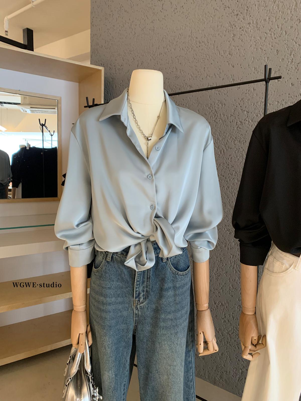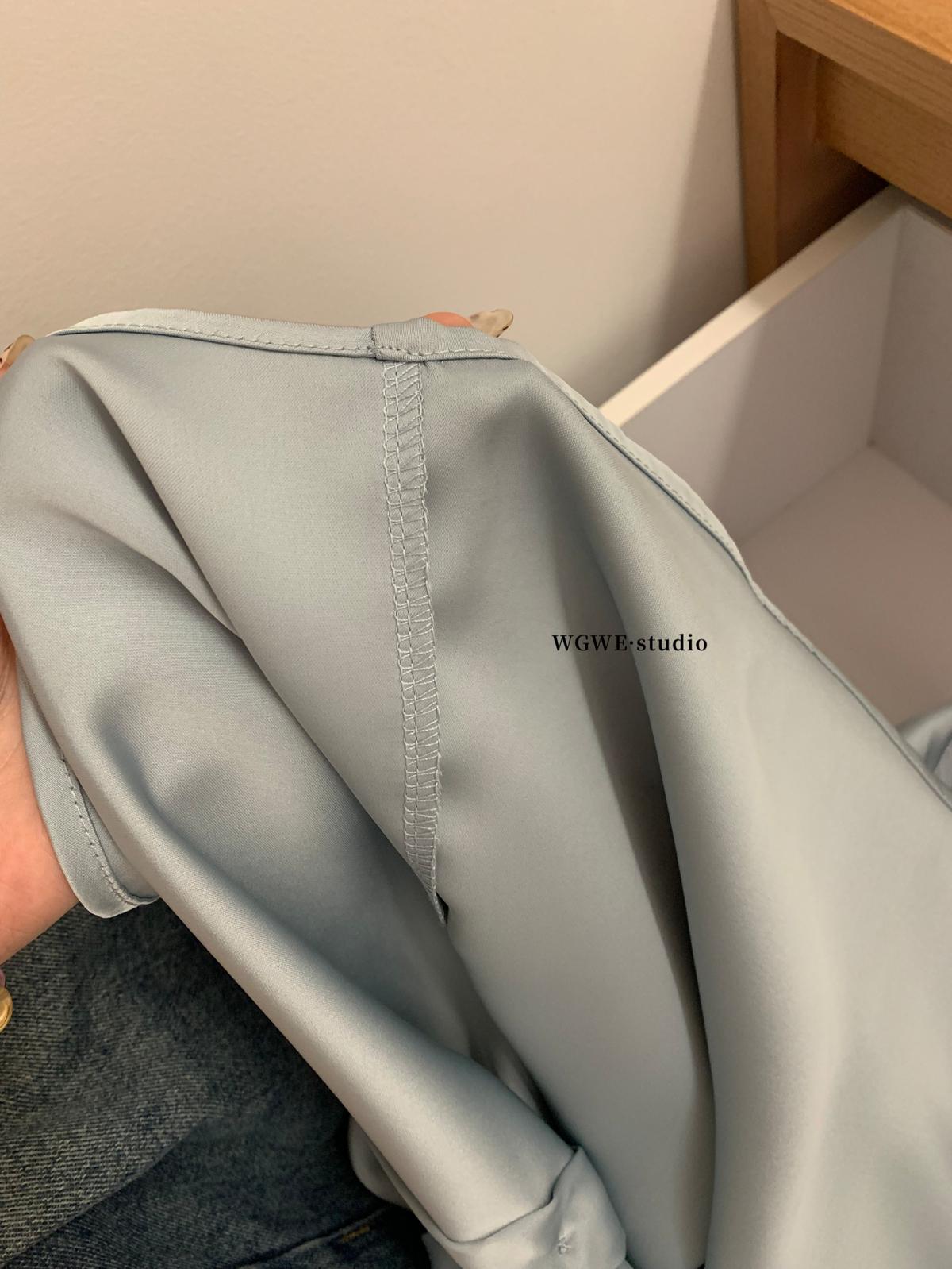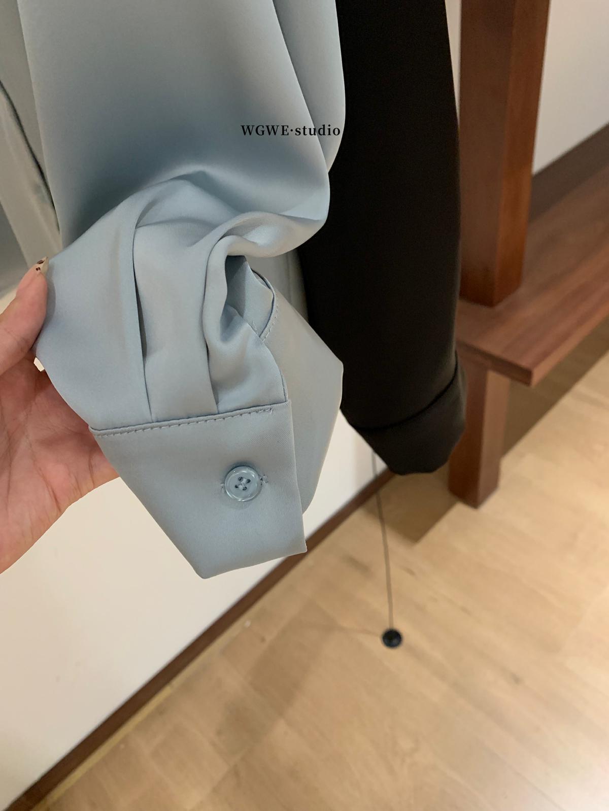 【C7501】輕奢高級感綢緞光澤感寬鬆長袖氣質上衣襯衫
