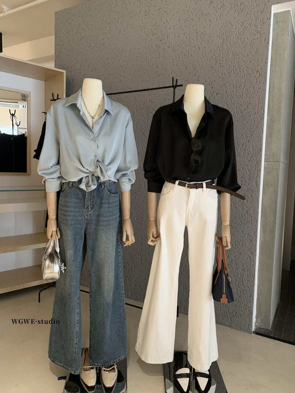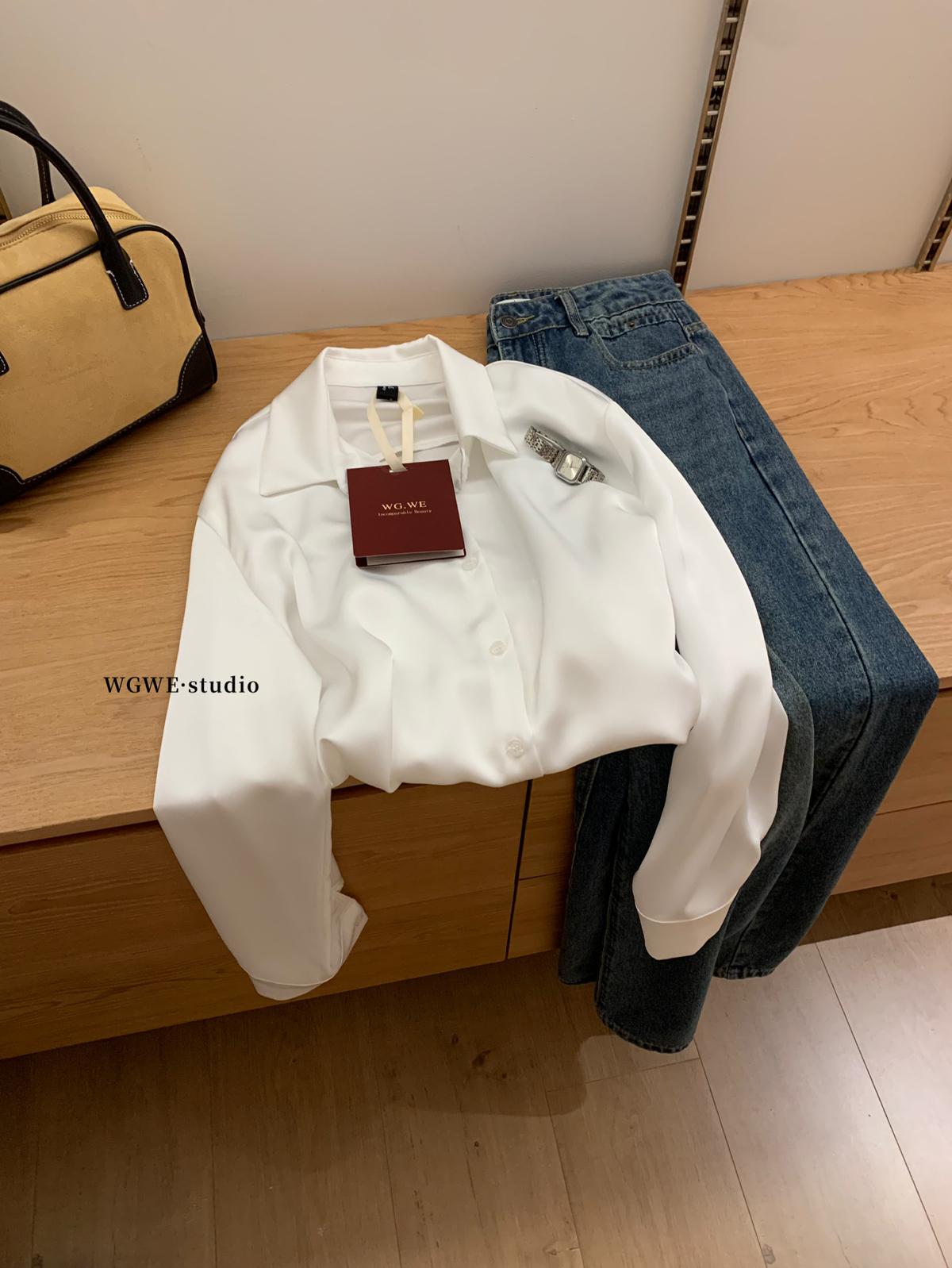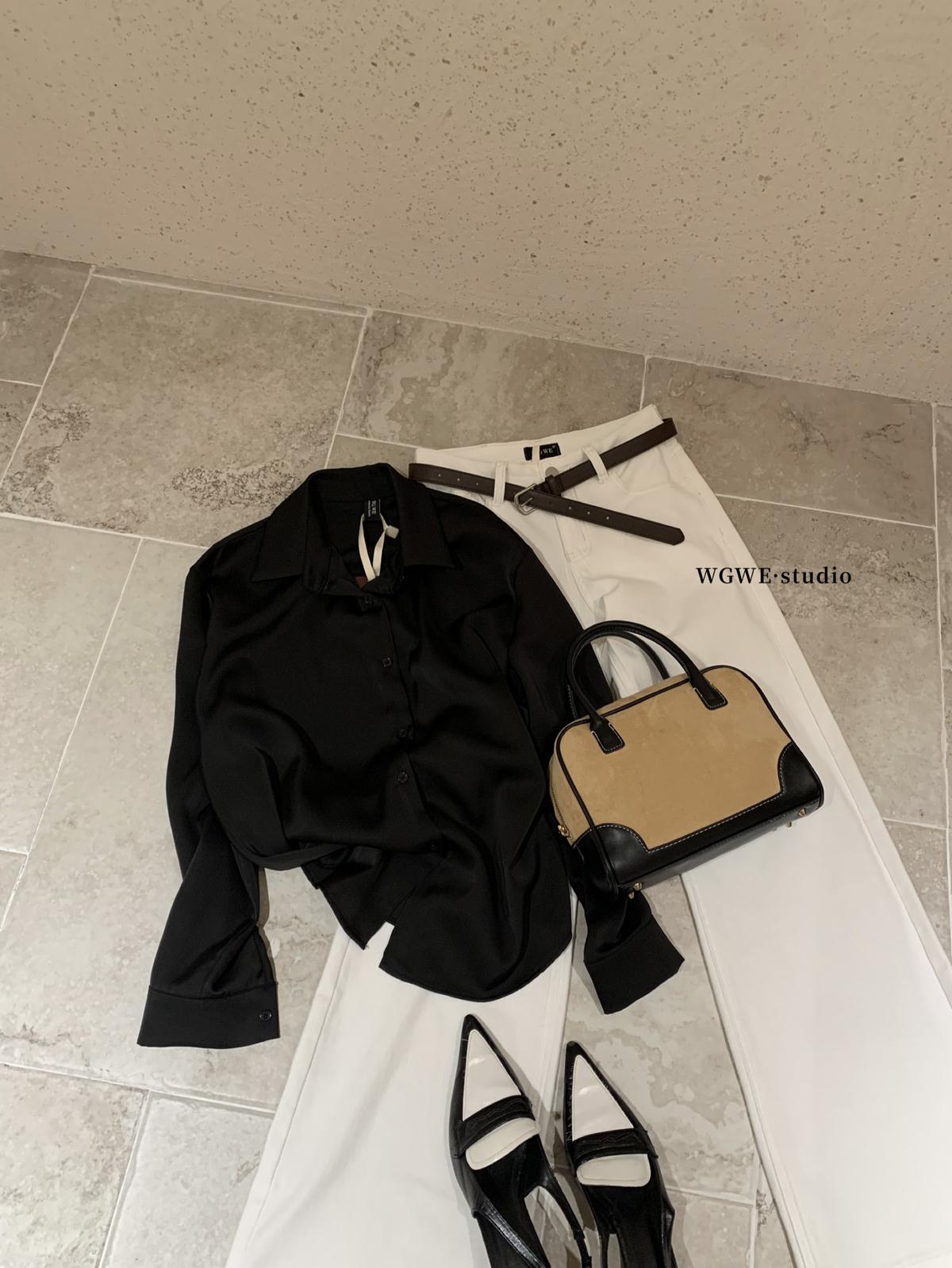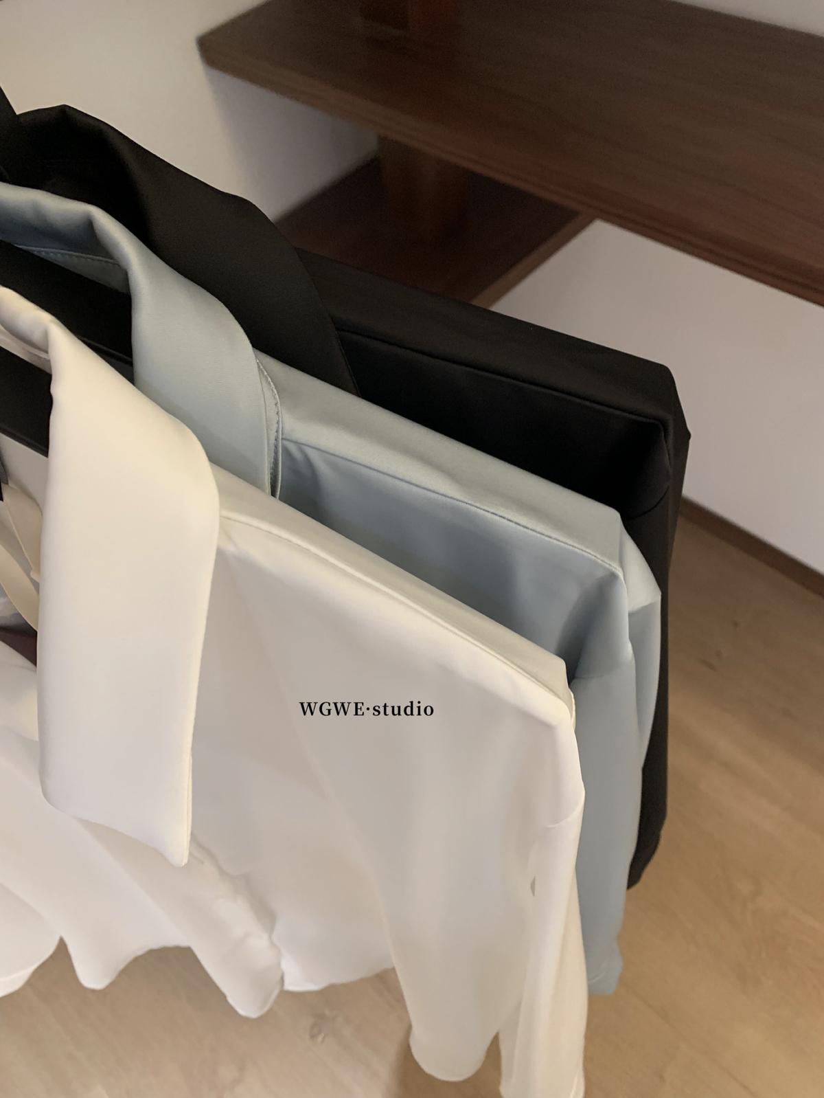 【C7501】輕奢高級感綢緞光澤感寬鬆長袖氣質上衣襯衫
