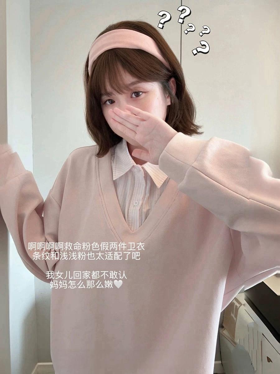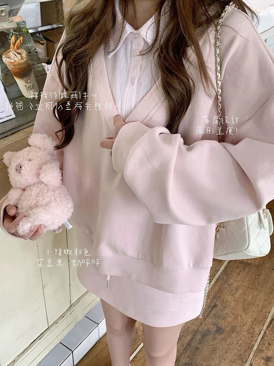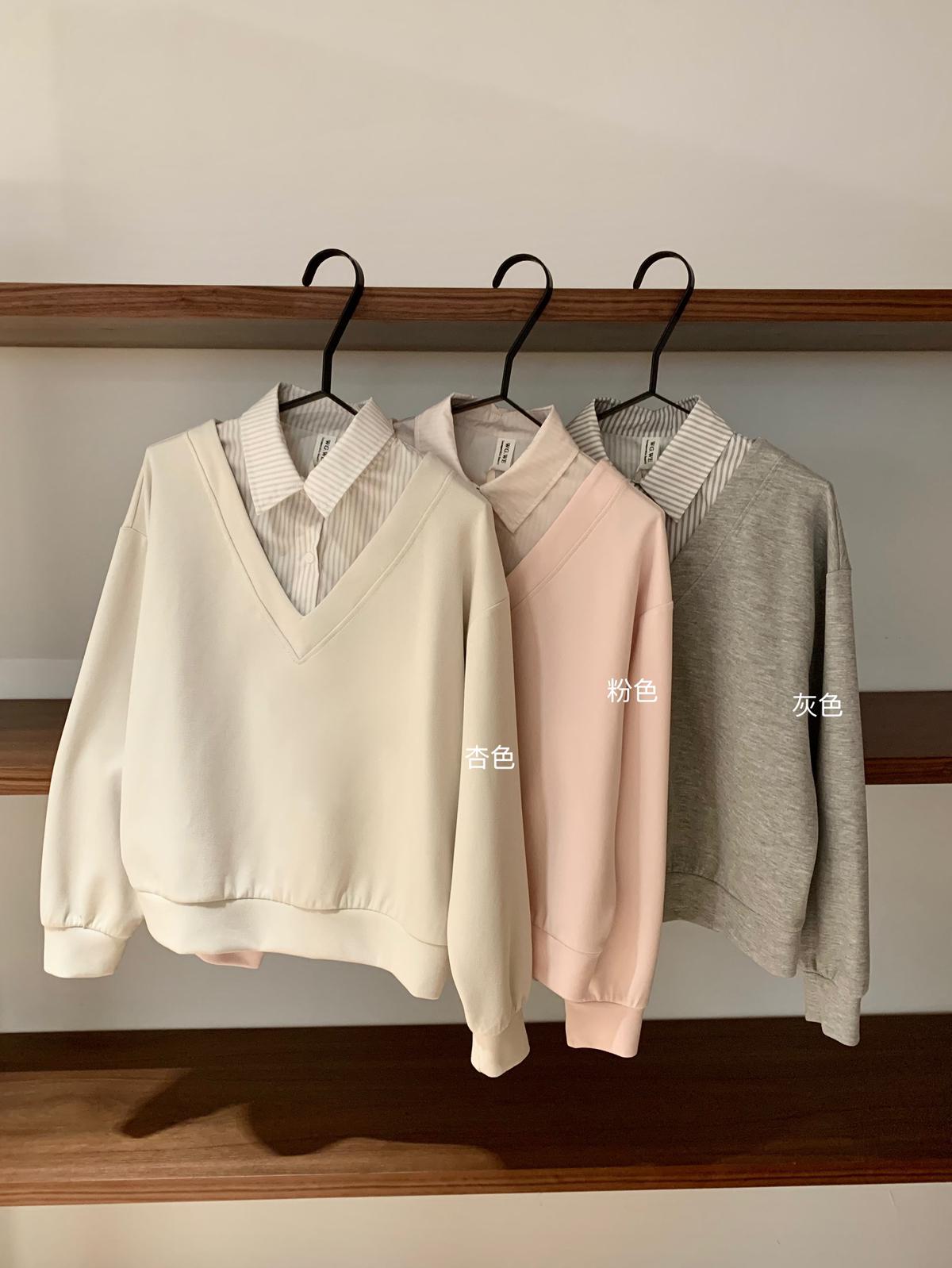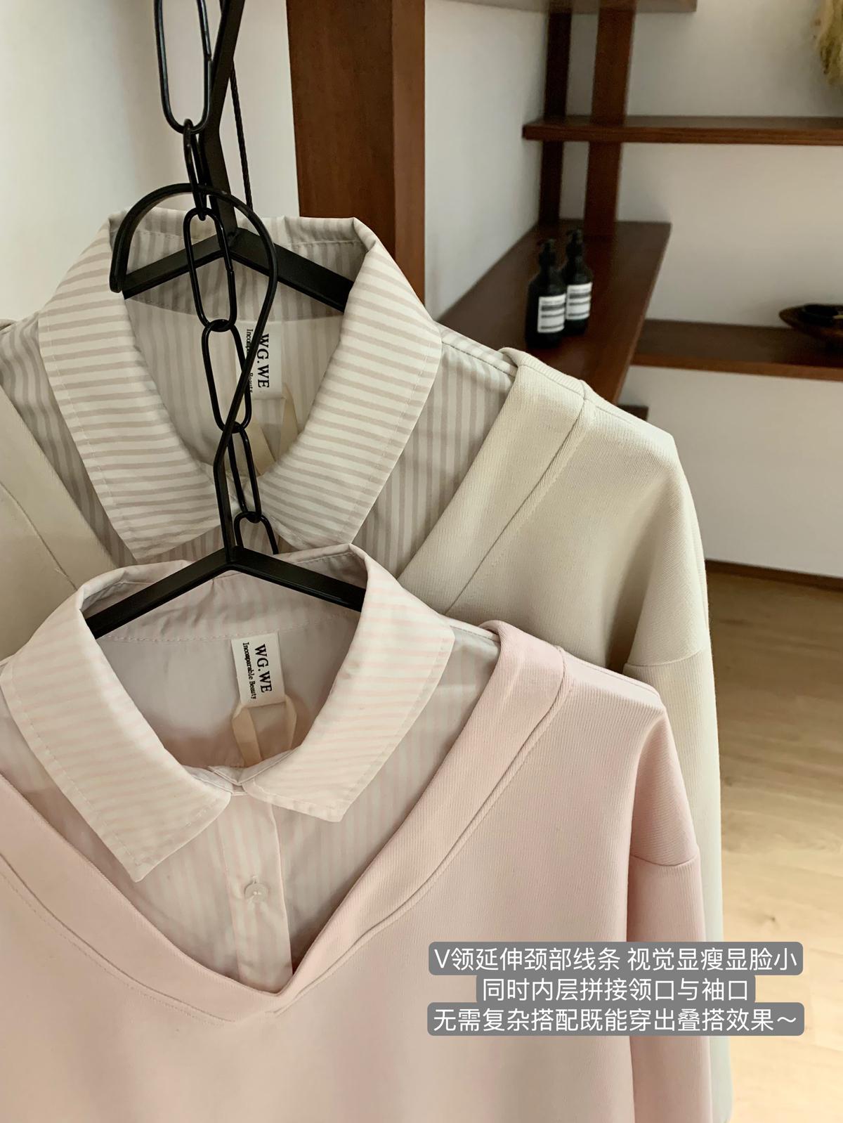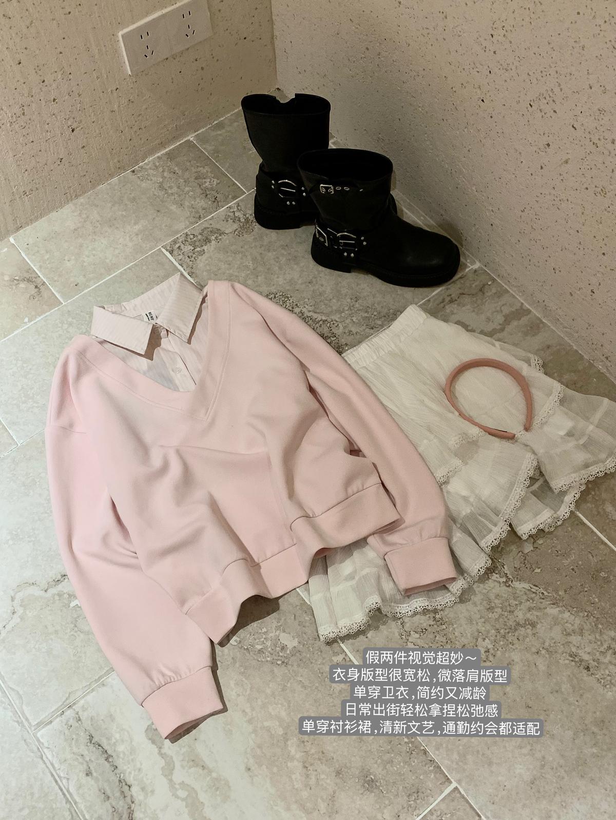 3. 【C7569】襯衫領拼接假兩件寬鬆休閒小衆設計感衛衣