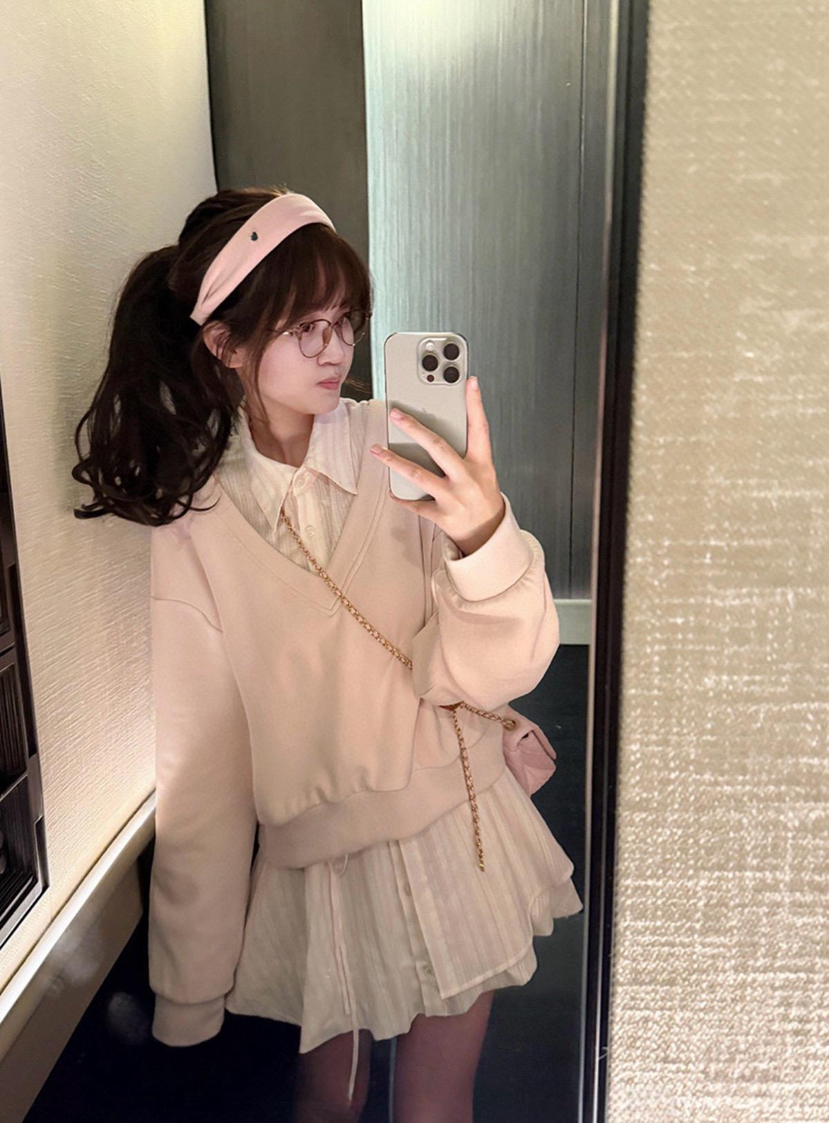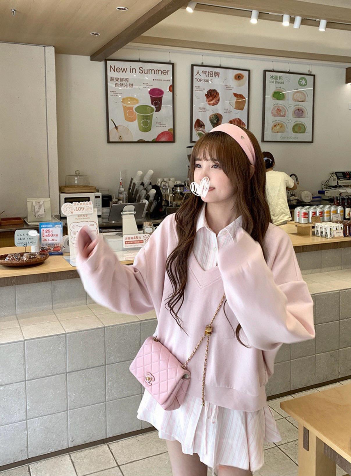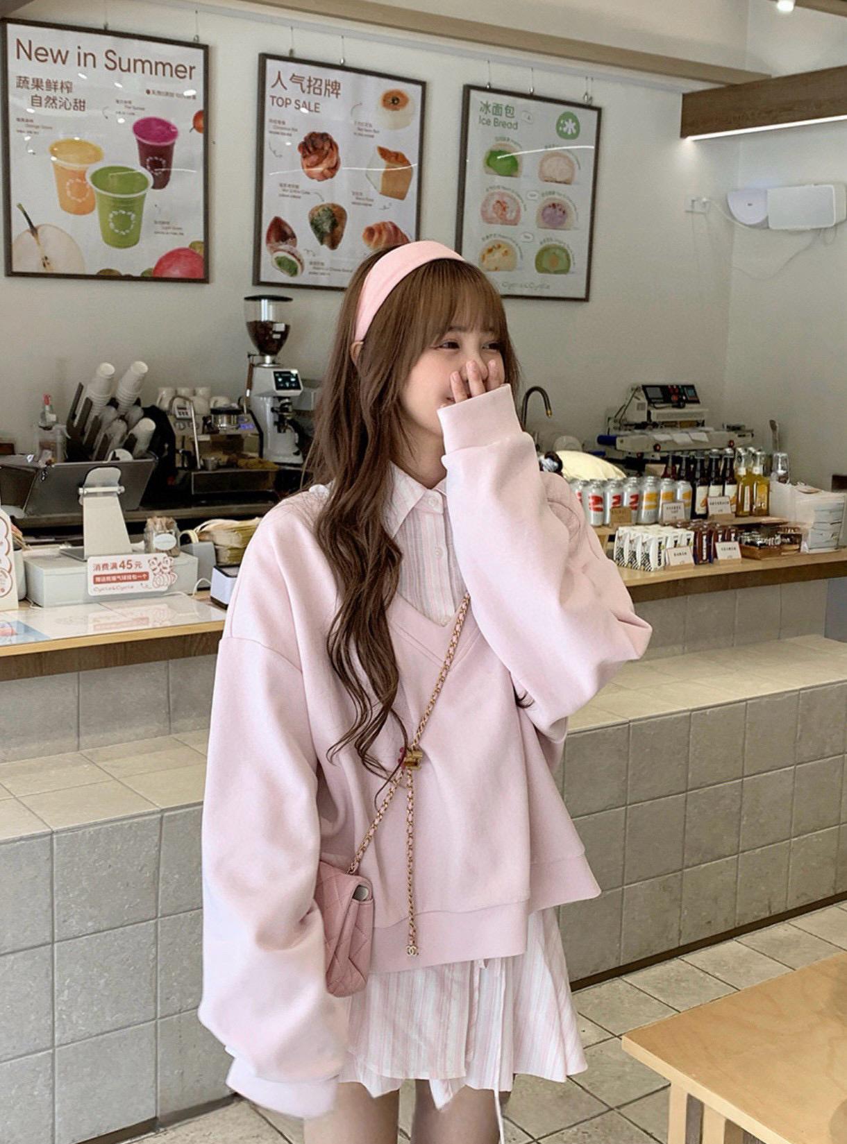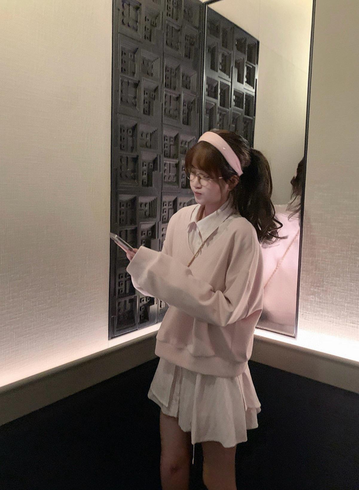 3. 【C7569】襯衫領拼接假兩件寬鬆休閒小衆設計感衛衣