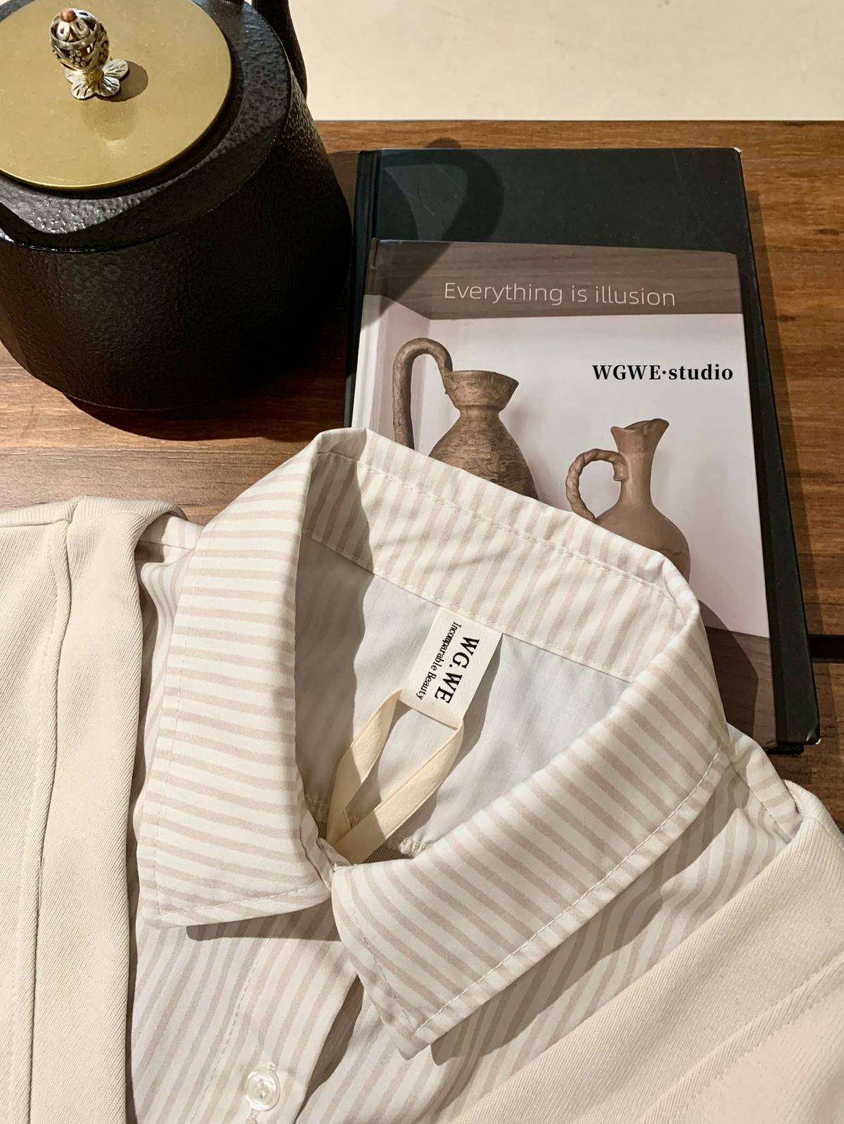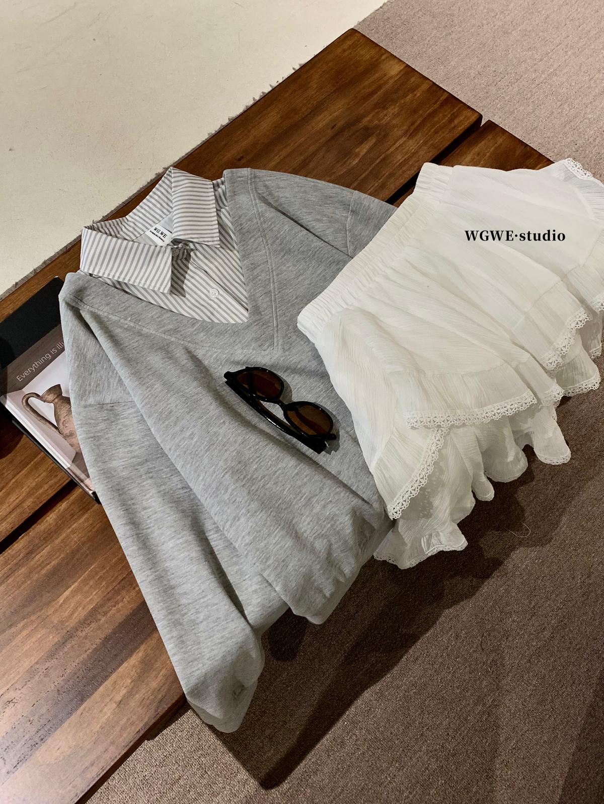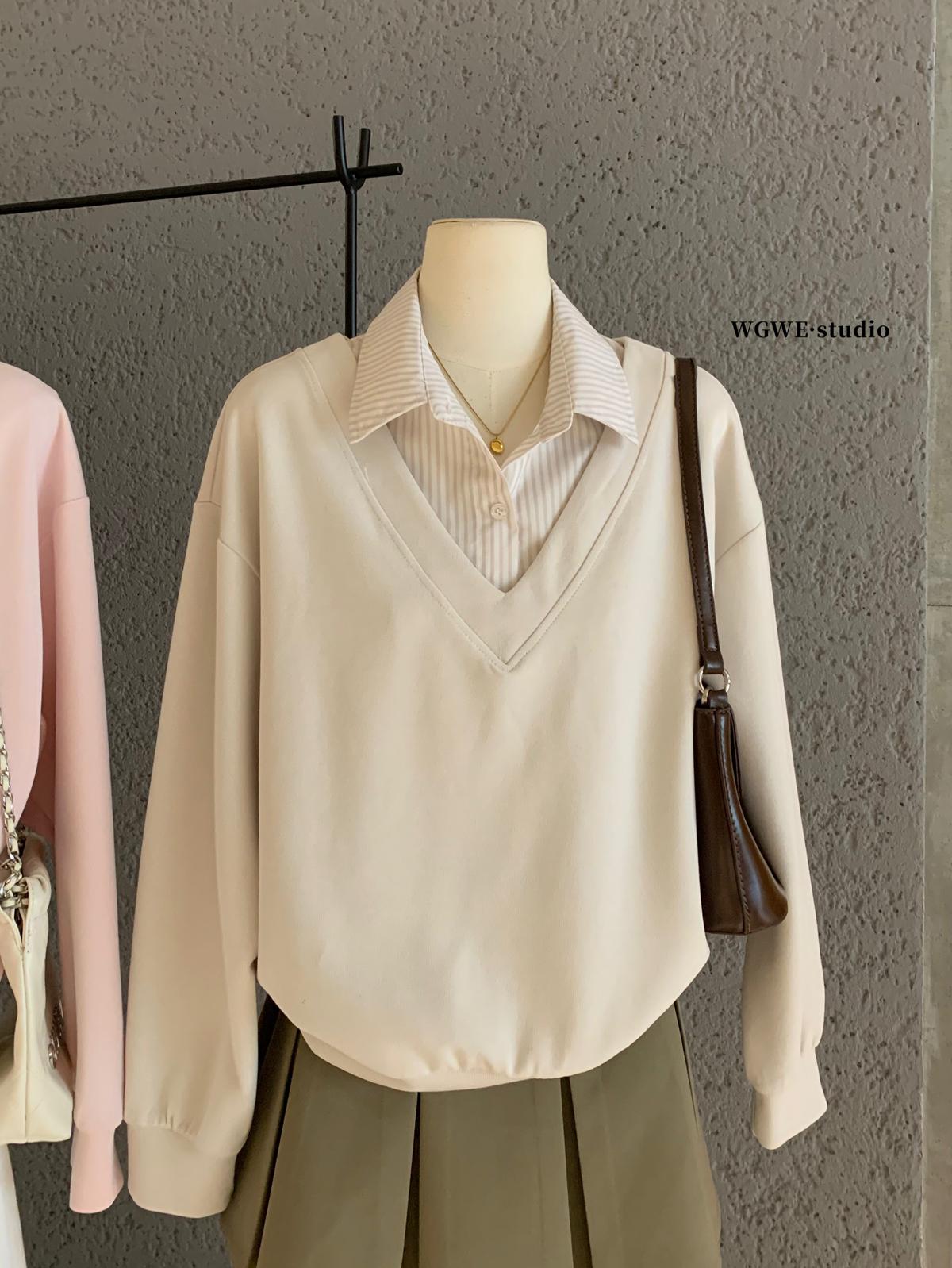 【C7569】襯衫領拼接假兩件寬鬆休閒小衆設計感衛衣