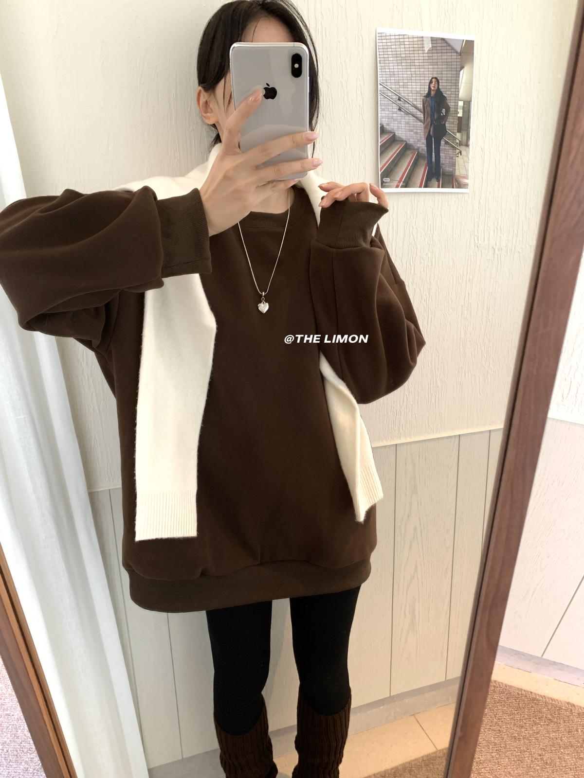 3. 【C7580】宋正恩寬鬆圓領百搭加絨衛衣