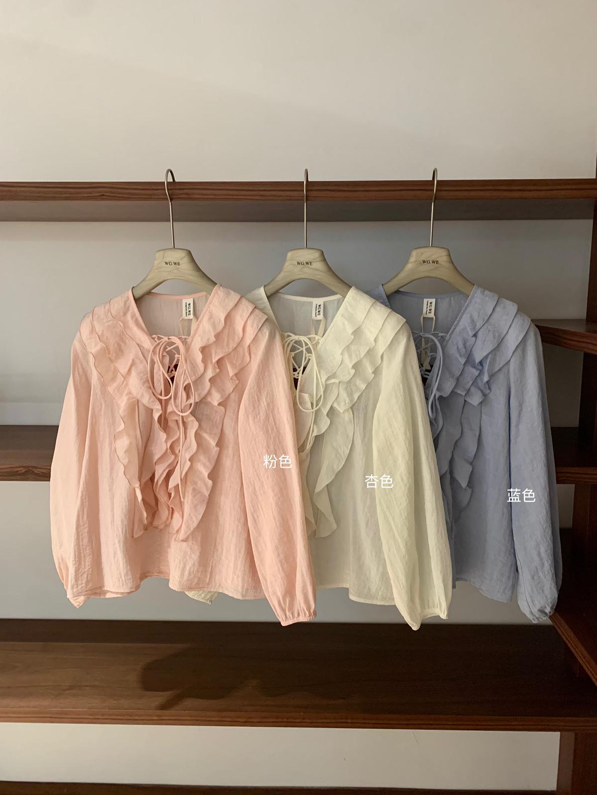 3. 【C7584】氛圍感荷葉邊襯衣上衣法式高級感長袖V領襯衫