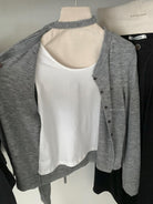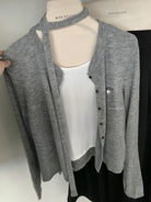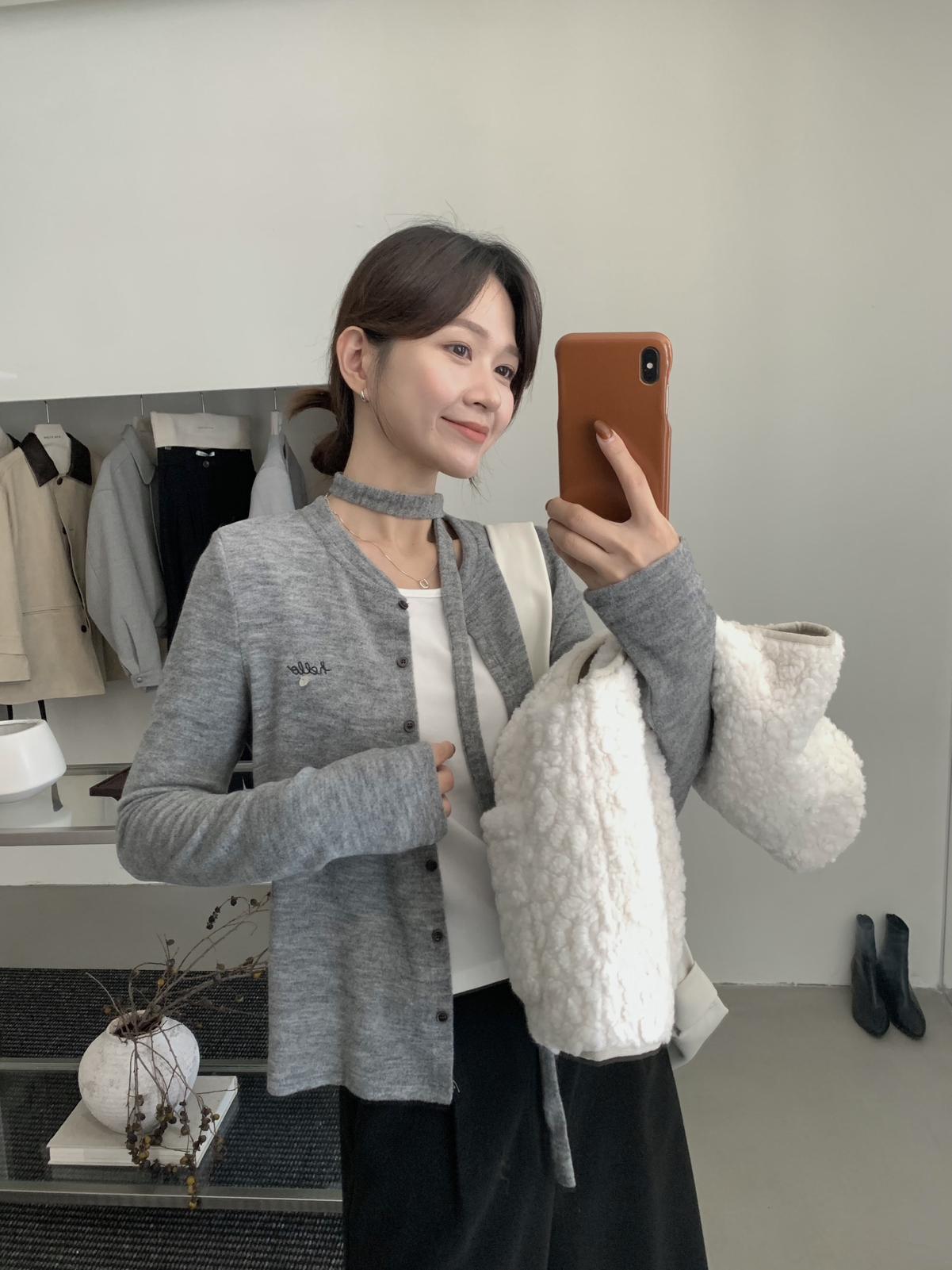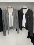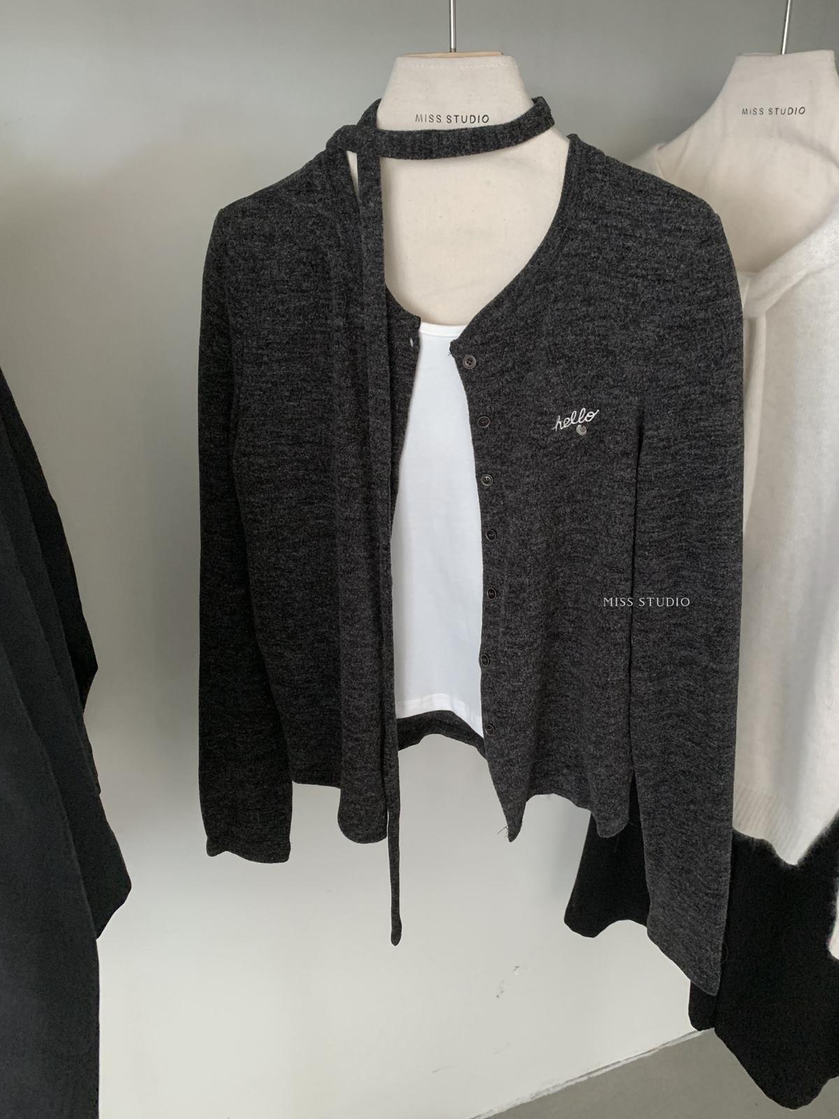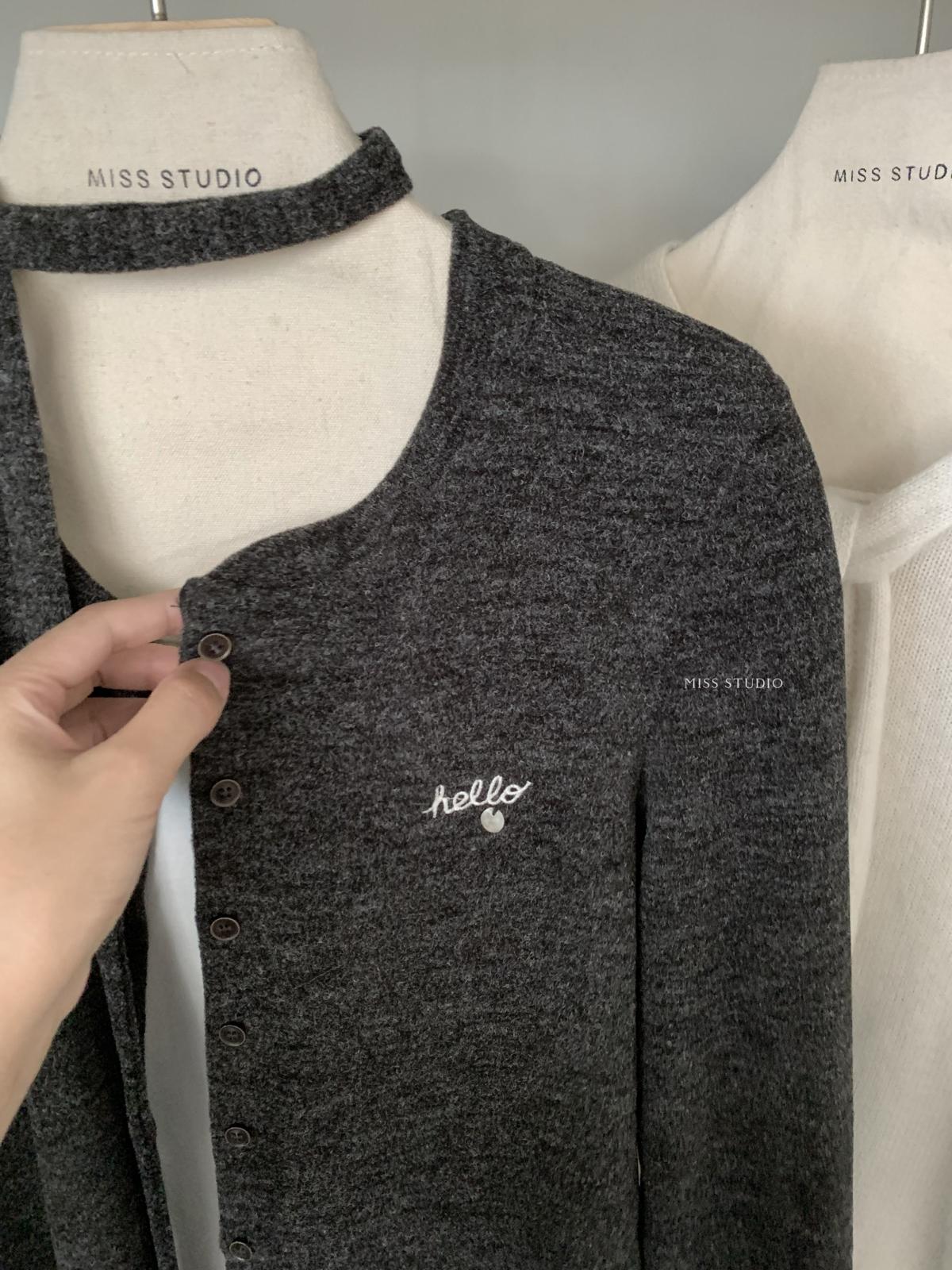 3. 【C7592】溫柔精緻~字母刺繡假兩件小上衣針織衫(配領帶)