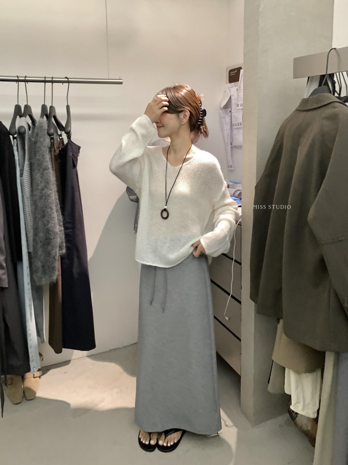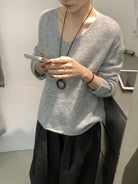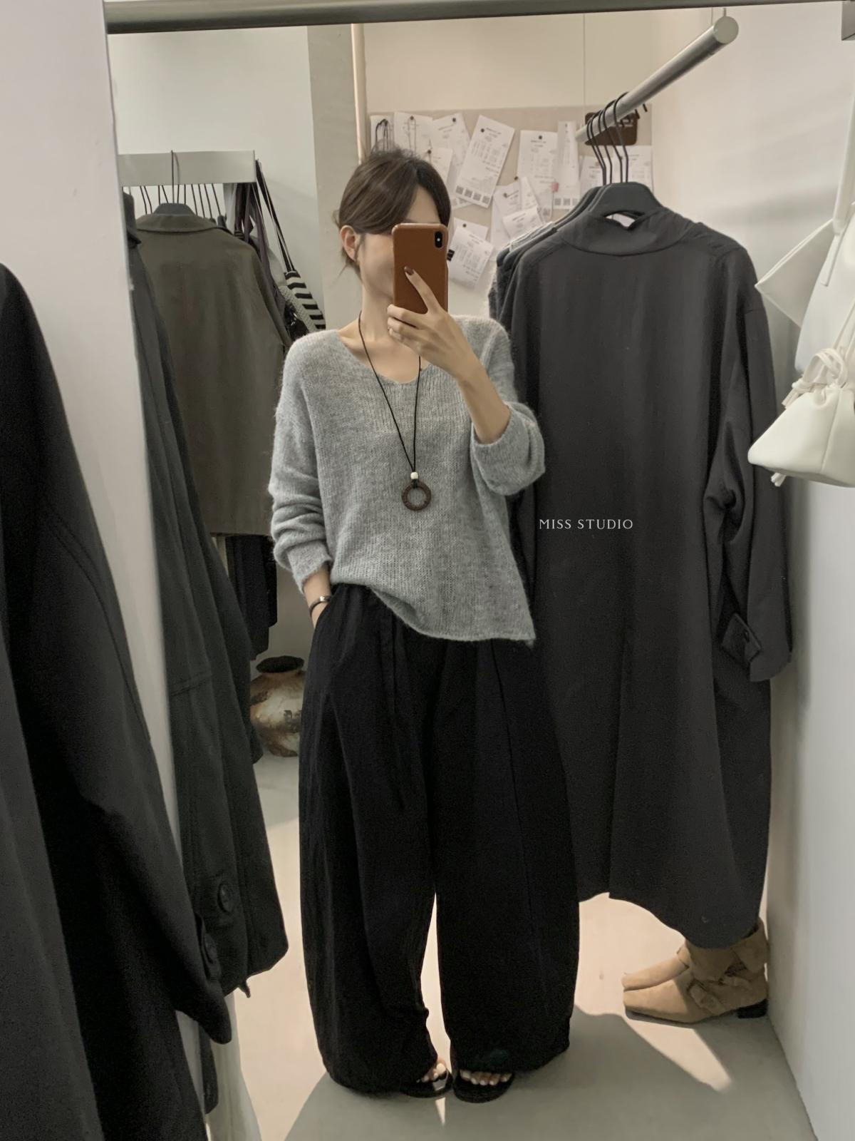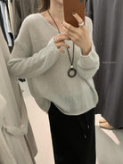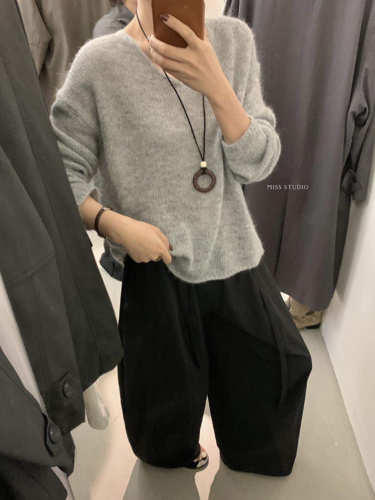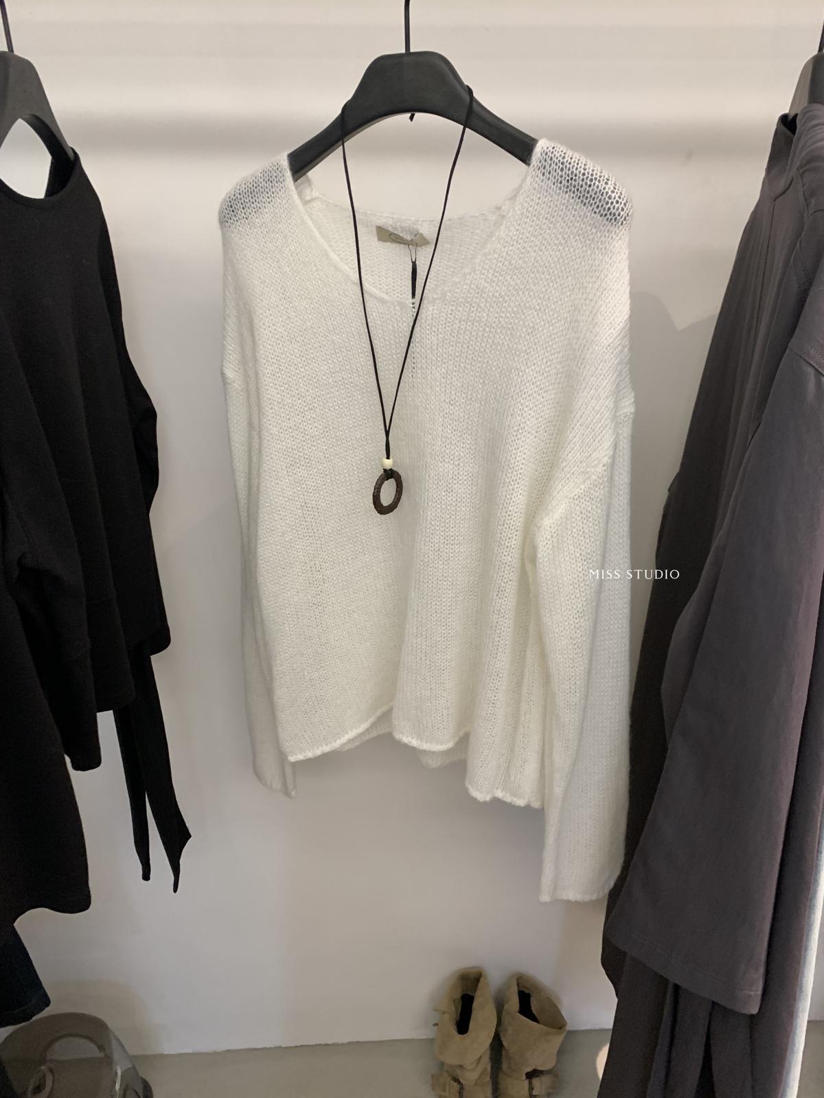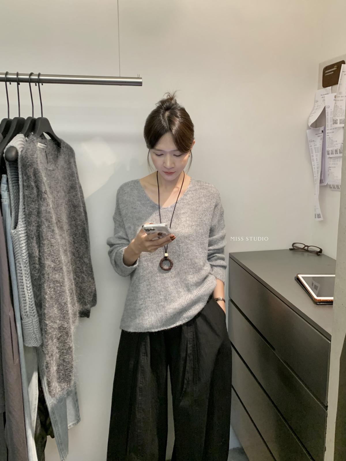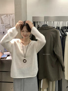【C7596】慵懶風淨版羊毛套頭保暖毛衣(含10%羊毛)(不配項鍊)