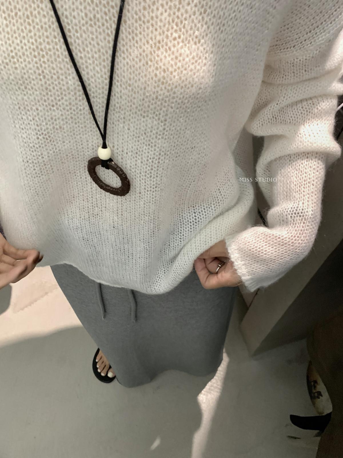 3. 【C7596】慵懶風淨版羊毛套頭保暖毛衣(含10%羊毛)(不配項鍊)