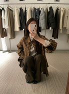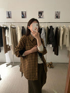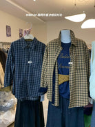 【C7622】復古撞色磨毛格紋休閒襯衫