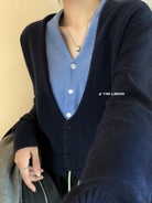 3. 【C7650】小衆設計感撞色假兩件V領顯瘦針織開衫(含6%羊毛)